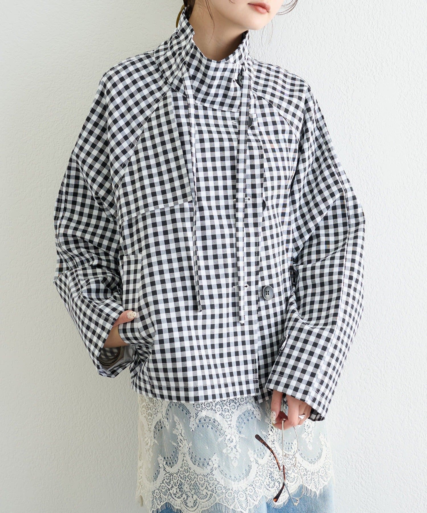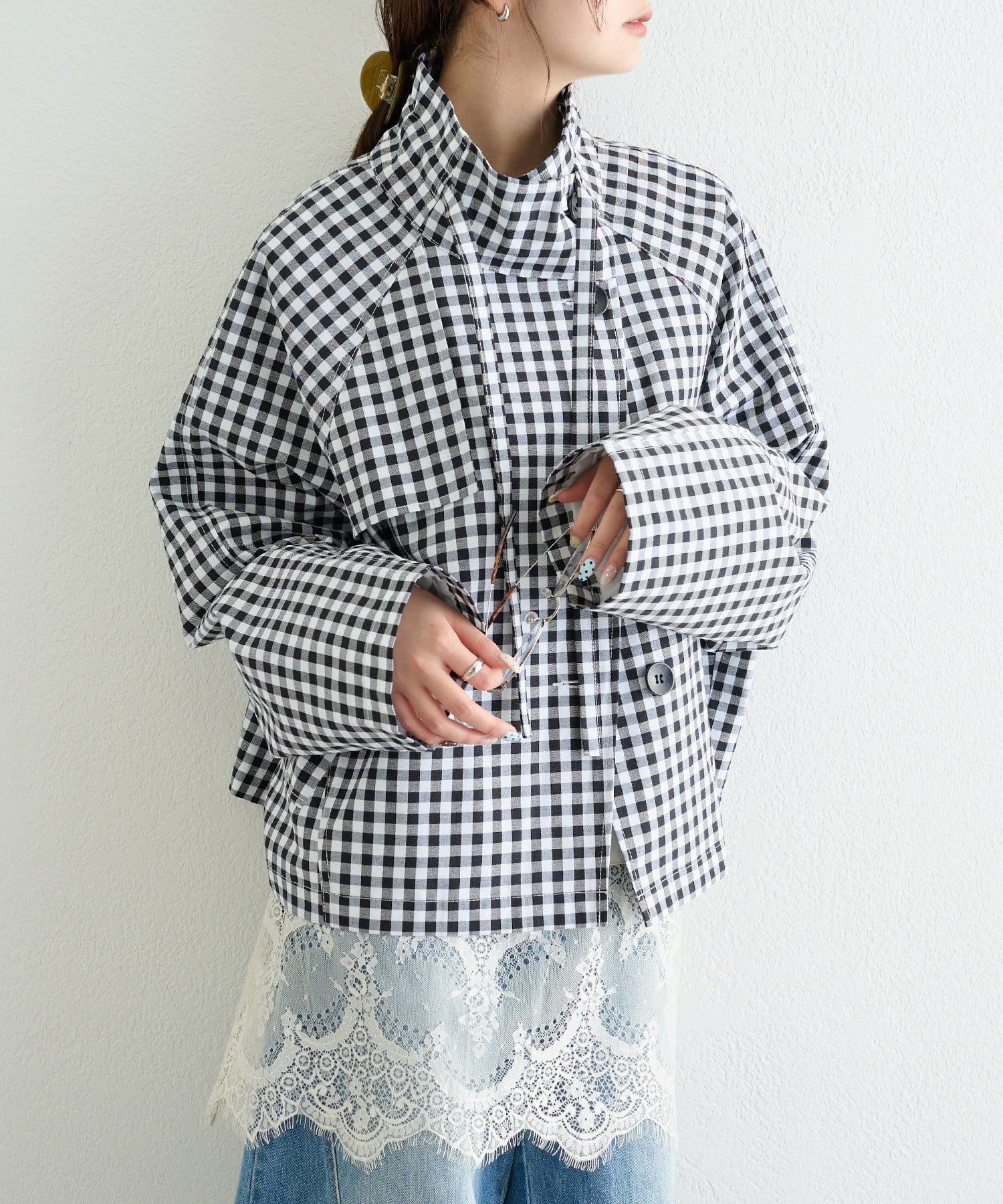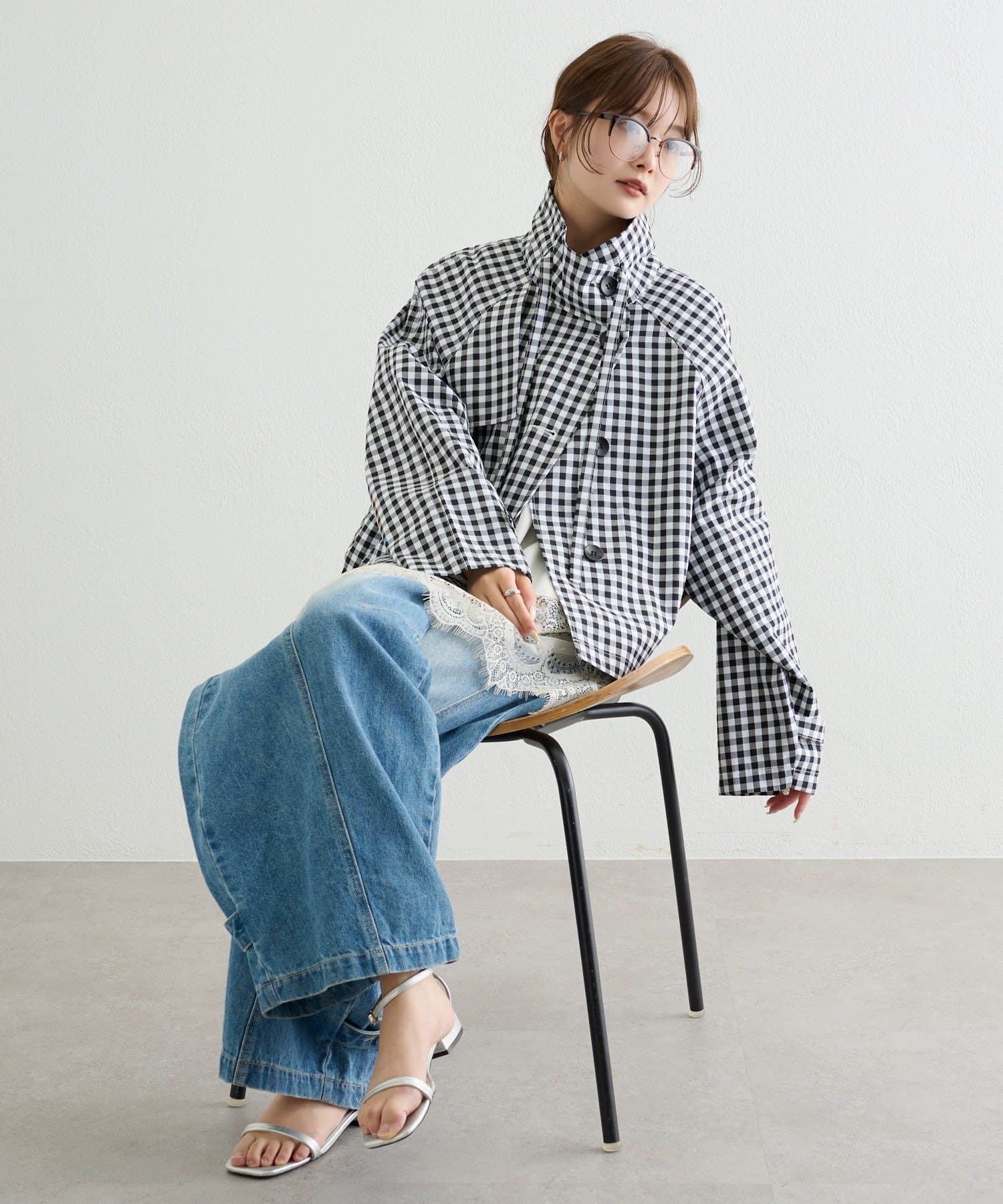 ・スタンドカラーで顔周りにクラシック感とモード感を両立したデザイン。