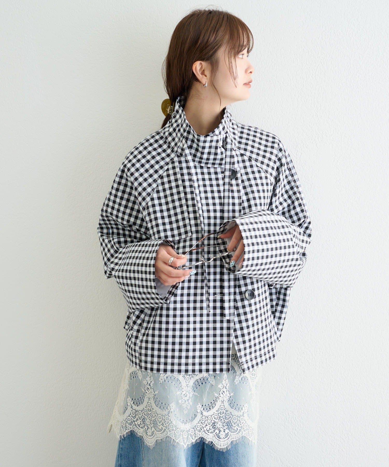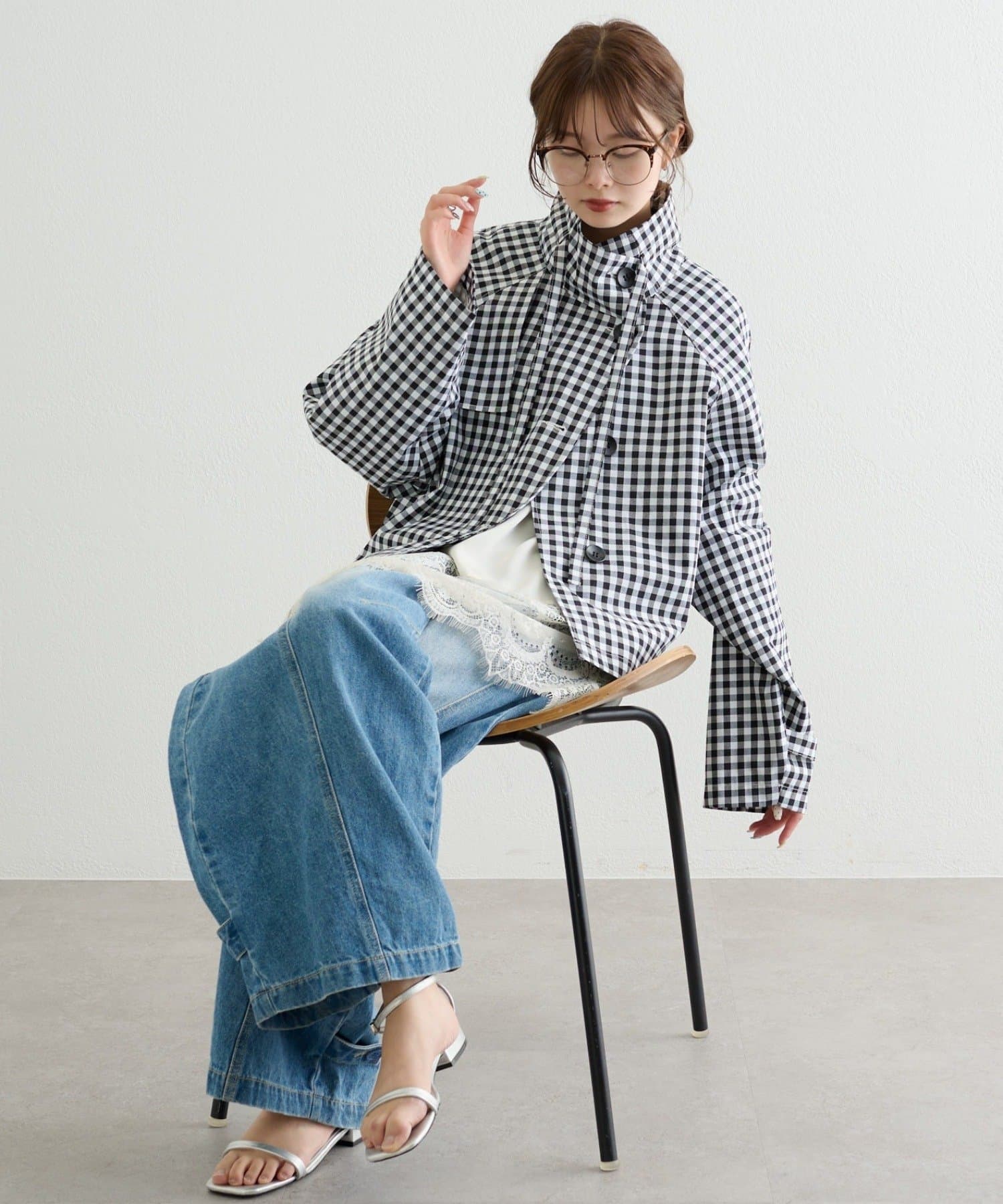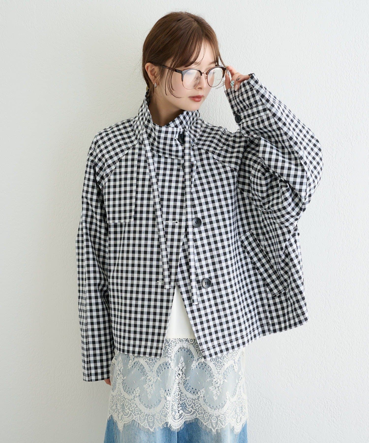 ・スタンドカラーで顔周りにクラシック感とモード感を両立したデザイン。