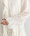 ・胸元のラッフルカラーが目を惹く華やかなミニワンピース。