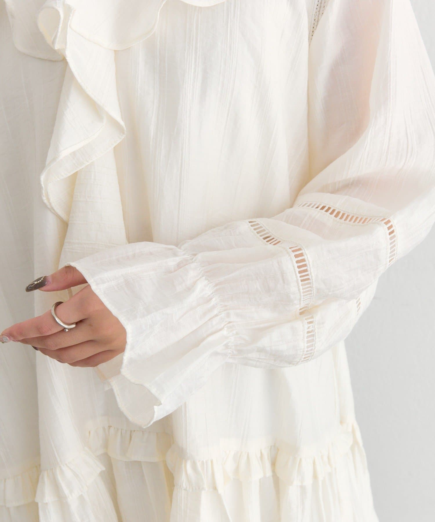 ・袖の透け感あるデザインがさりげないアクセントに。