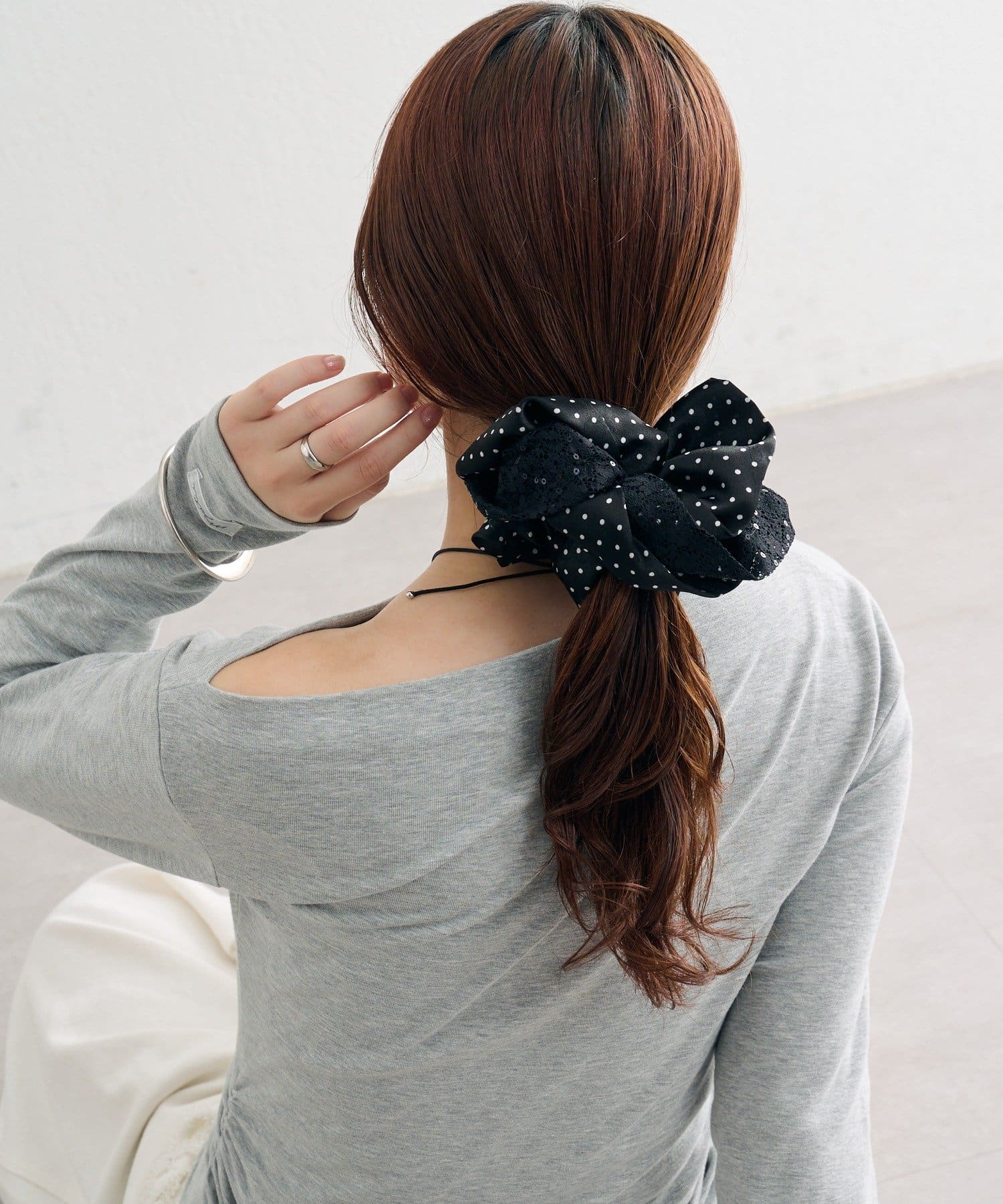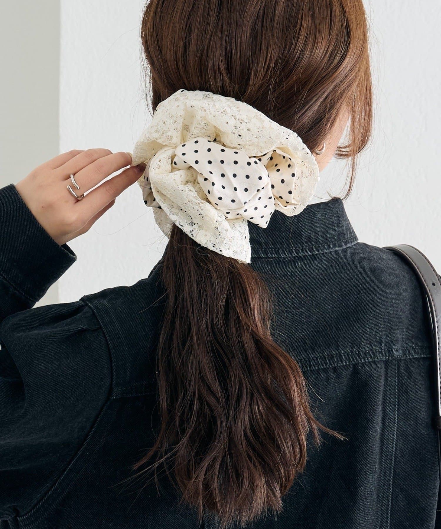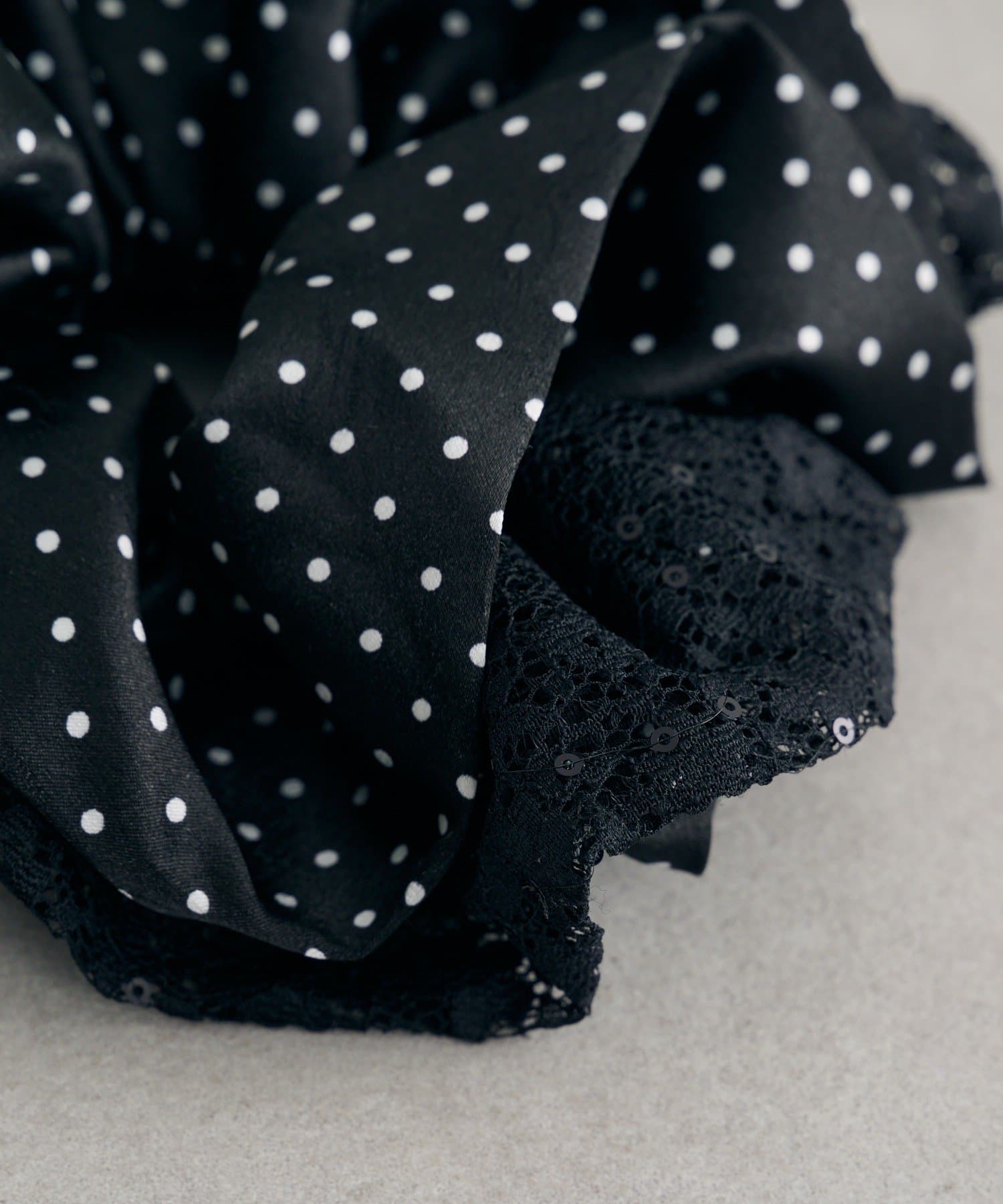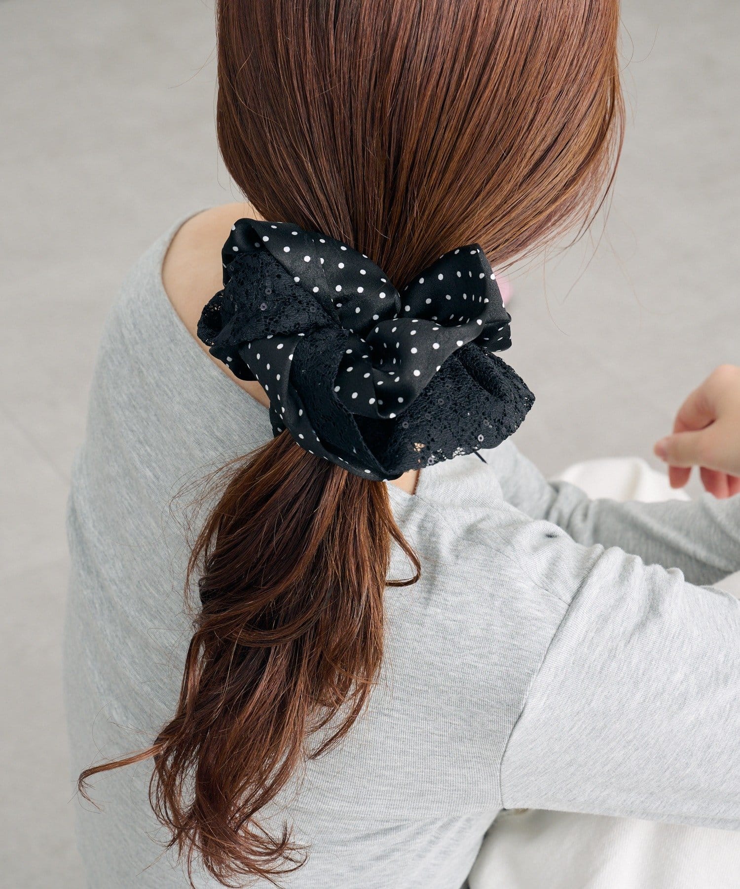 大きめなサイズ感とレース×ドットでトレンド感たっぷりなシュシュ