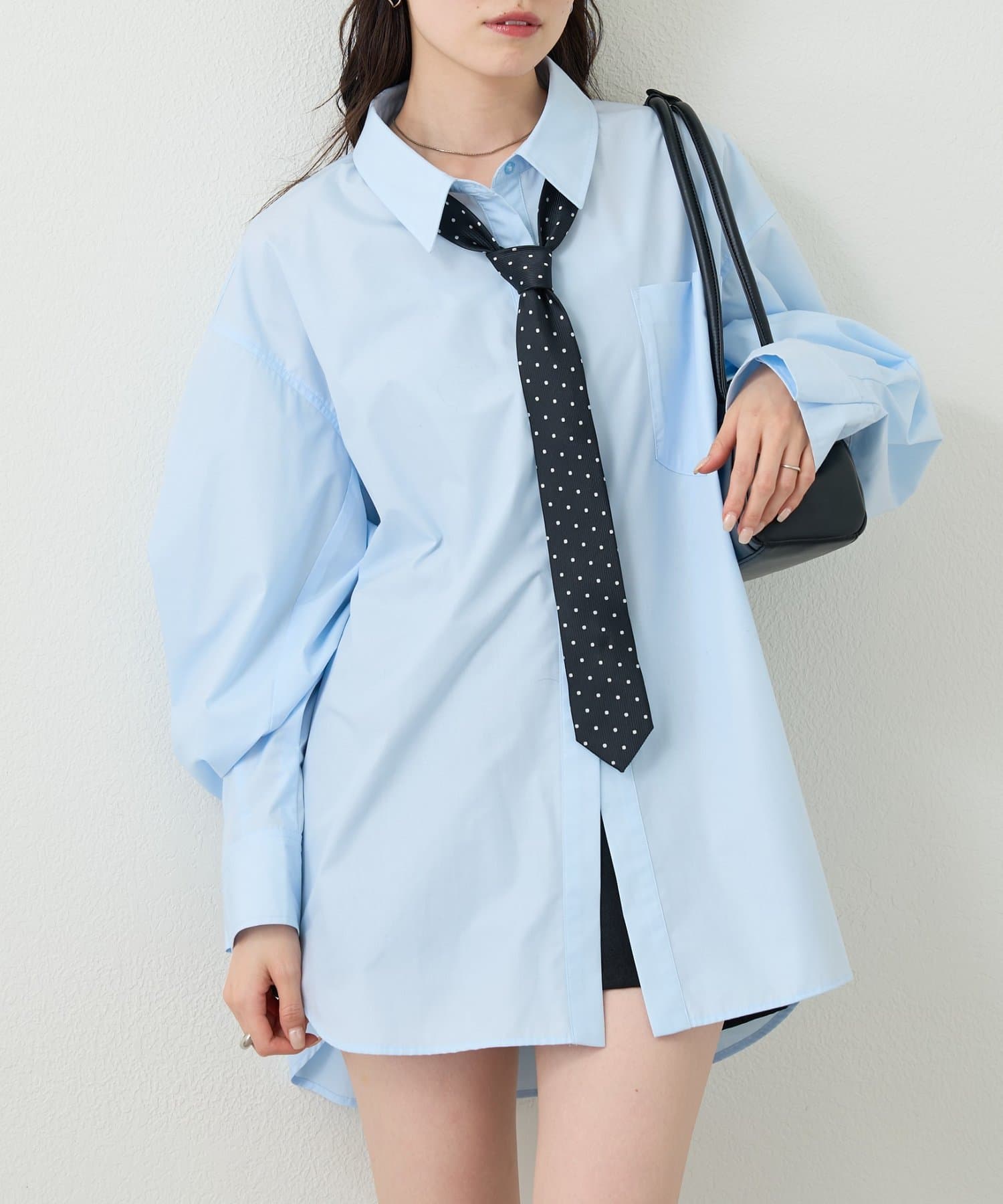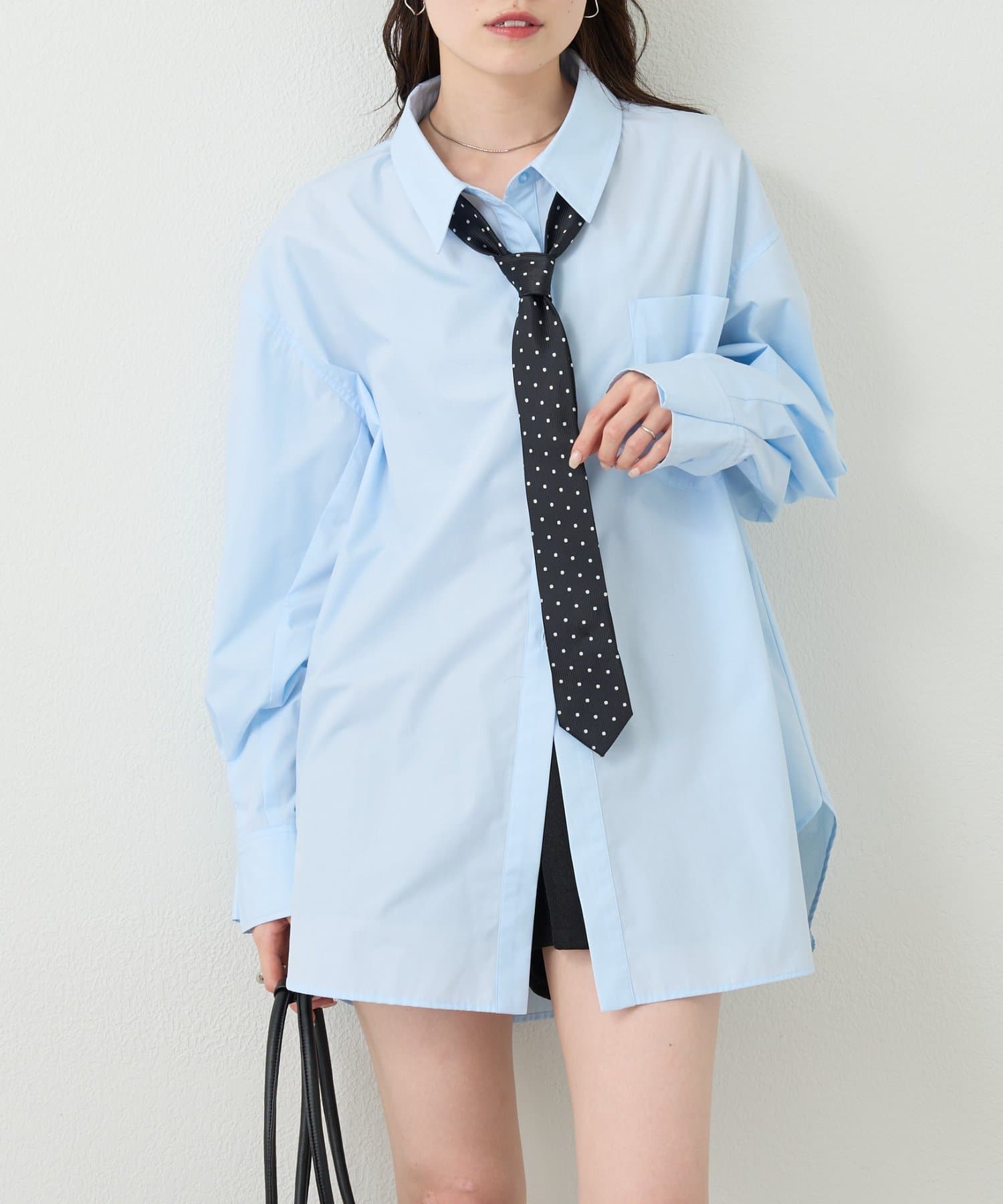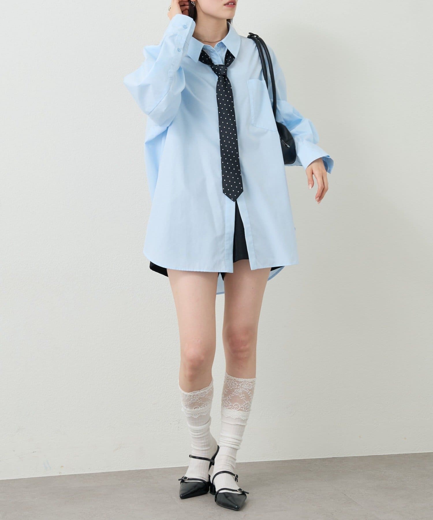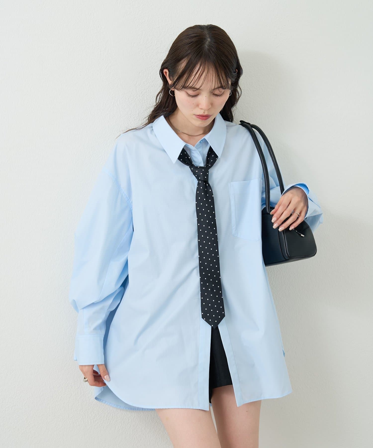 ・細かいドット柄がポイントになり、スタイリングにアクセントをプラス。