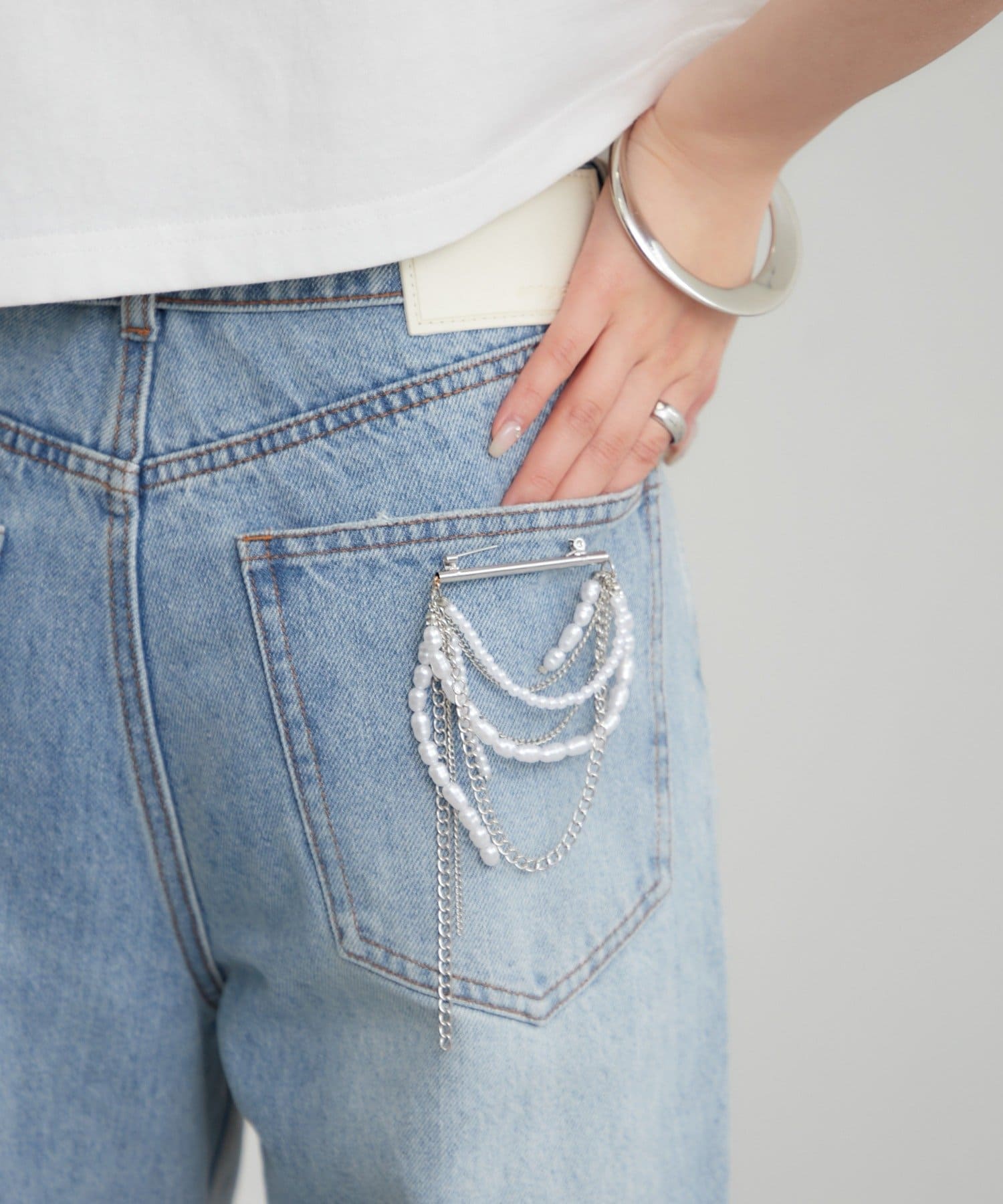 ・パールとシルバーを組み合わせたデザインのブローチ。