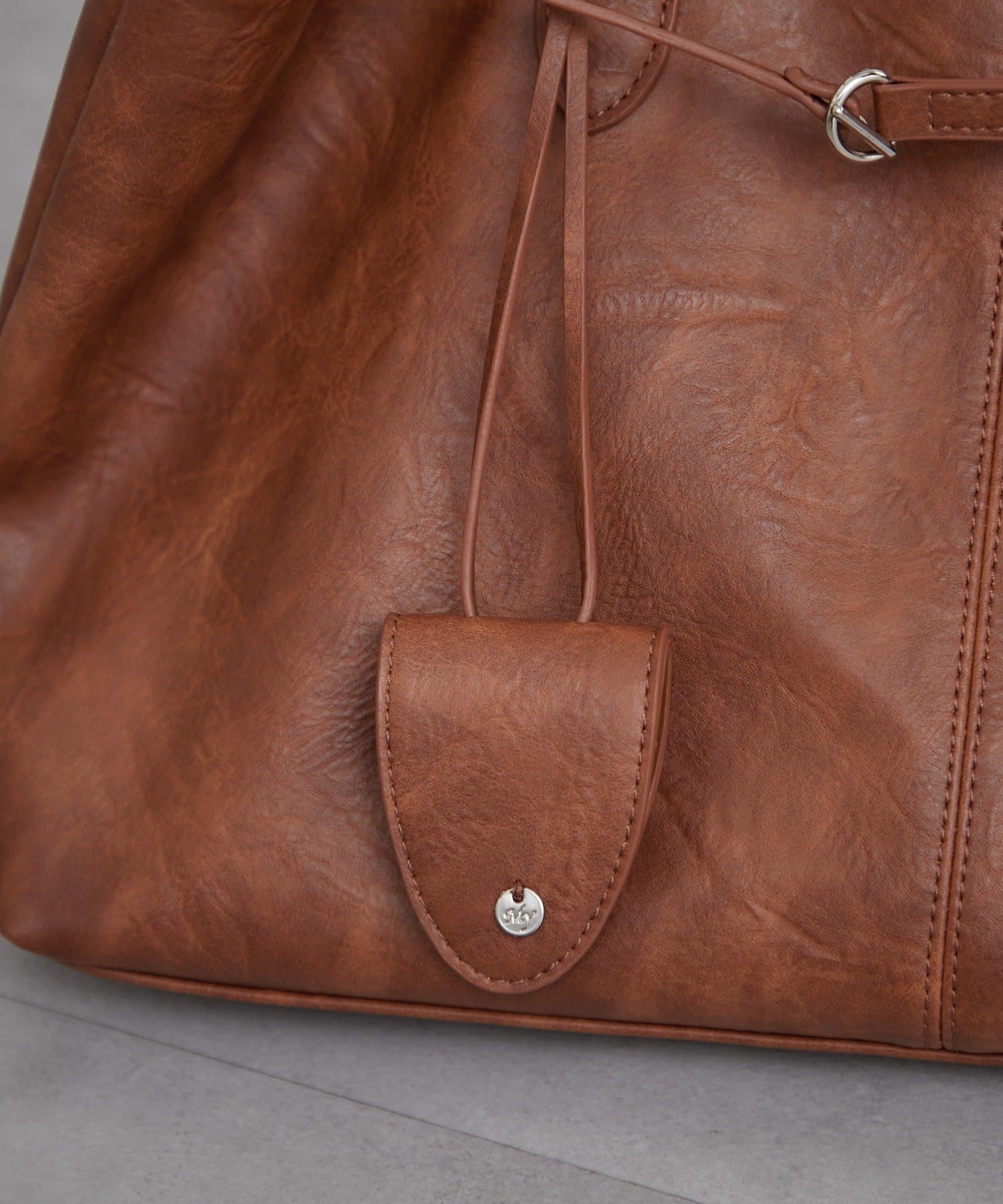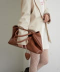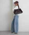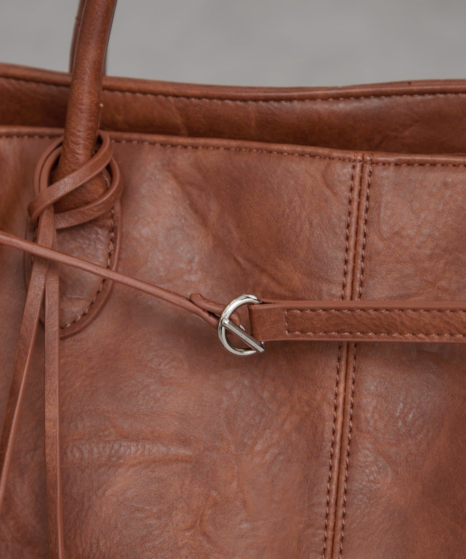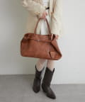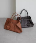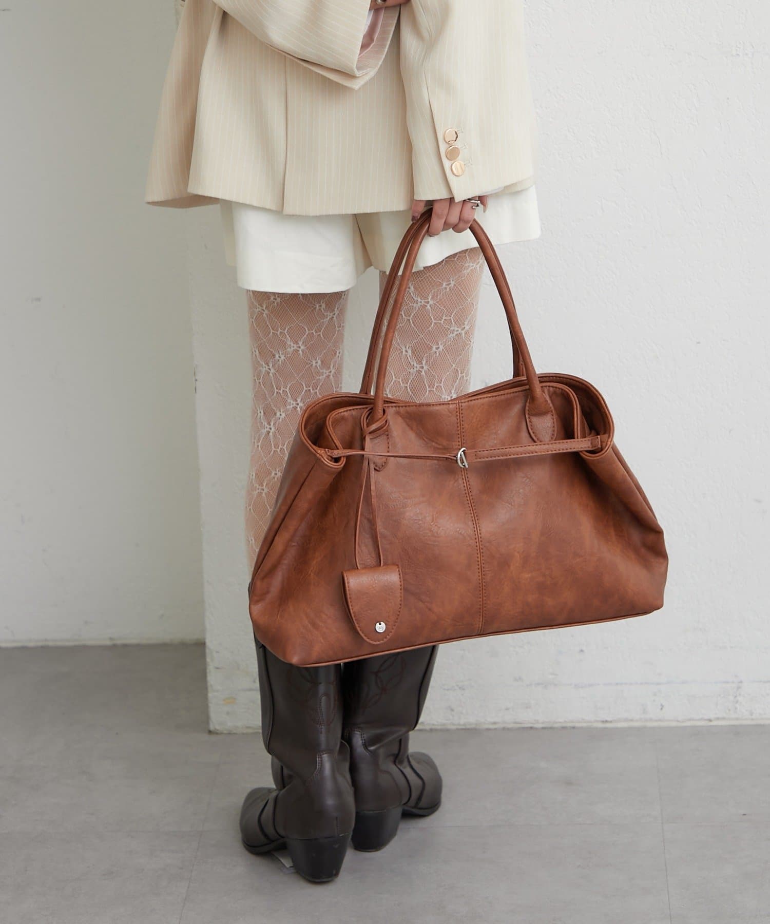 ・フロントのベルトデザインがポイントに。マチのあるフォルムで、見た目以上の収納力。