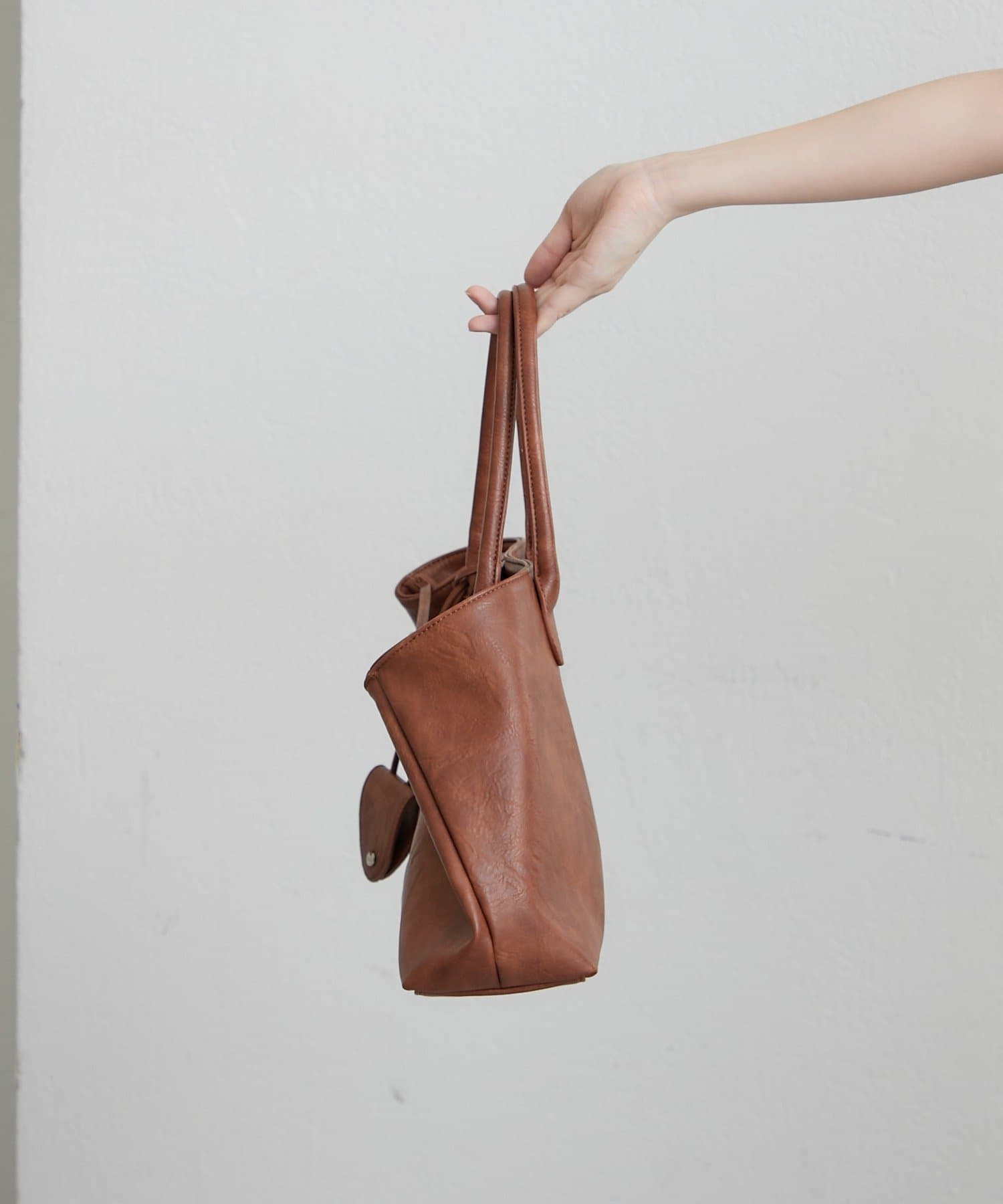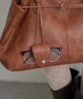 ・柔らかさのあるフェイクレザーで、かっちりしすぎない印象。