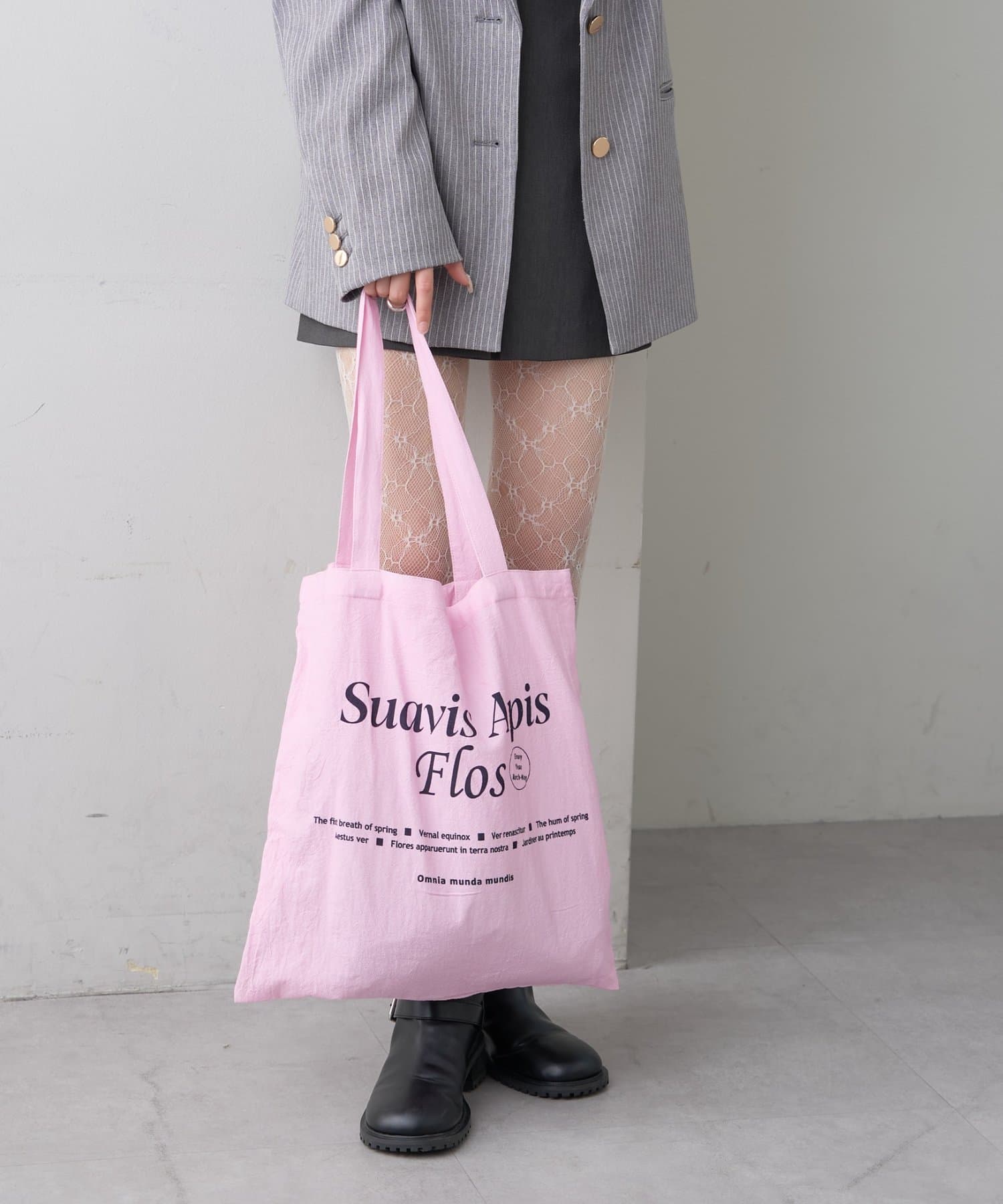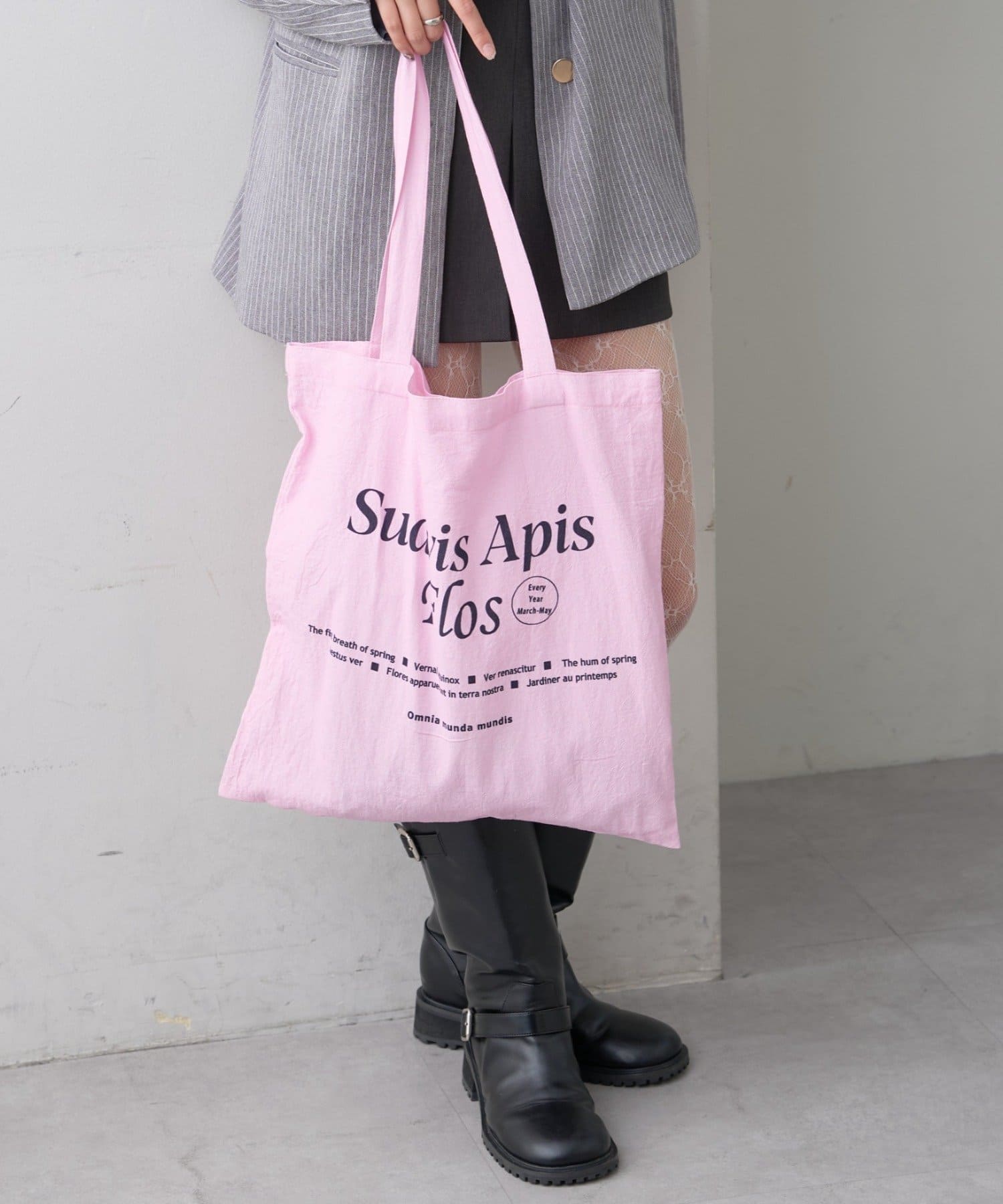 明るめカラーとロゴで持つだけで可愛い万能トートバッグ
