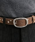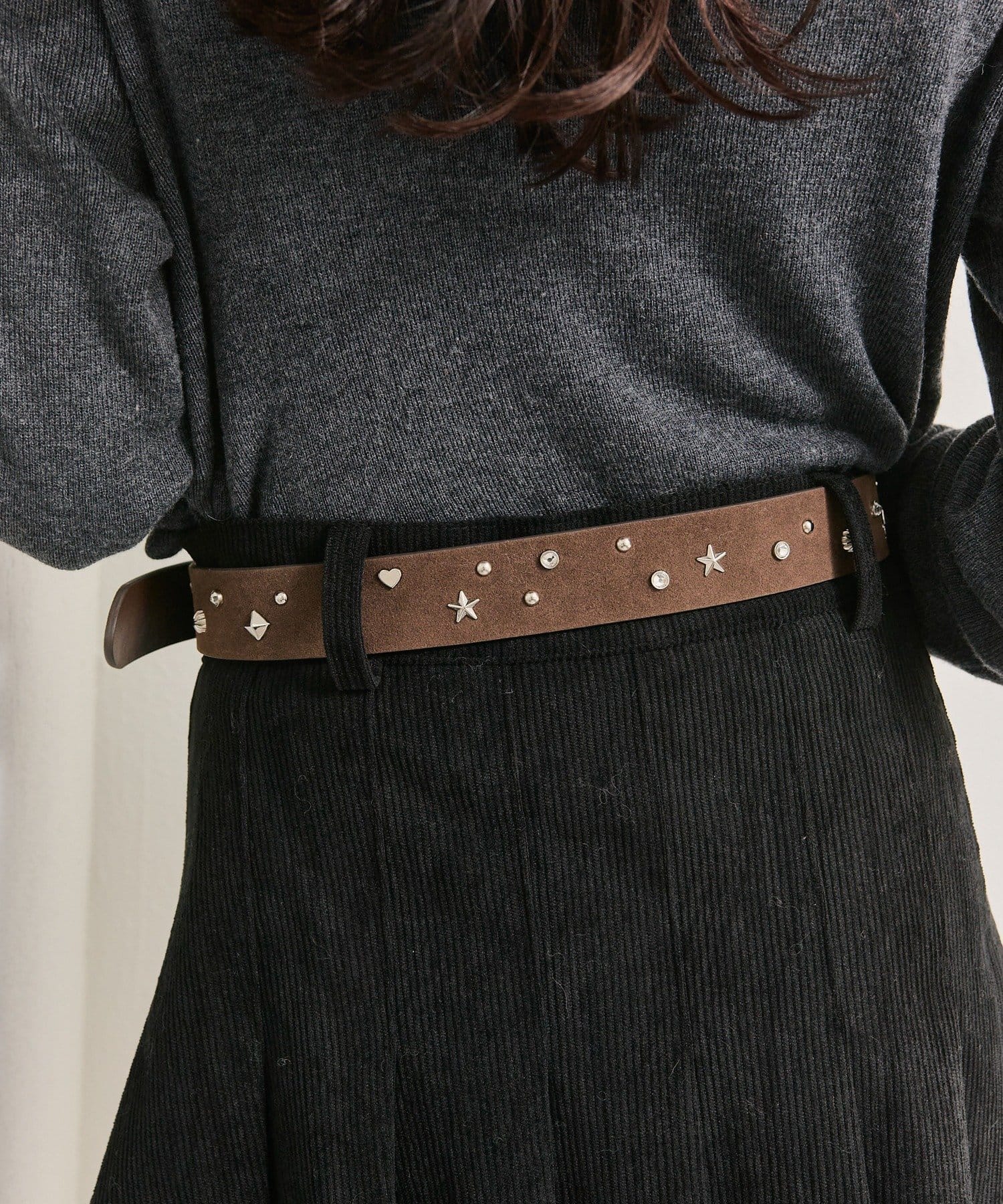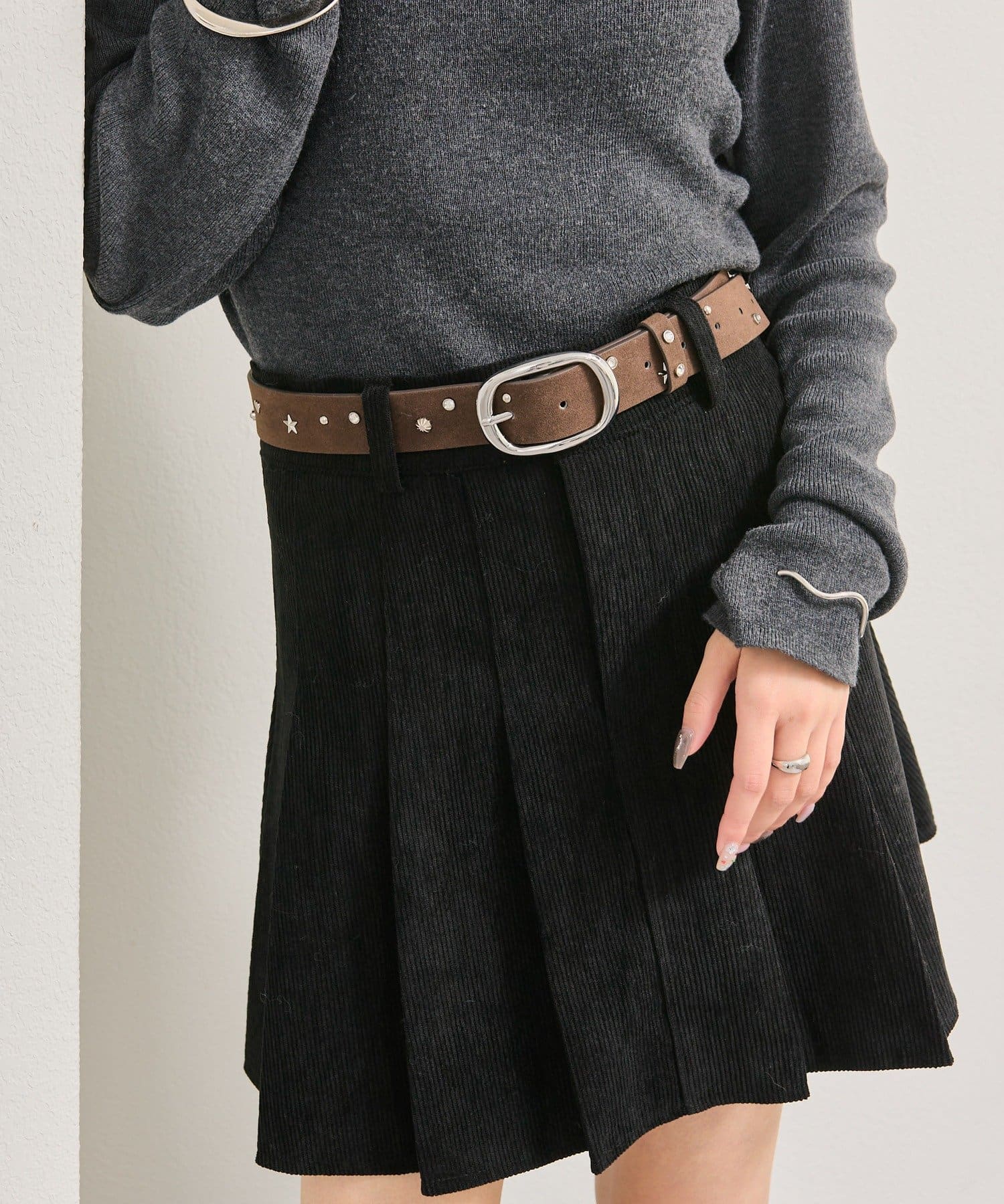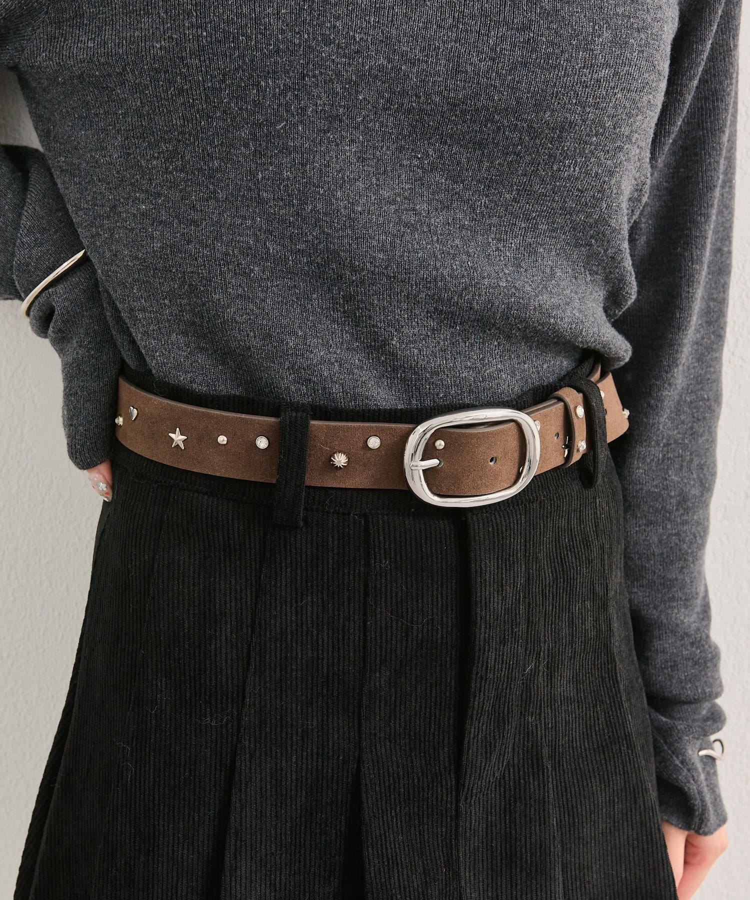 散りばめられた存在感のあるスタッズでコーデを引き締めてくれるベルトが登場!