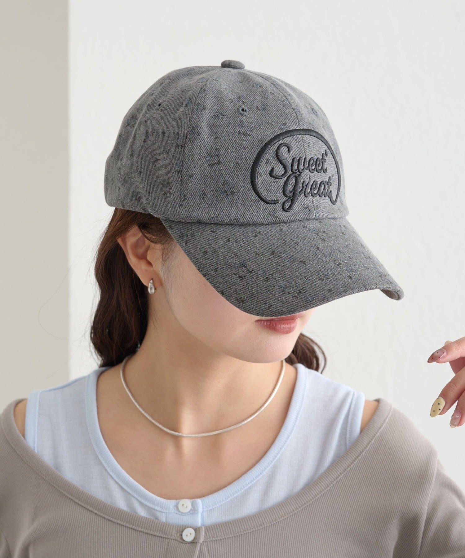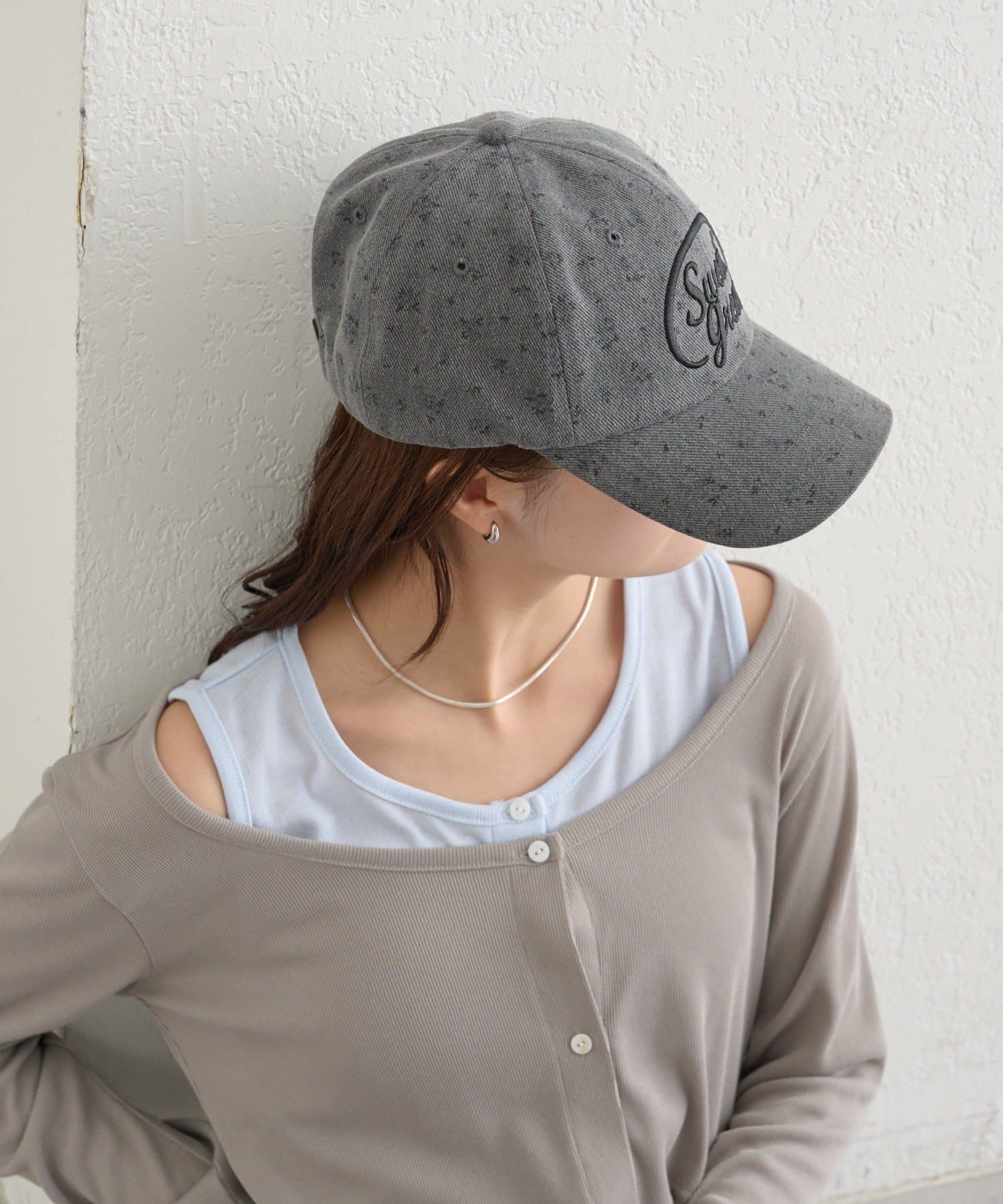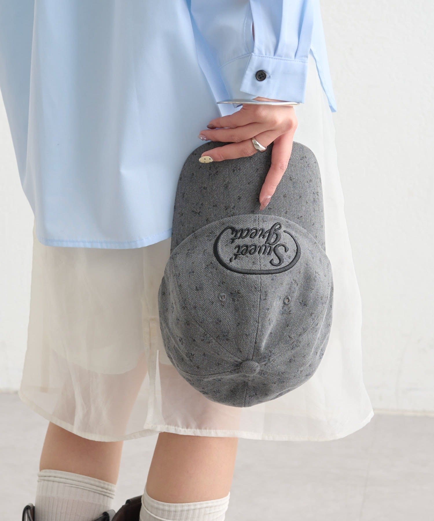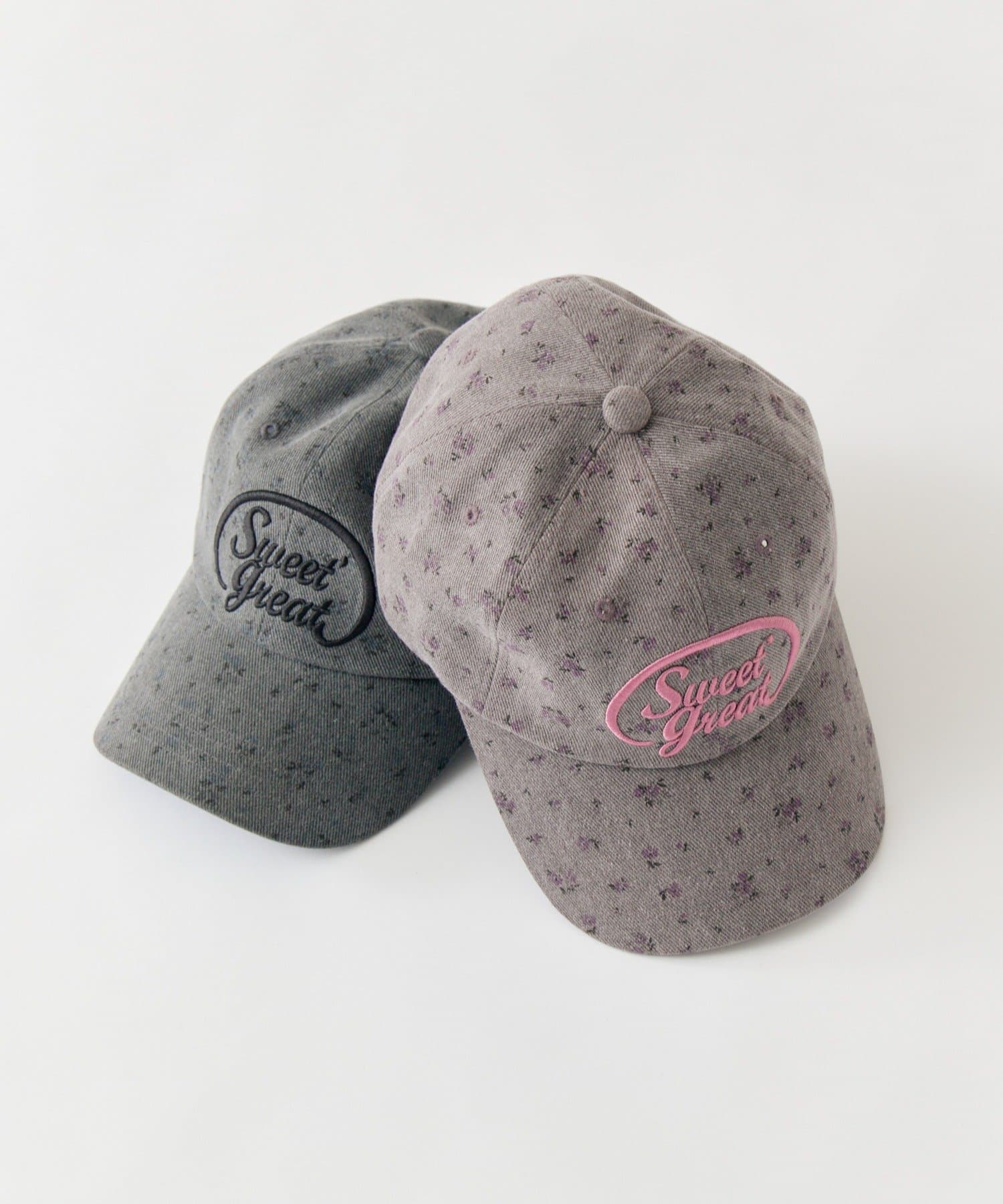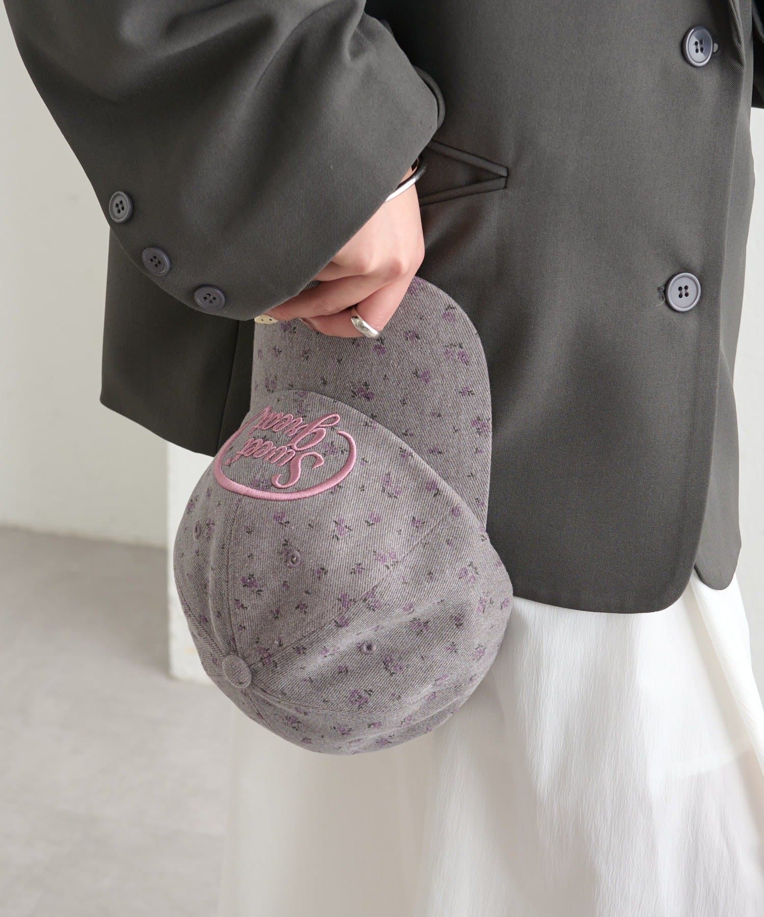 スタイリングにカジュアルさと小花柄でフェミニンさをプラスしてくれる刺繍キャップ