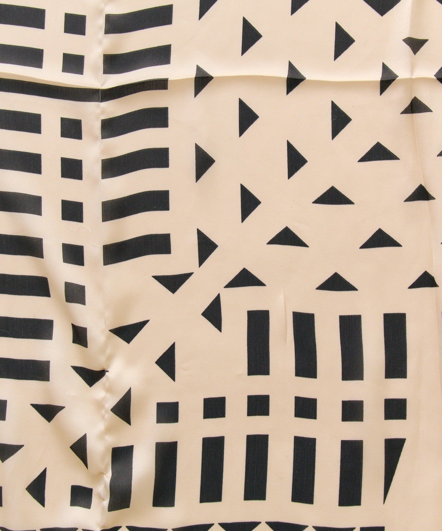 ・直線や三角を組み合わせたジオメタリック柄で、存在感のあるスカーフ。