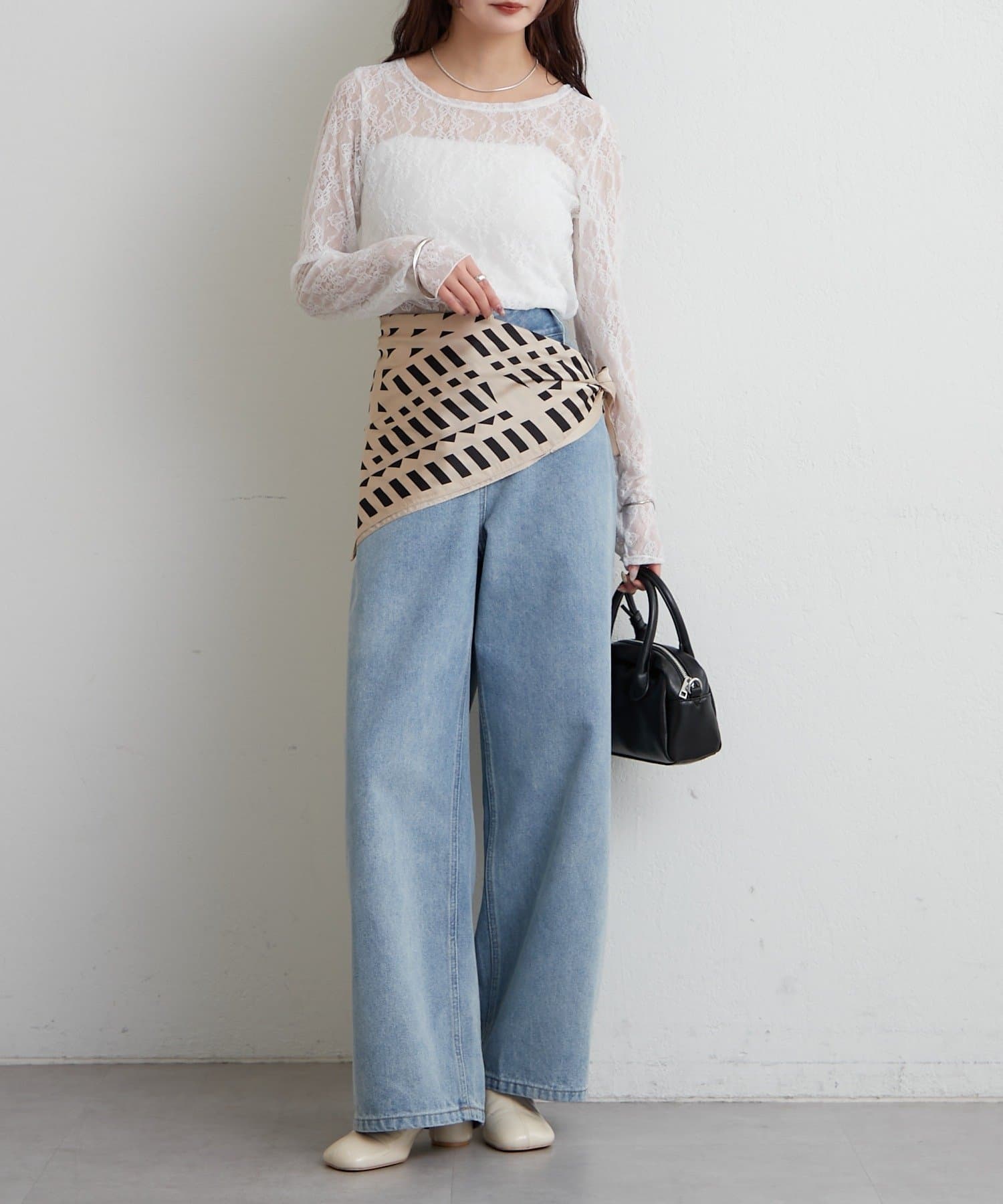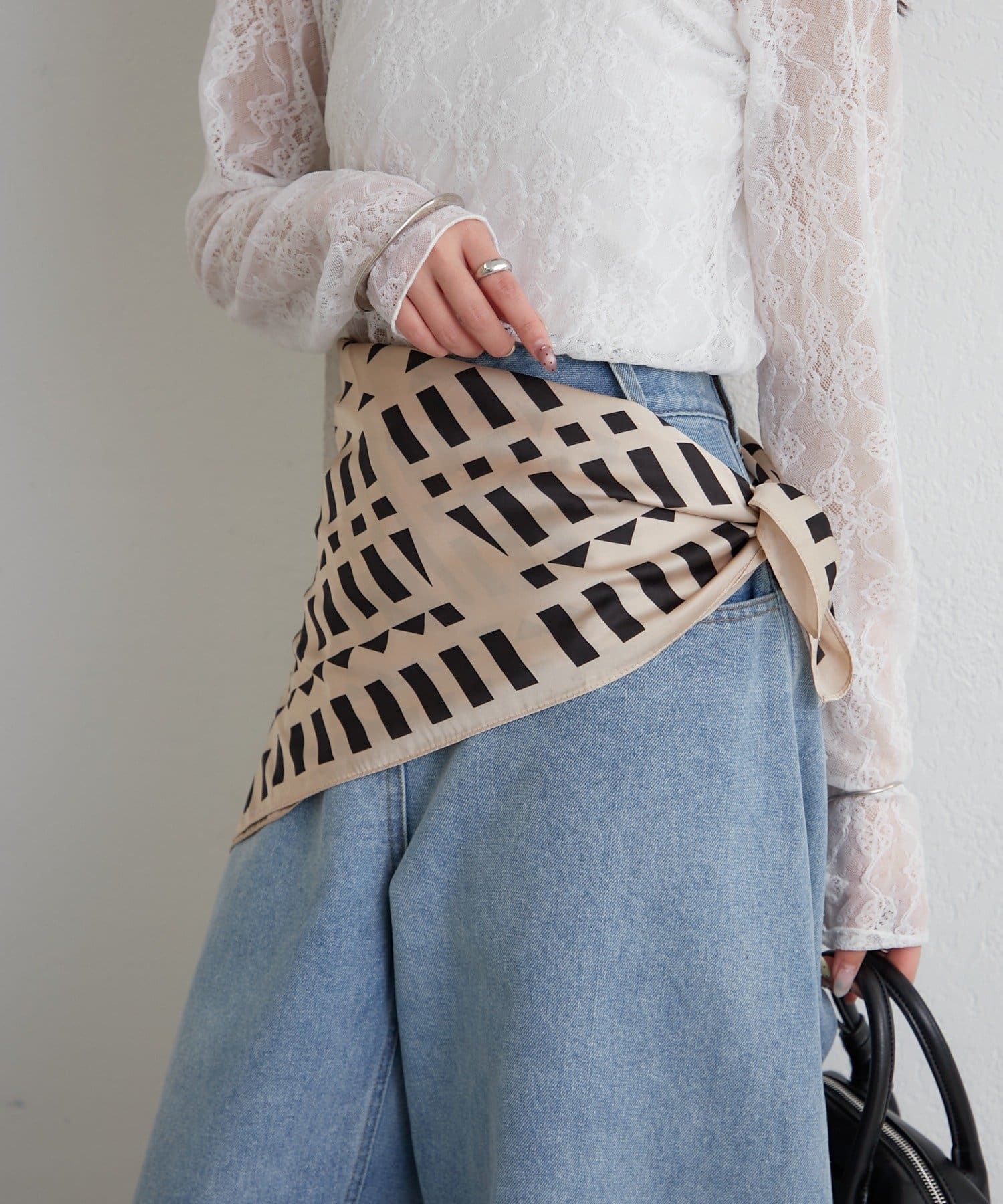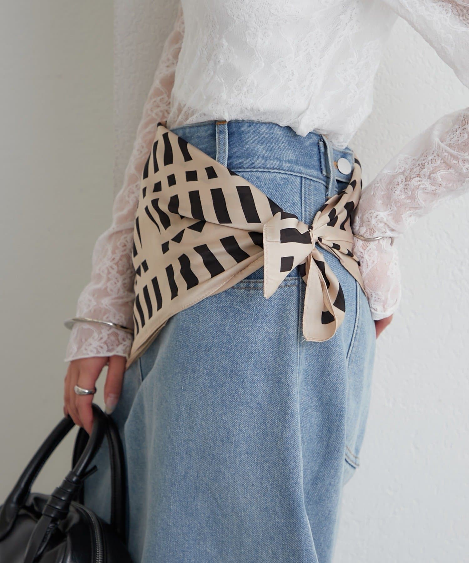 ・ビスチェ風に巻いて、トレンド感のある着こなしもおすすめです。
