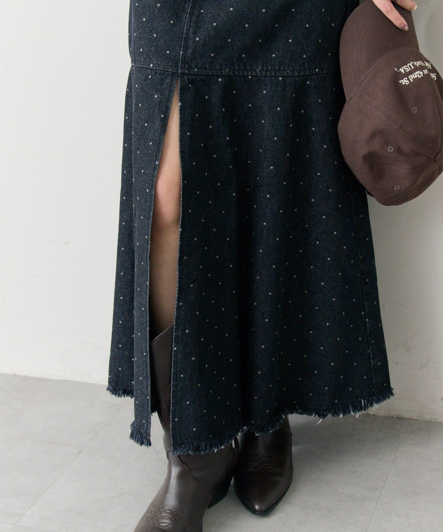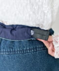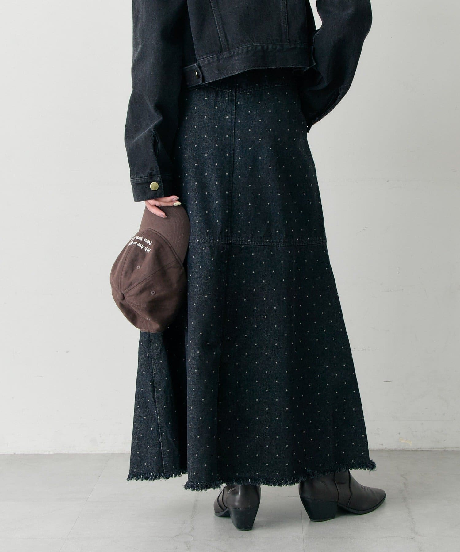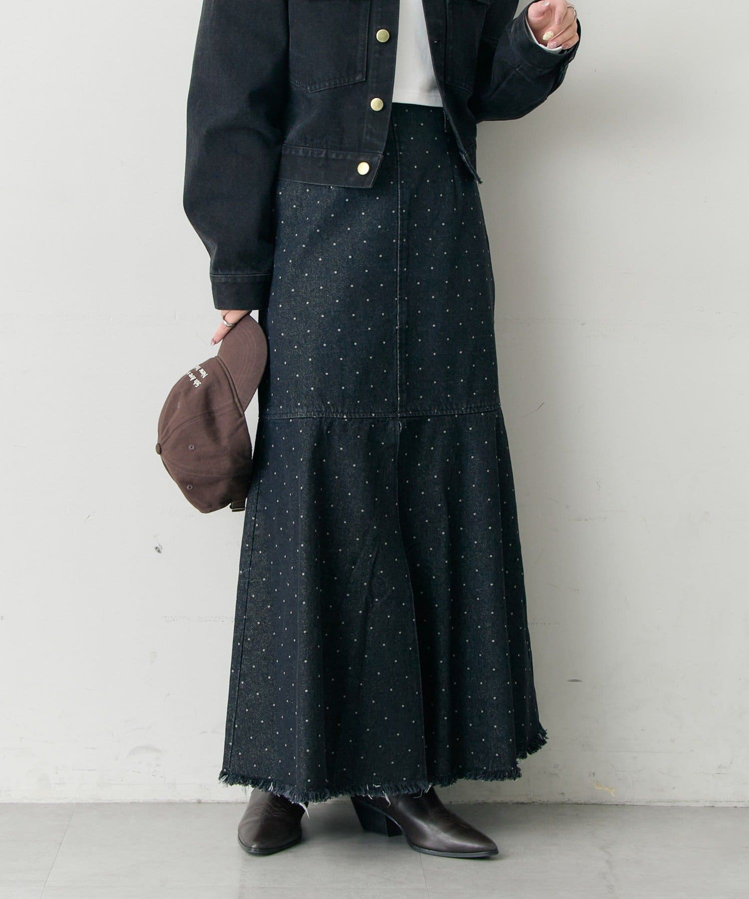 デニム素材ですが、キレイ見えもする大人っぽく決まるアイテムです。