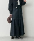 膝丈から裾に向かって広がるマーメイドシルエットで、腰回りがスッキリして見えます。