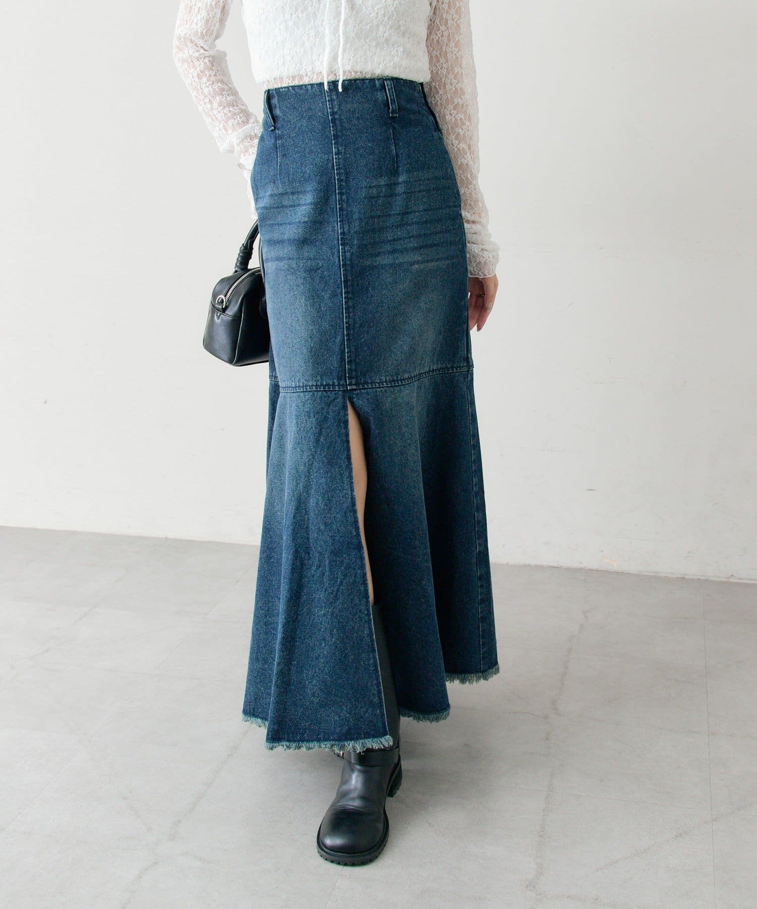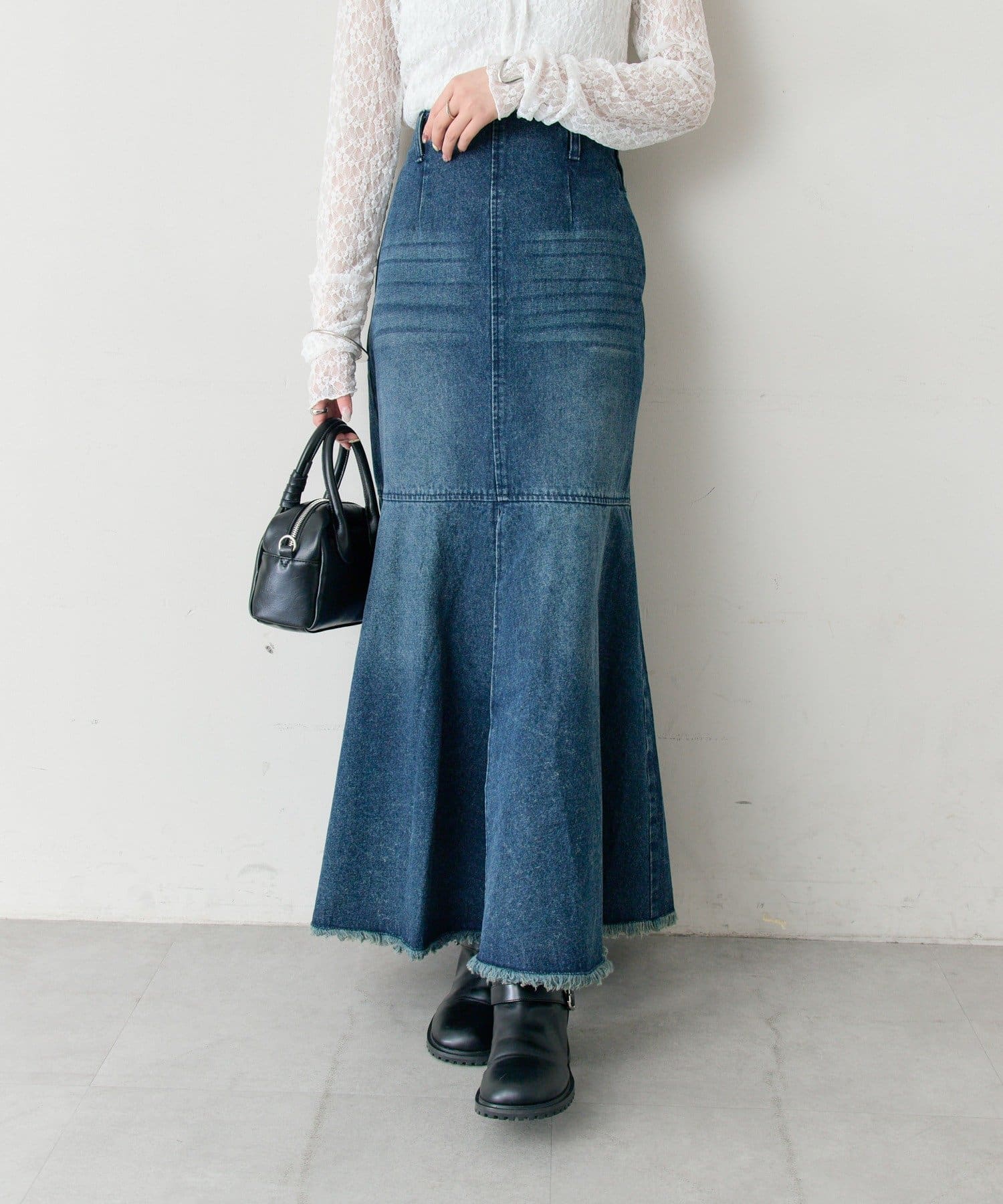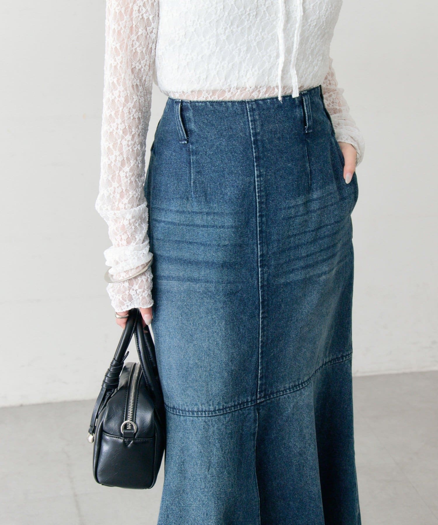 マーメイドシルエットで女性らしさを引き立てるデニムスカート