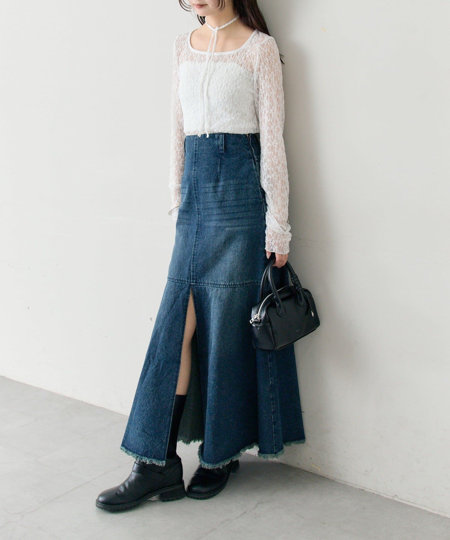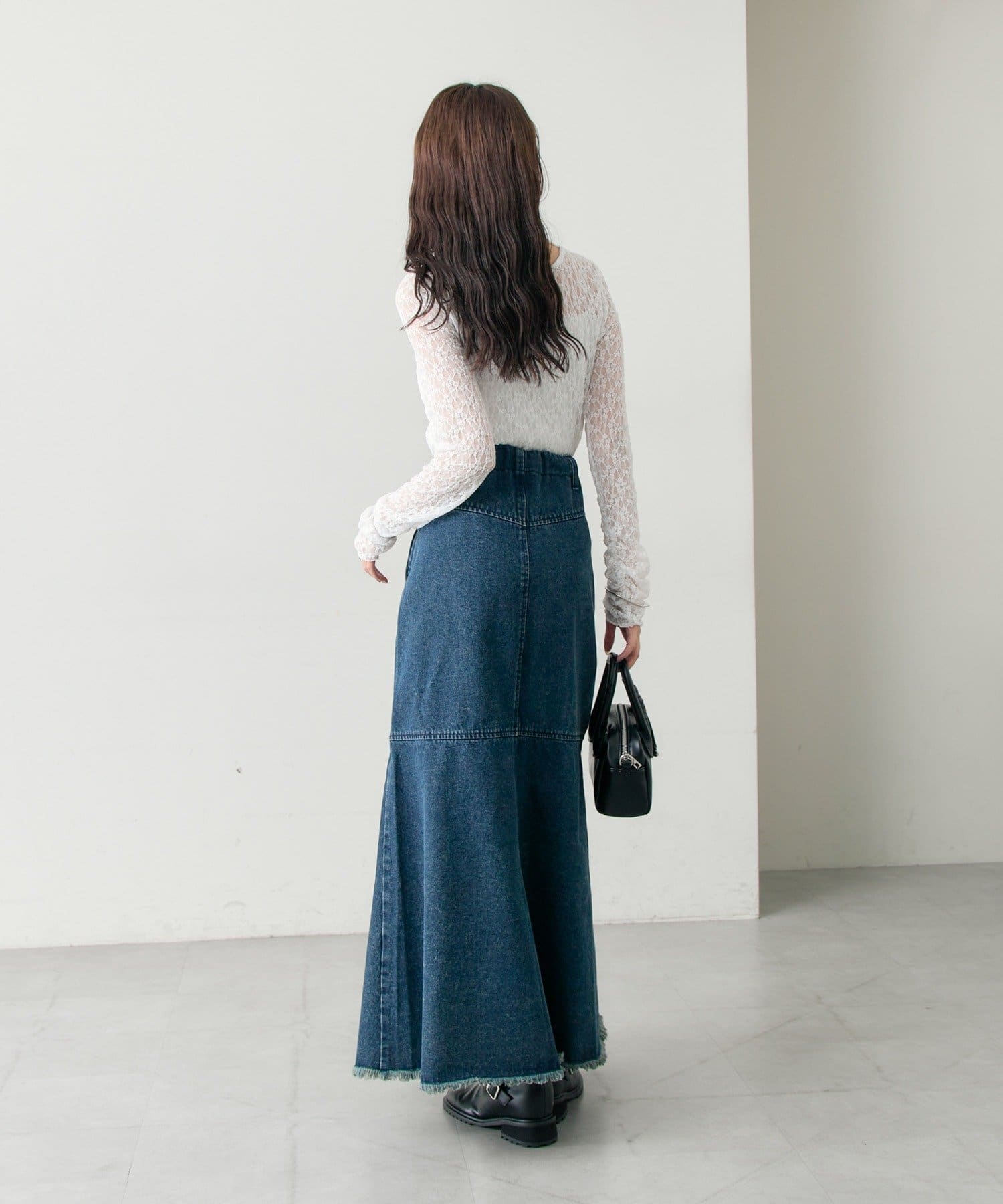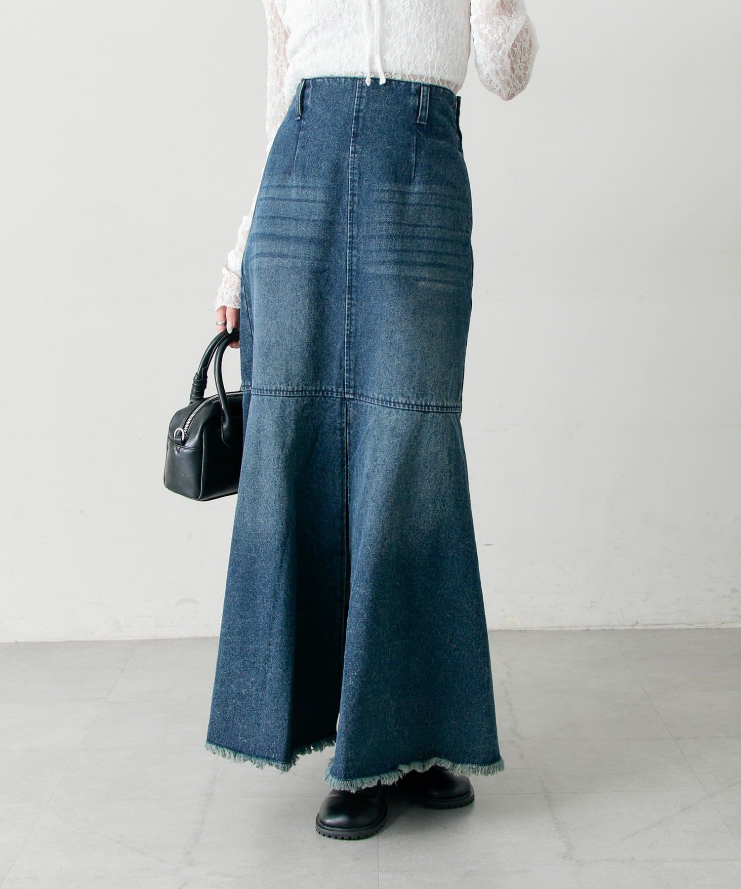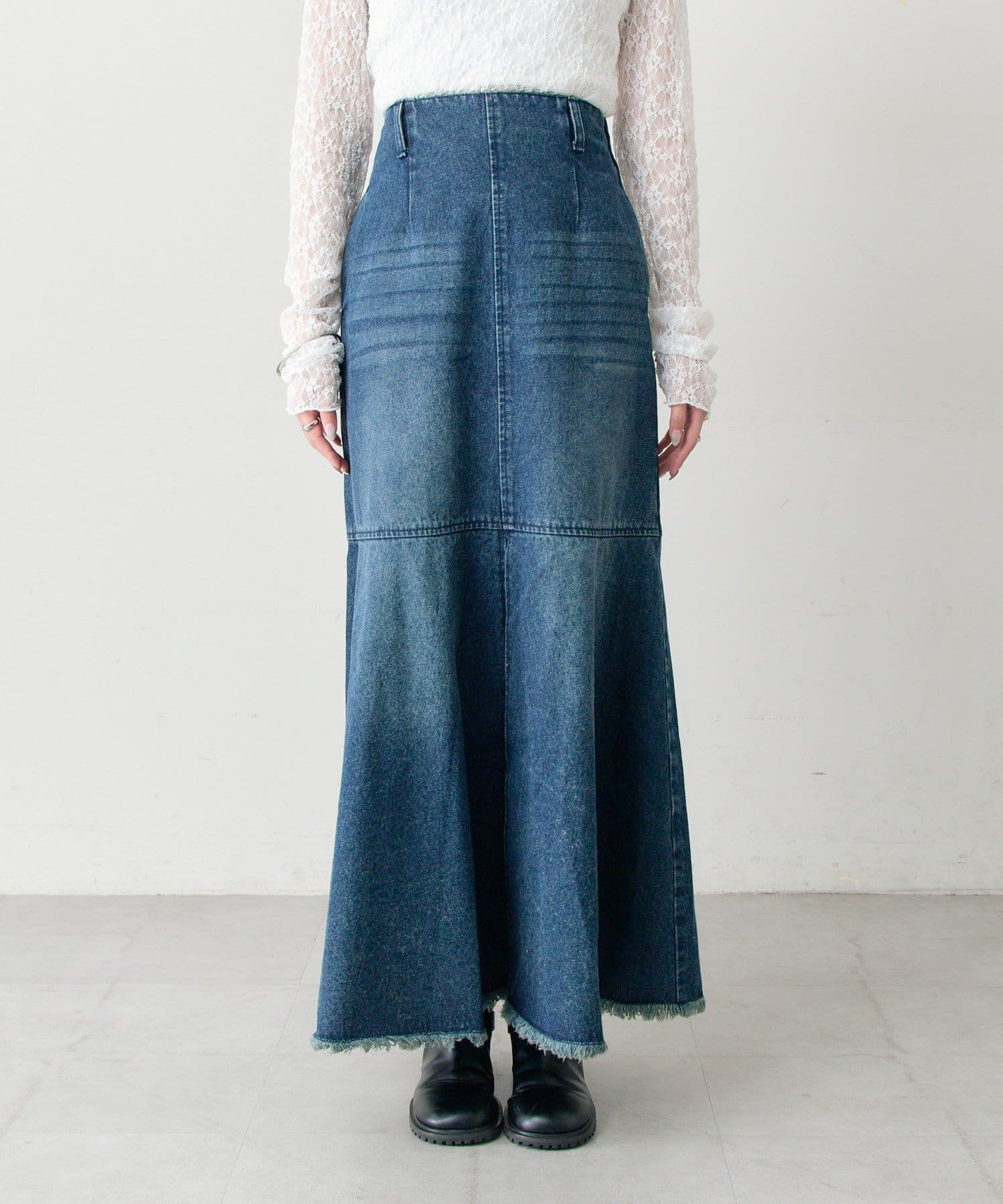 マーメイドシルエットで女性らしさを引き立てるデニムスカート