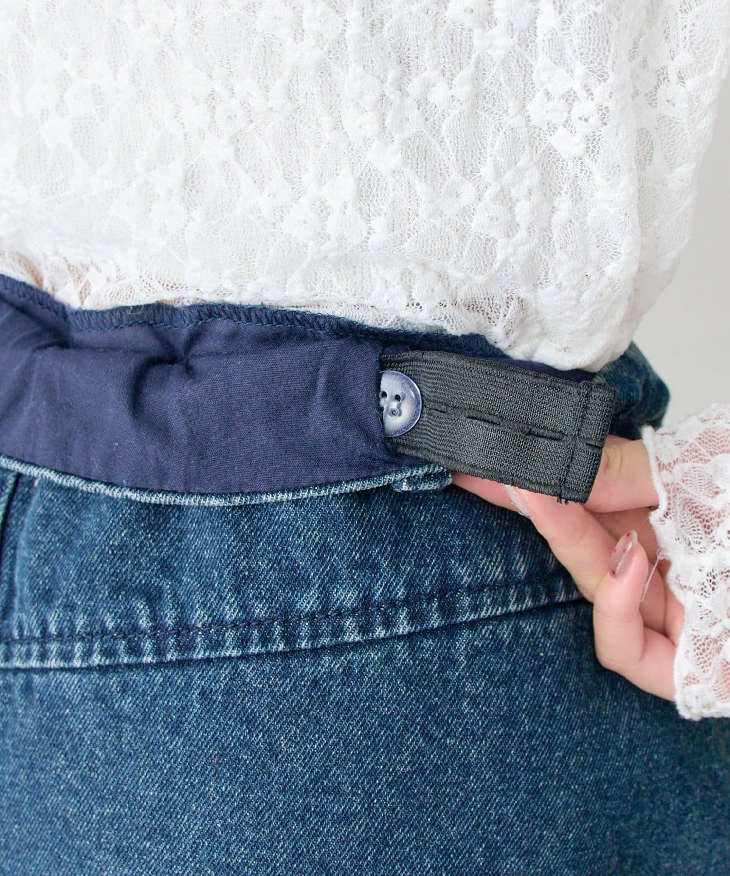 ・デニム素材でもカジュアルになりすぎず、程よくフェミニンに仕上がる一枚。
