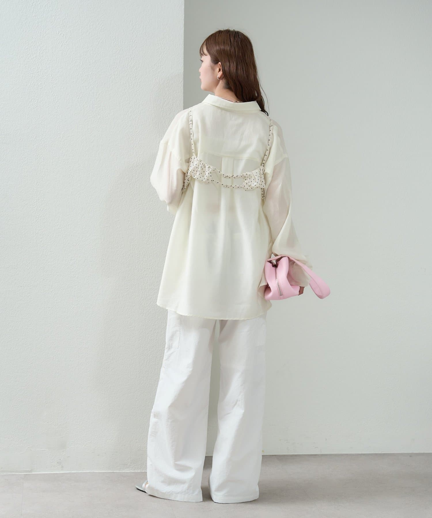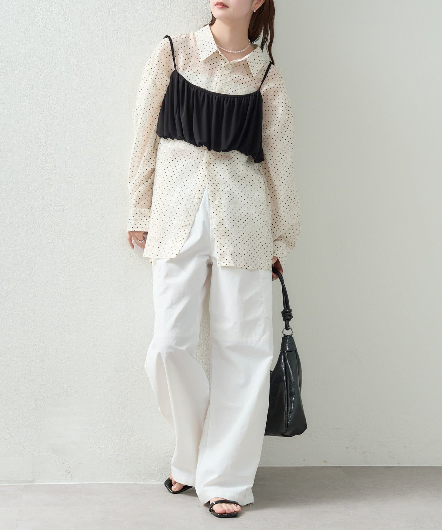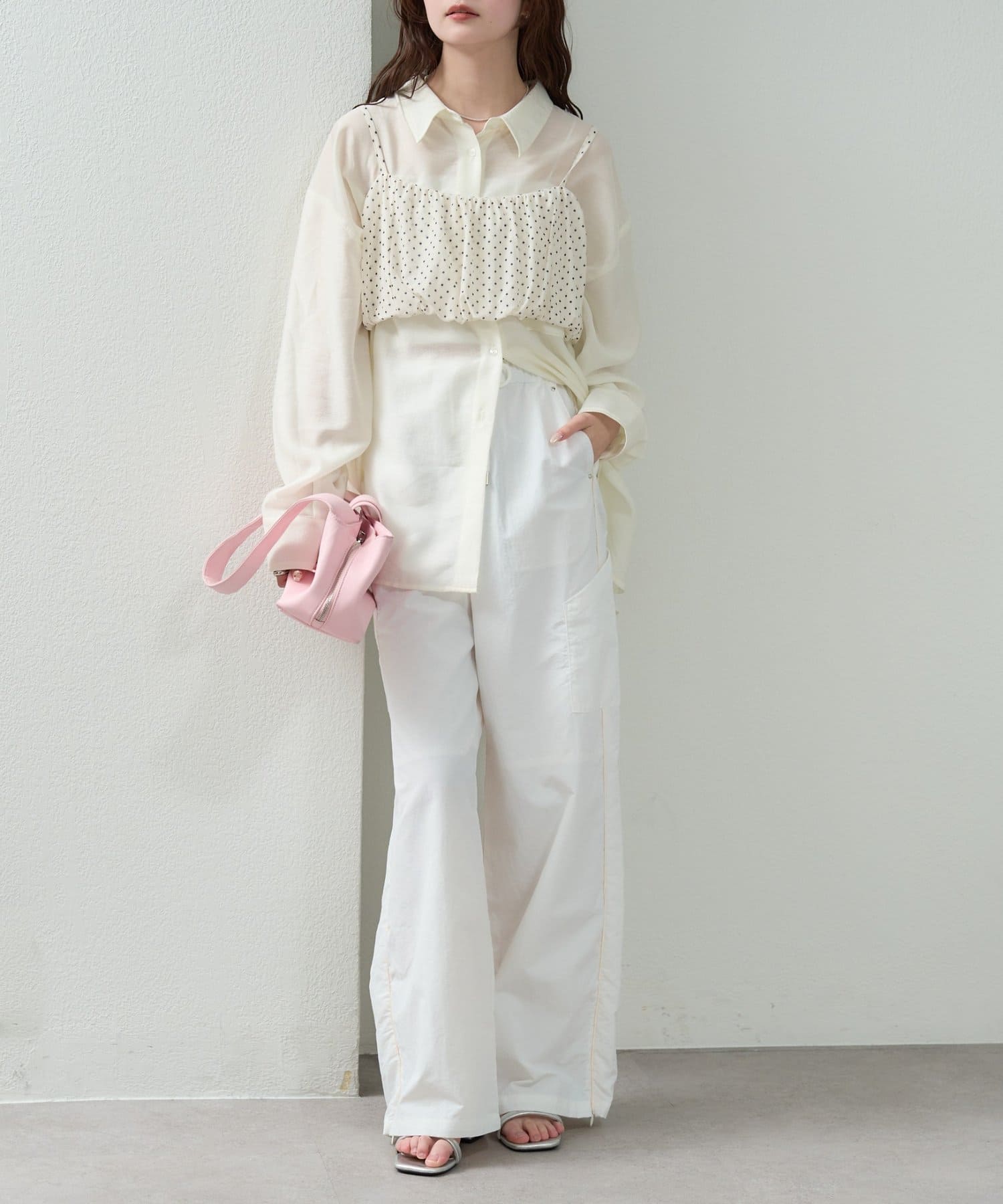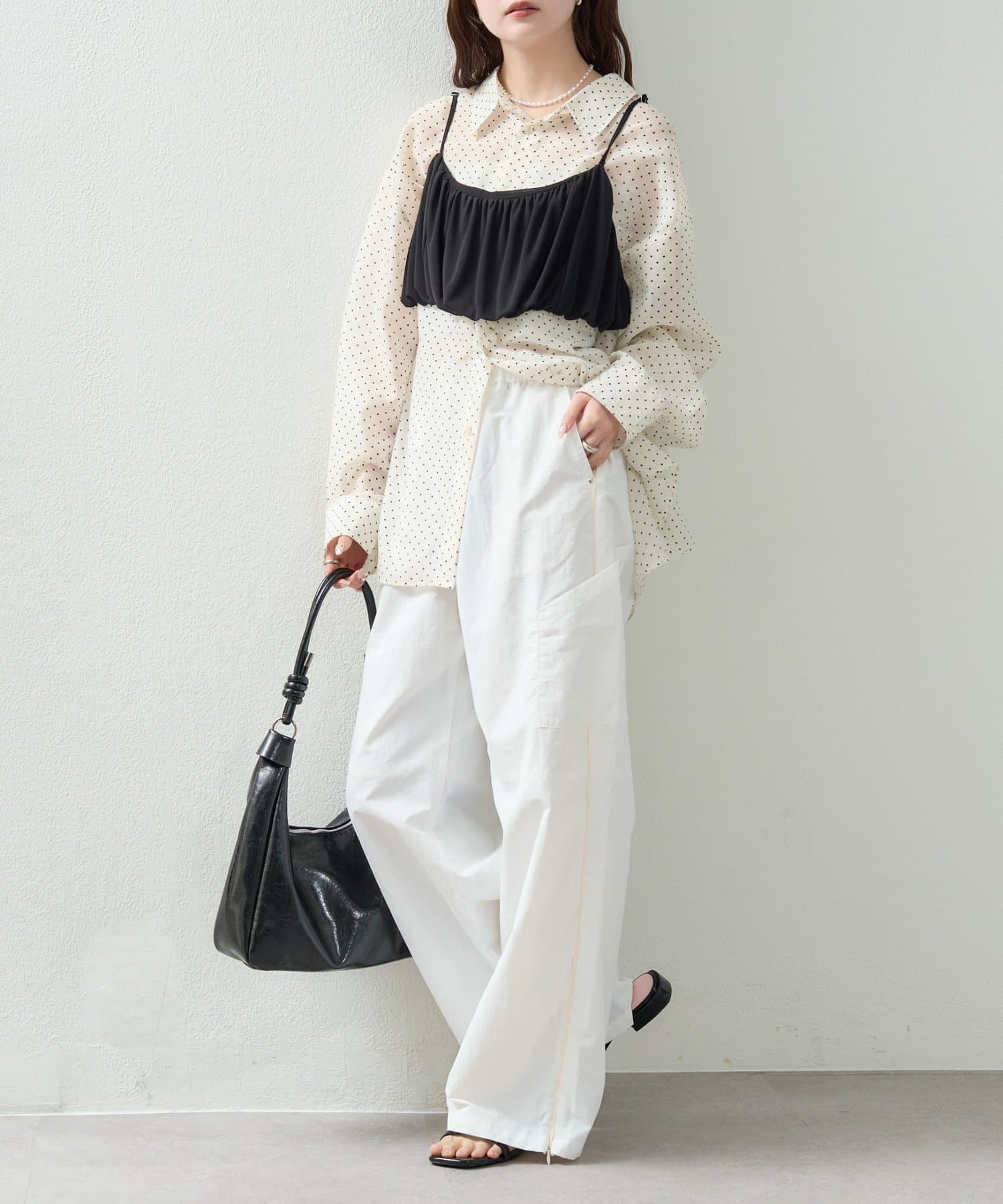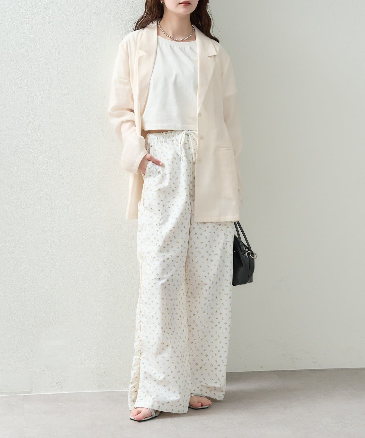 ・ジャケットを合わせてキレイめに引き寄せたスタイリングにも。