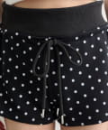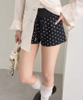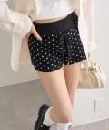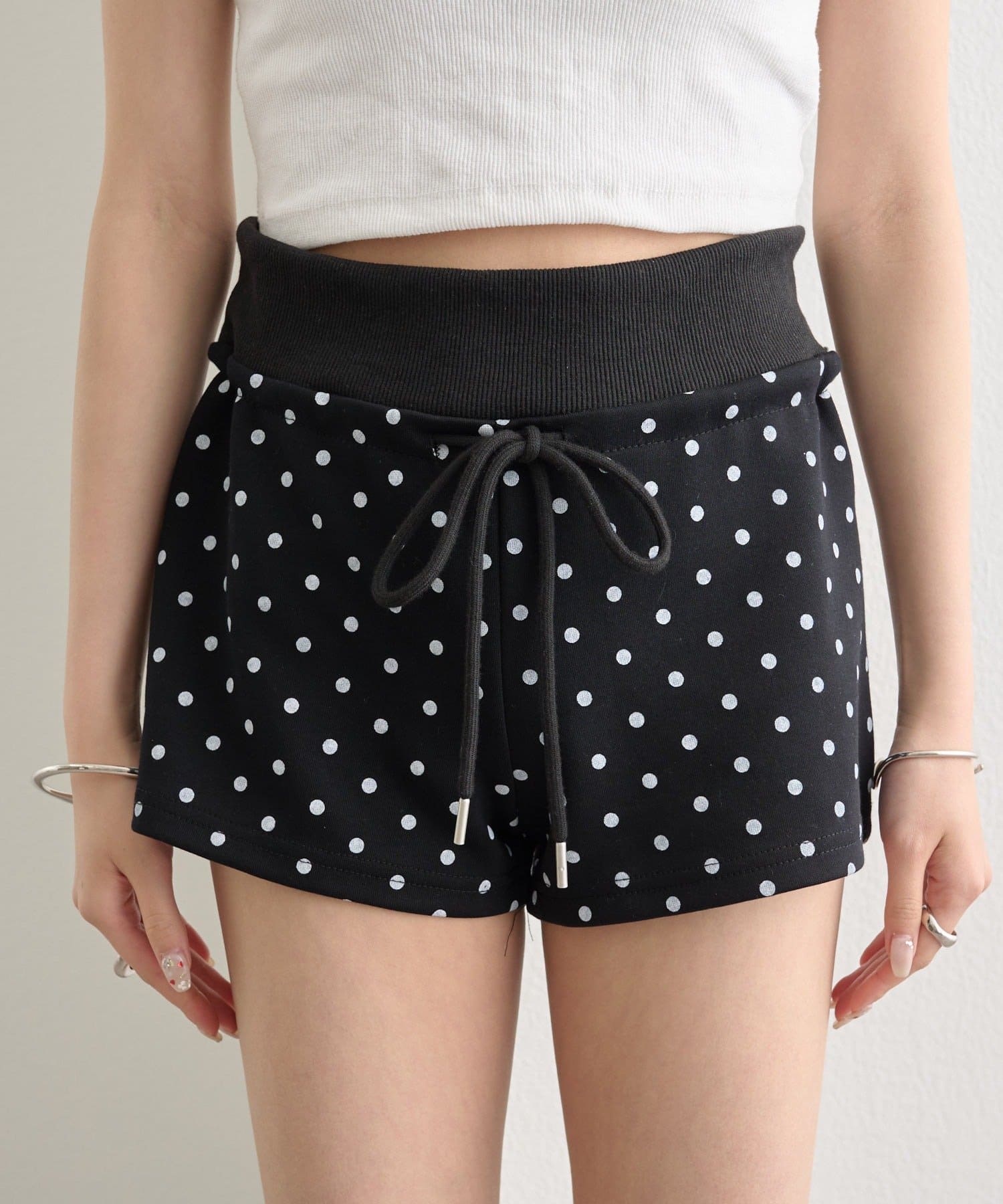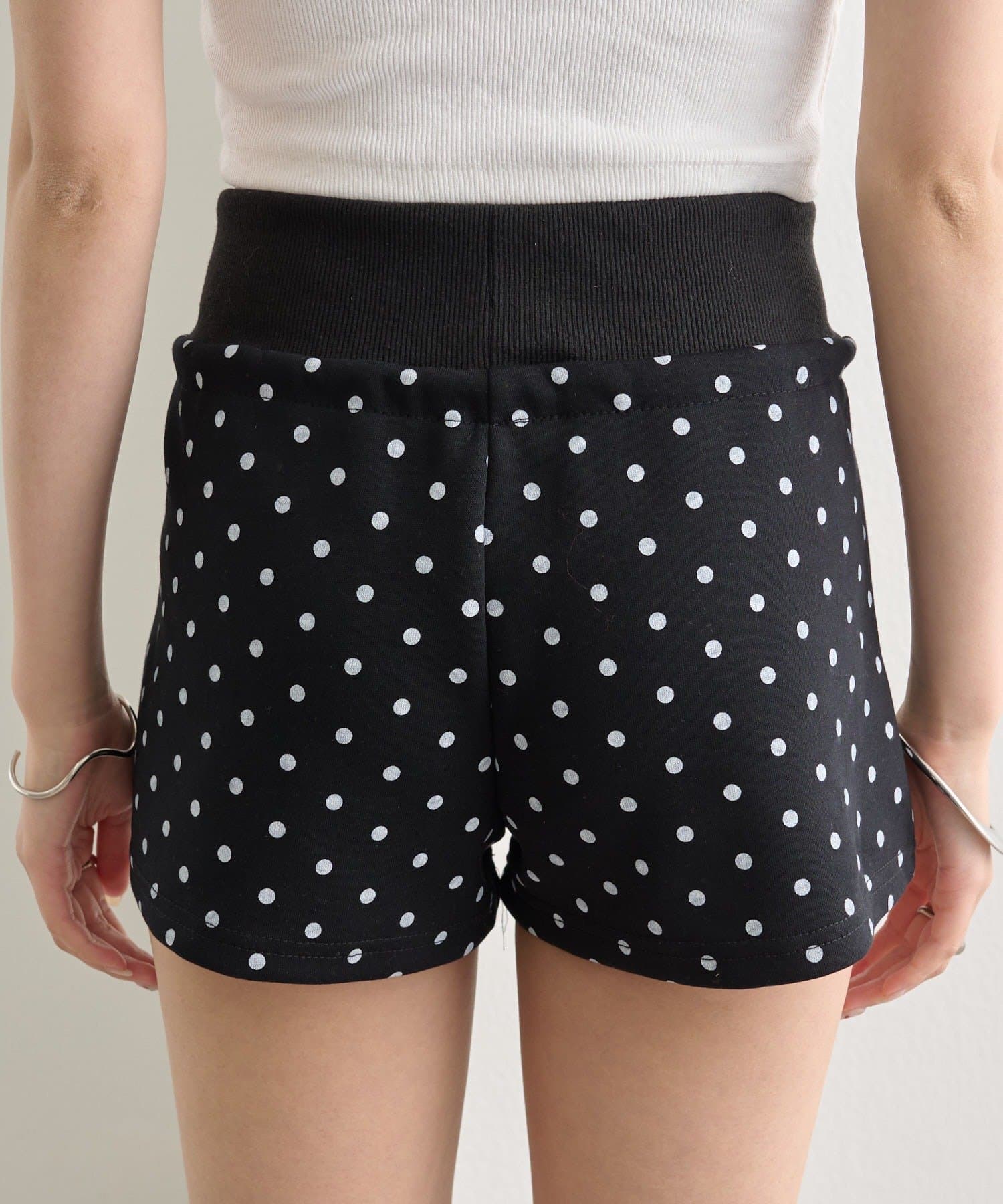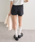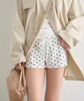 ドット柄が甘すぎない、大人可愛い印象を与えてくれるマイクロショートパンツ。