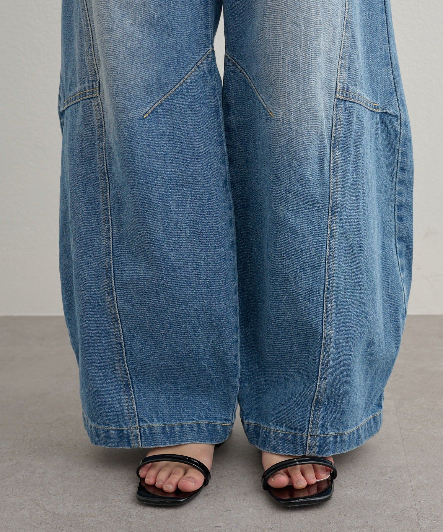 ・太ももから裾にかけて丸みを持たせた、バレルシルエット。