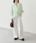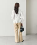 ・スラックスやタックパンツを合わせると、甘さを抑えた大人フェミニンなスタイリングに。