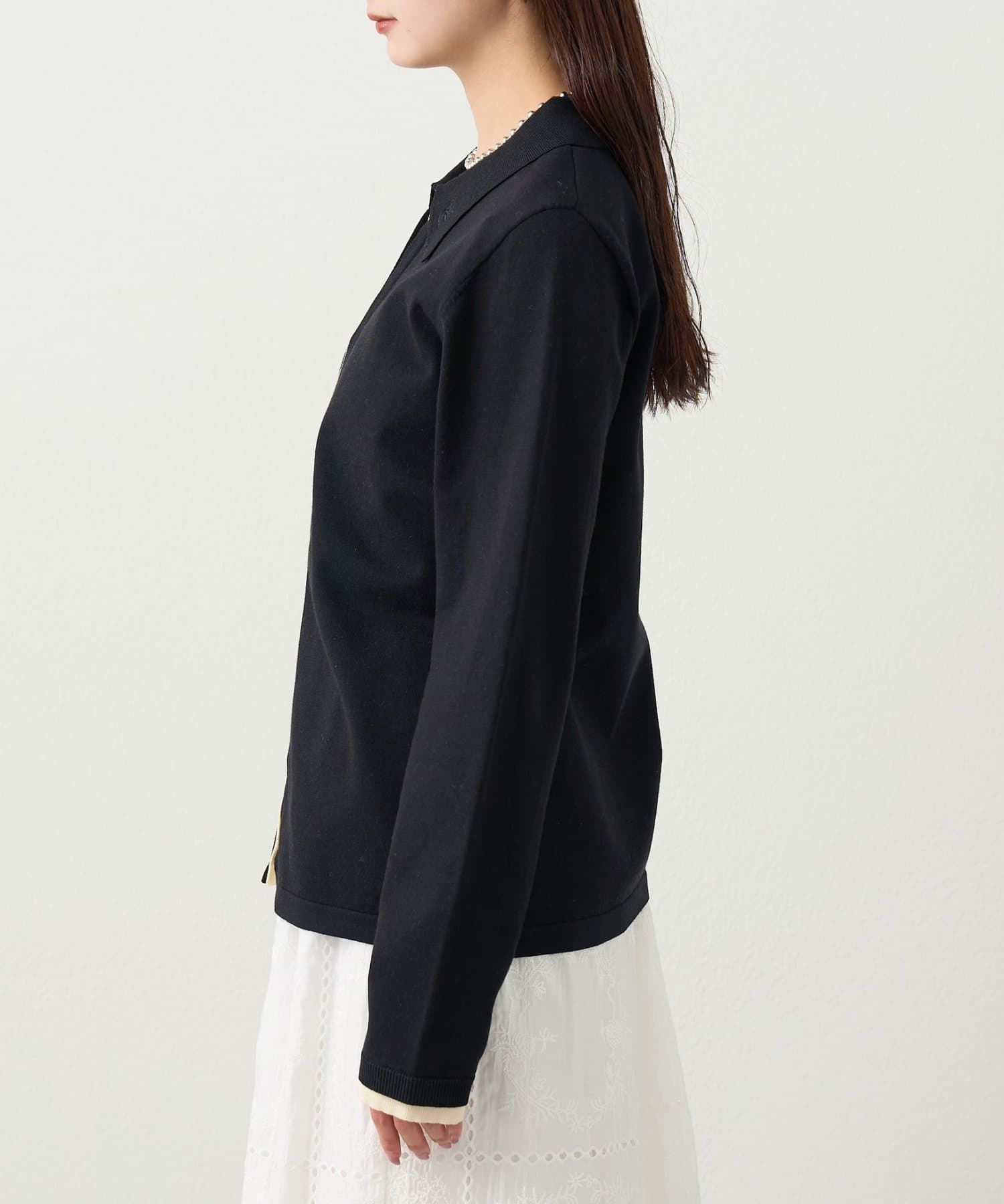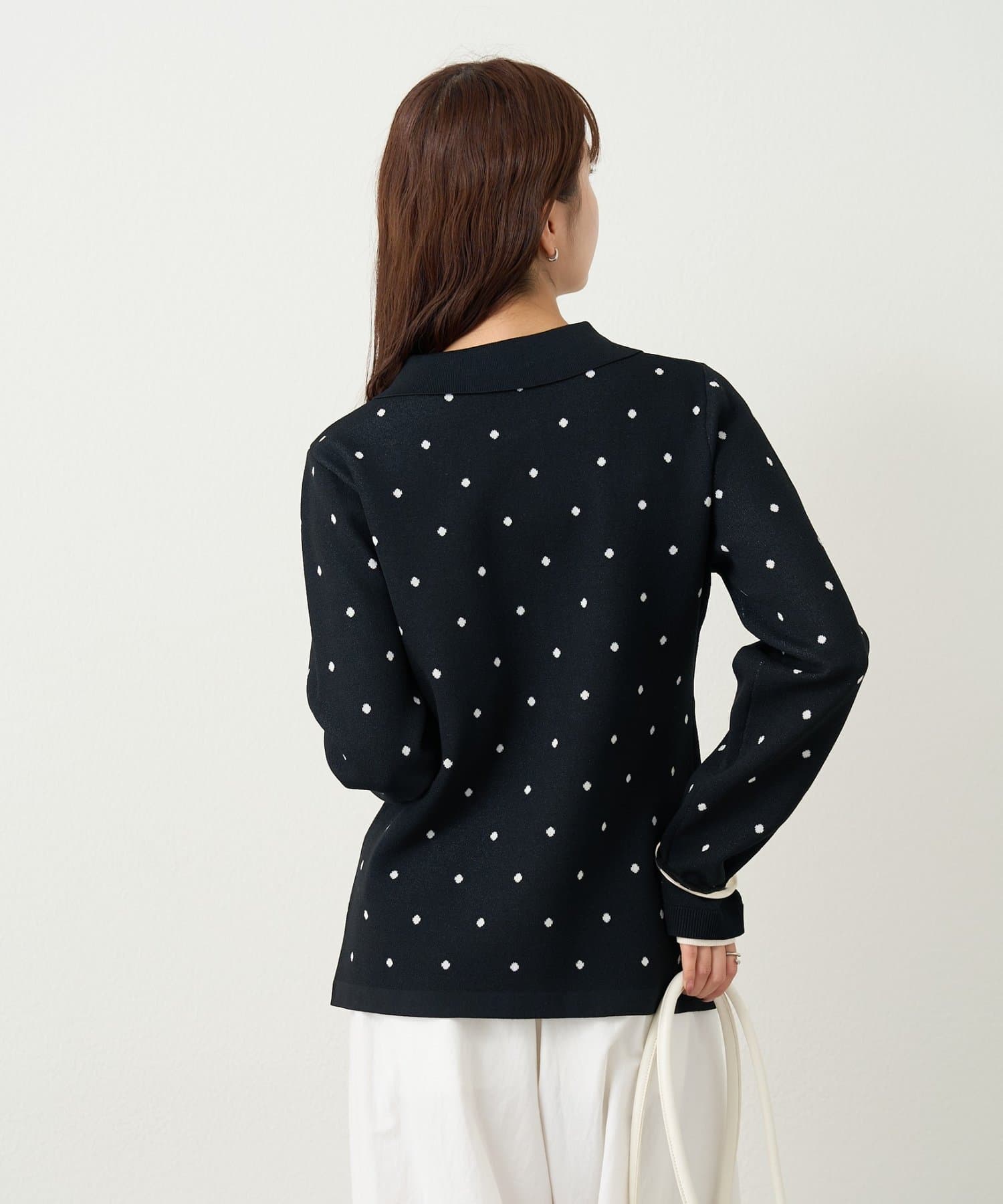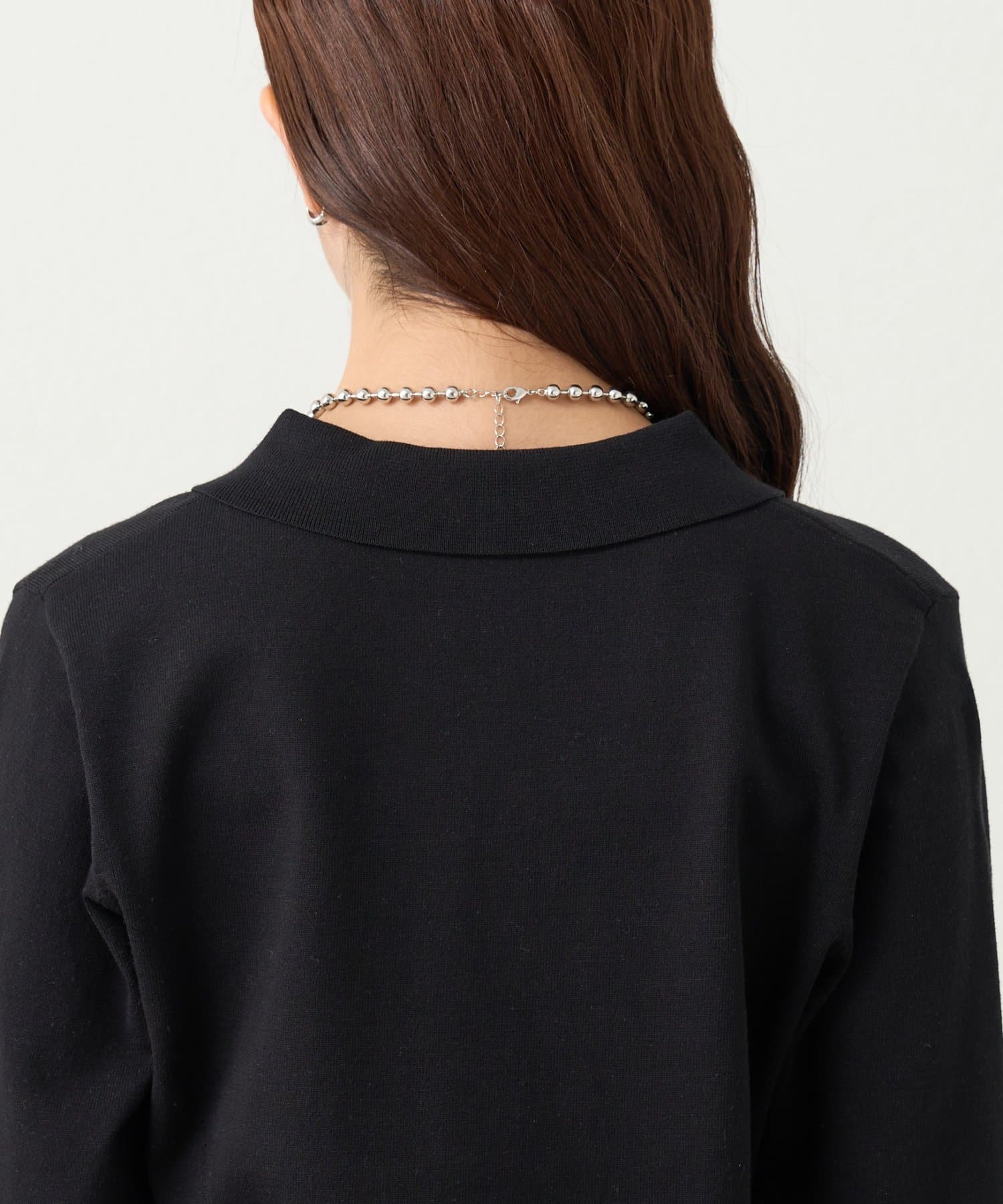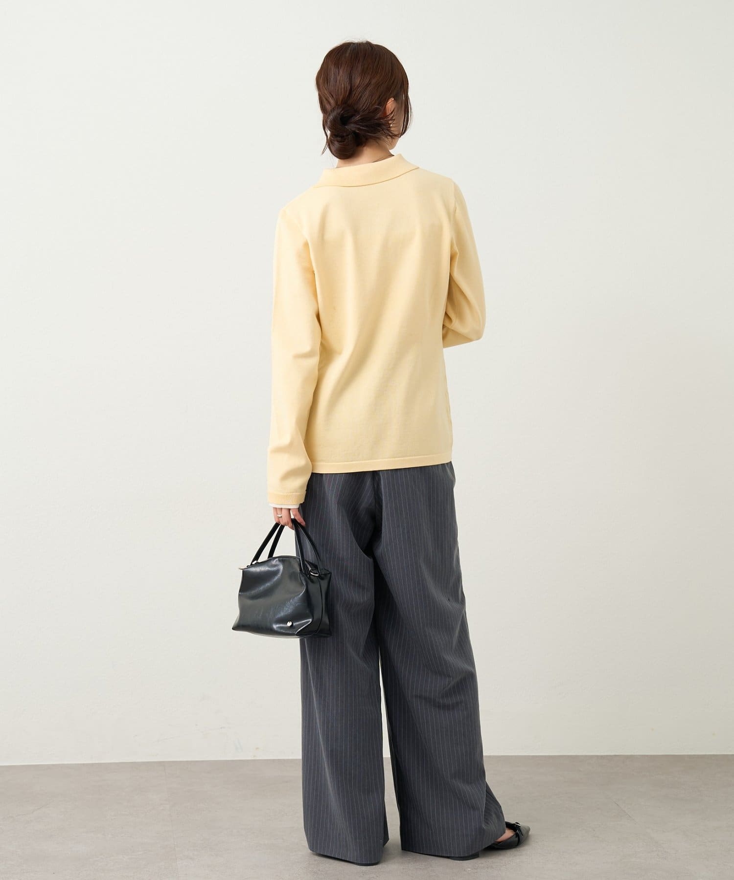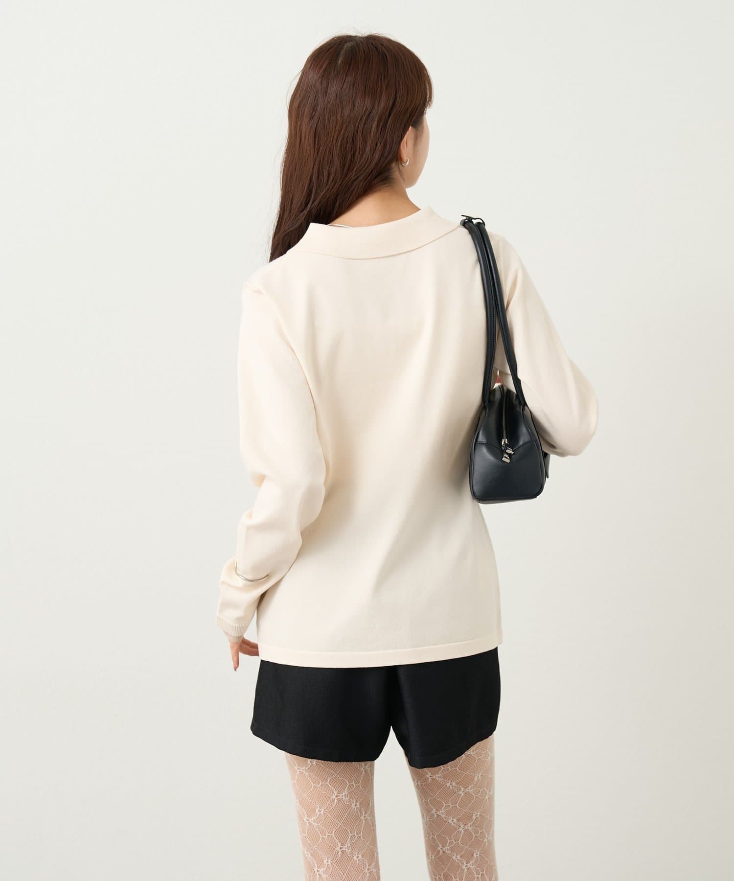 ・襟付きデザインが上品な印象を演出してくれる長袖ポロニット。