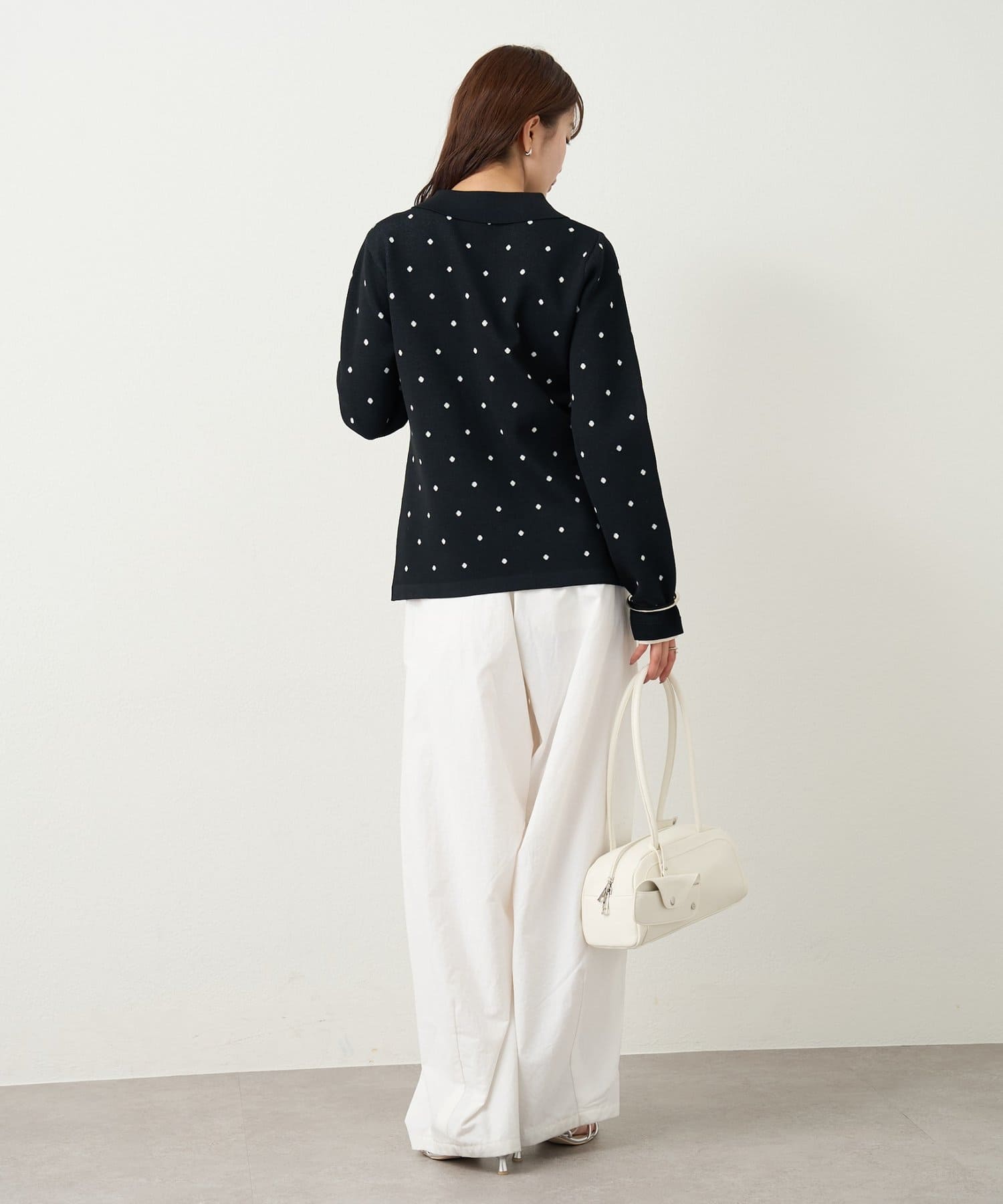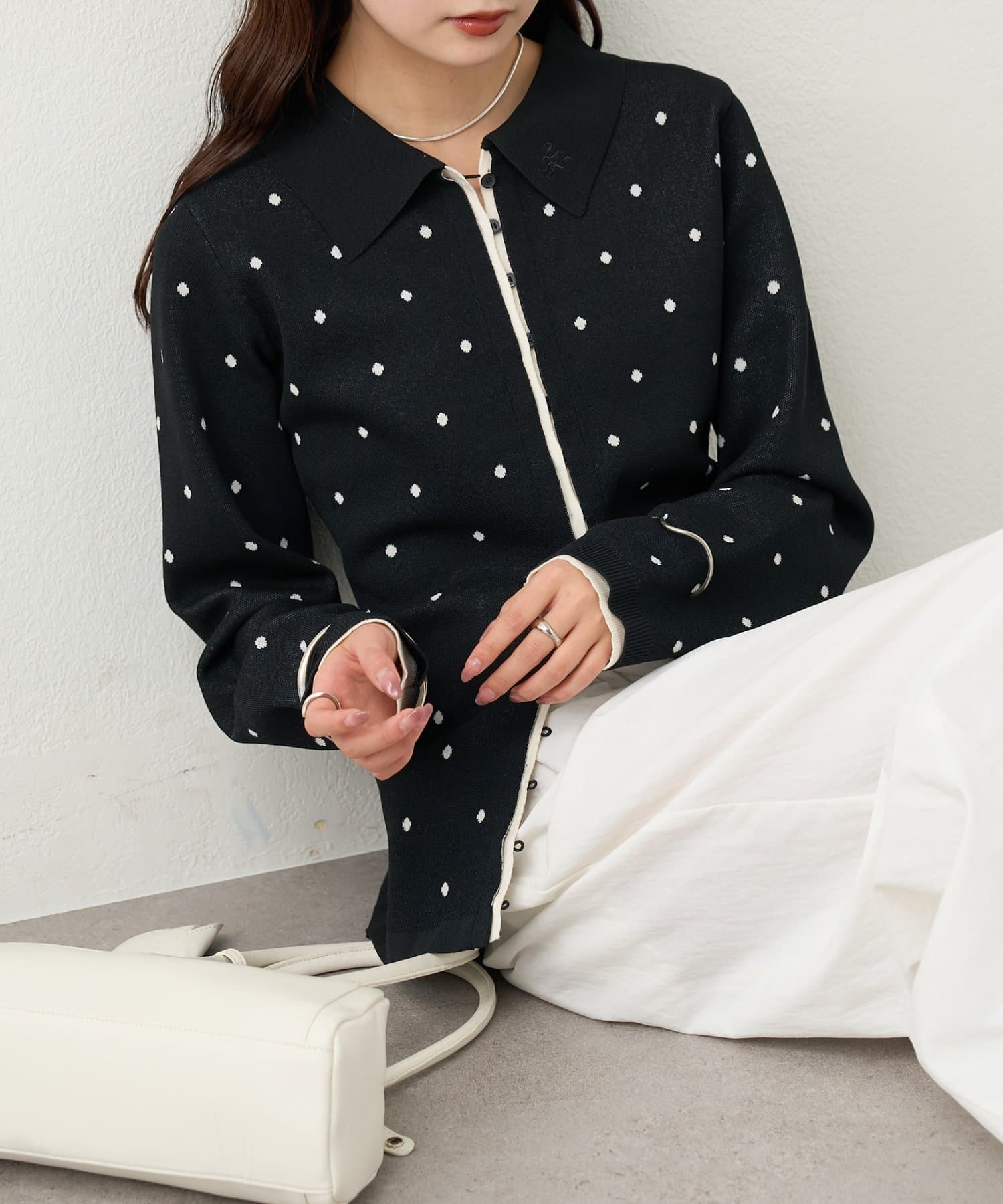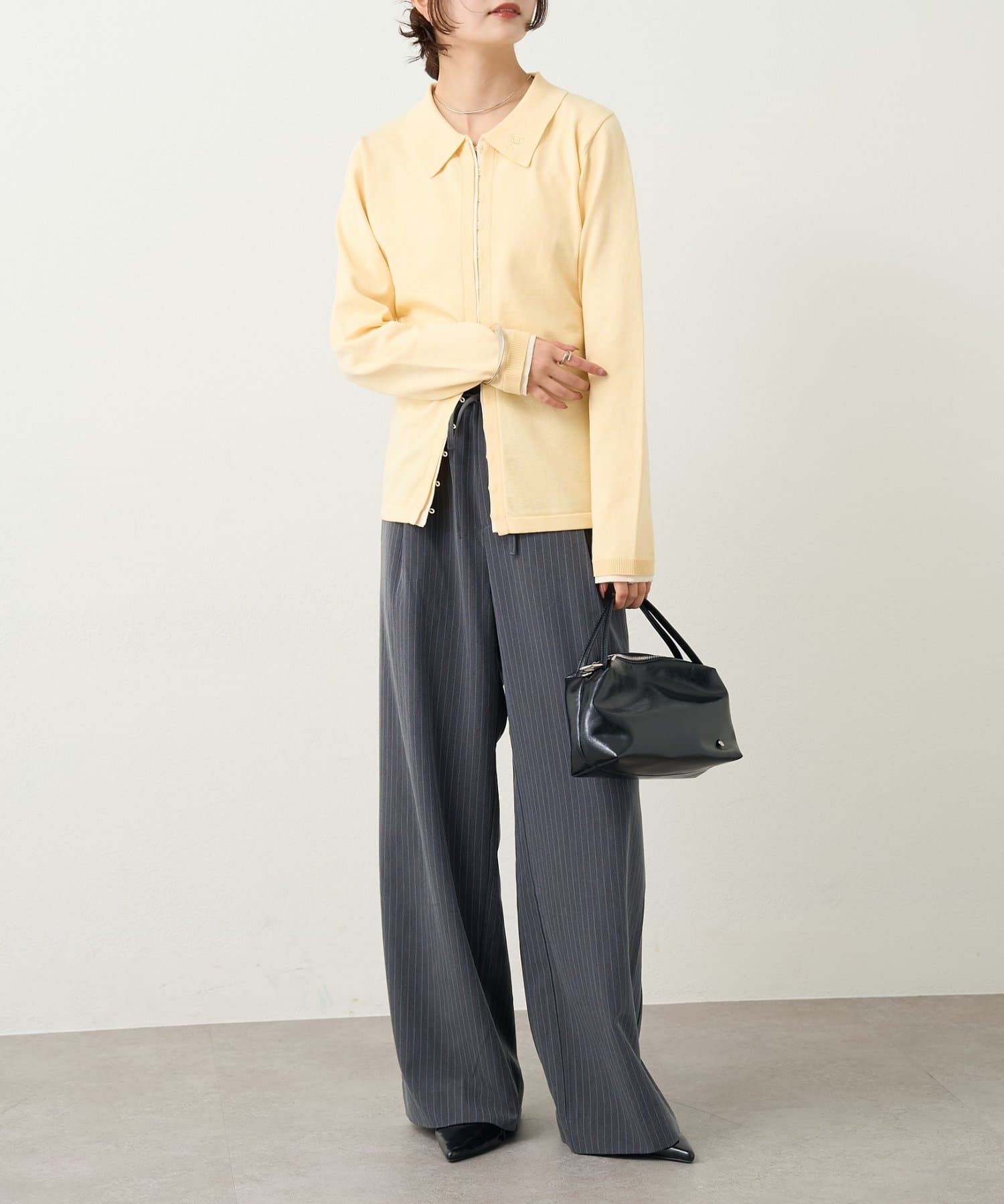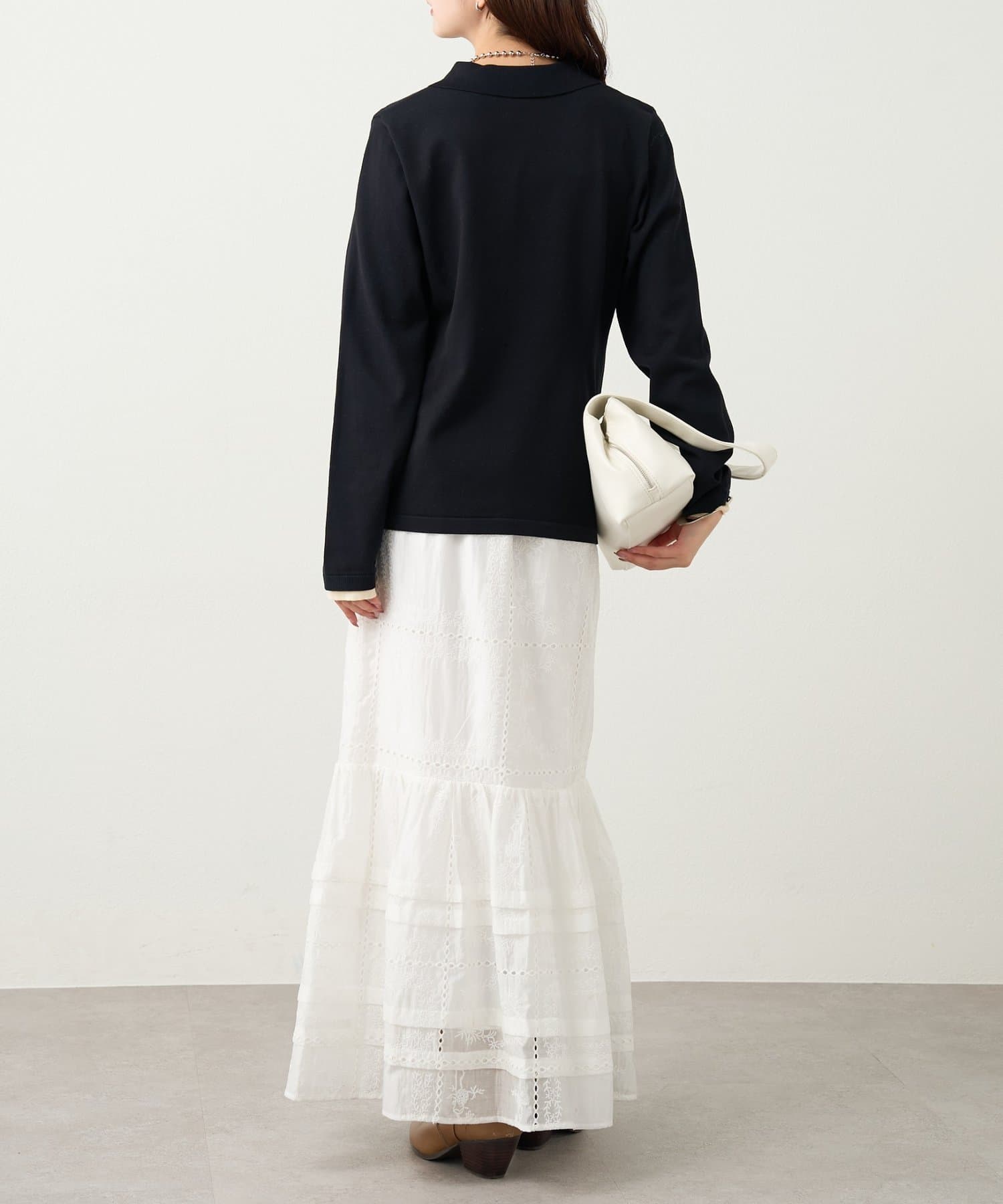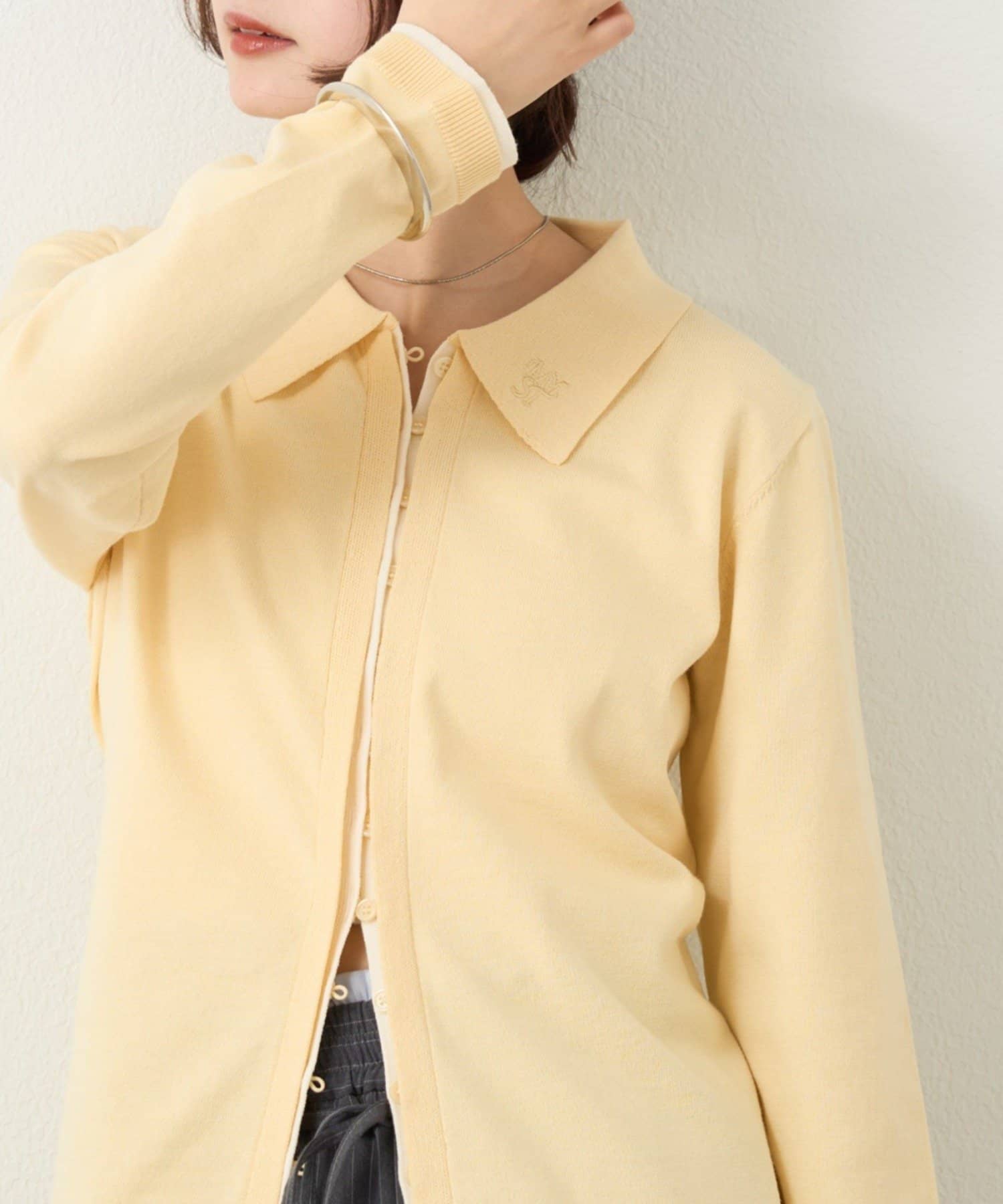 ・襟付きデザインが上品な印象を演出してくれる長袖ポロニット。