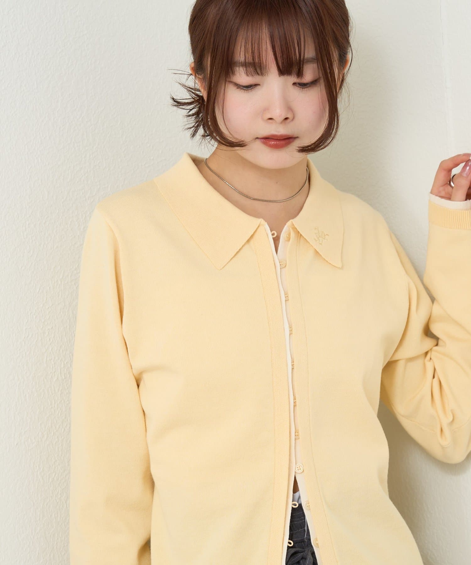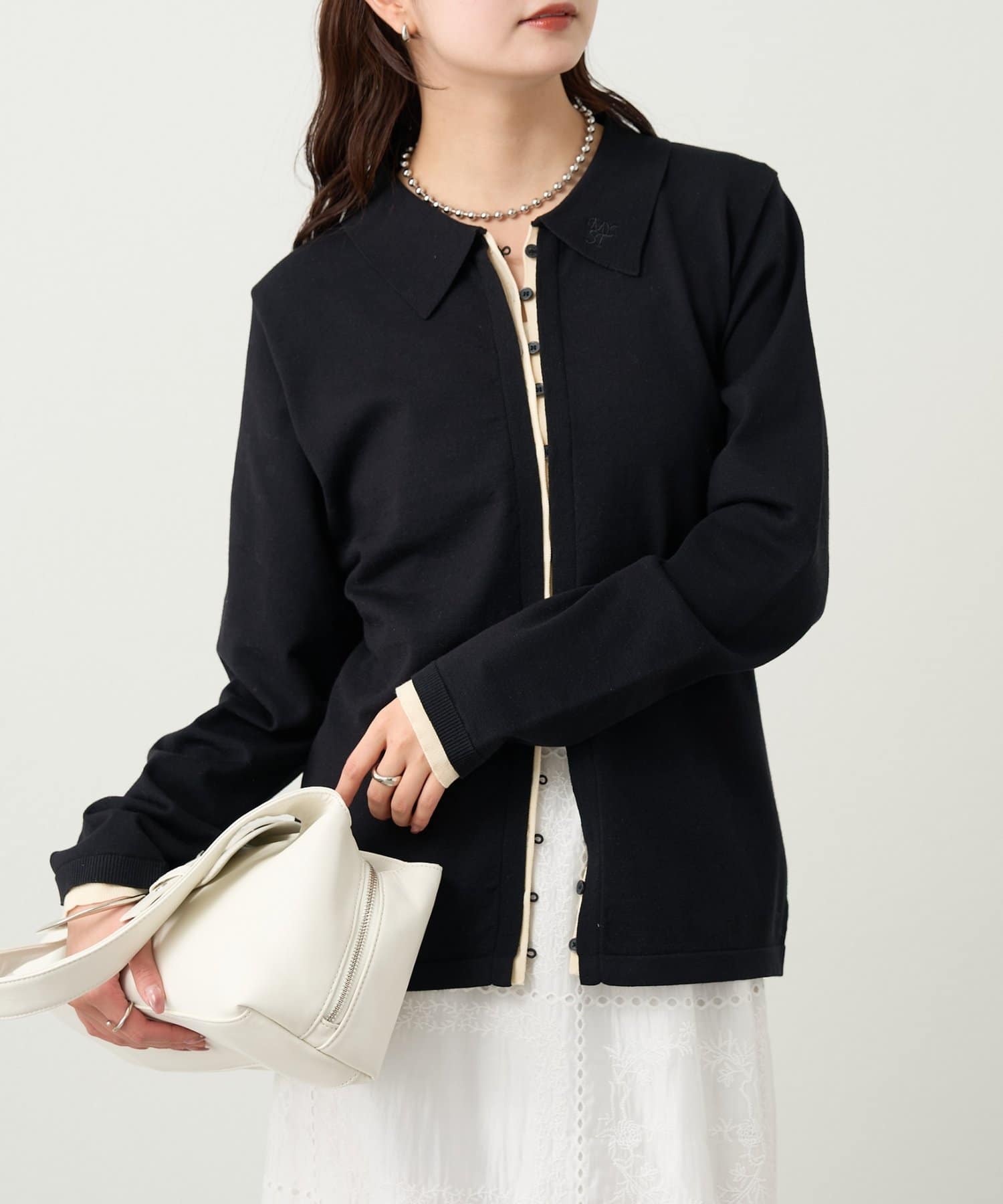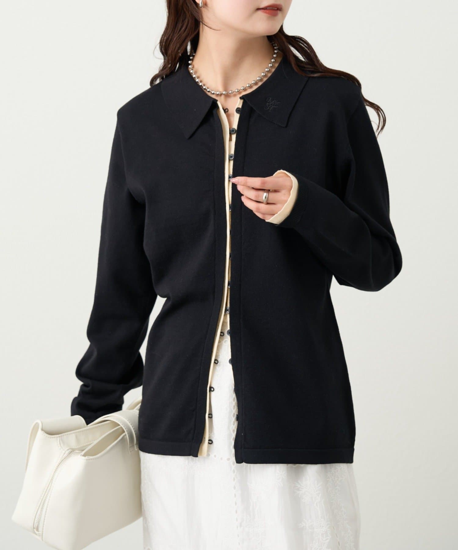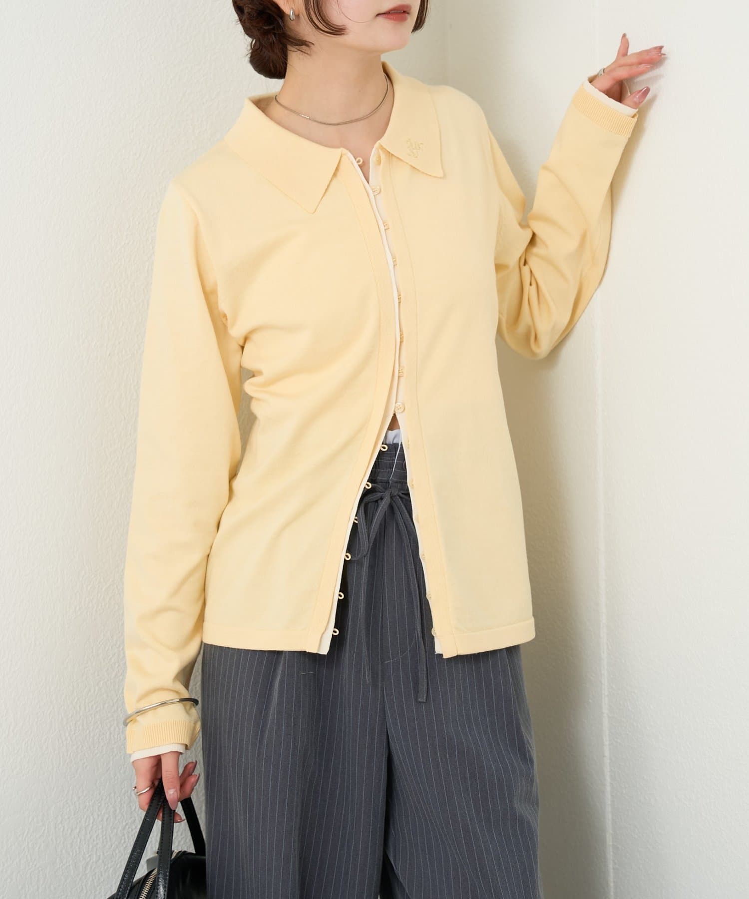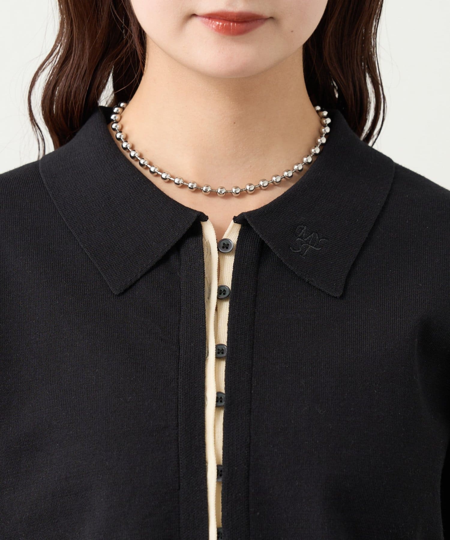 ・襟付きデザインが上品な印象を演出してくれる長袖ポロニット。