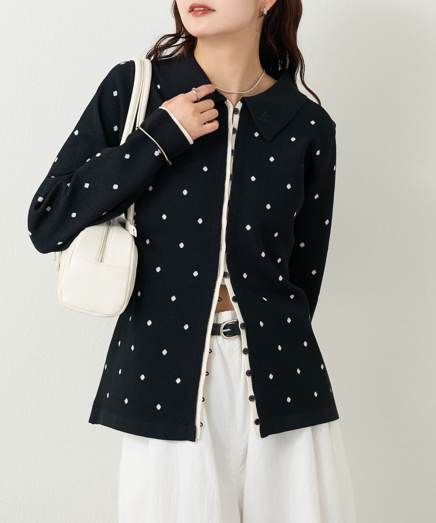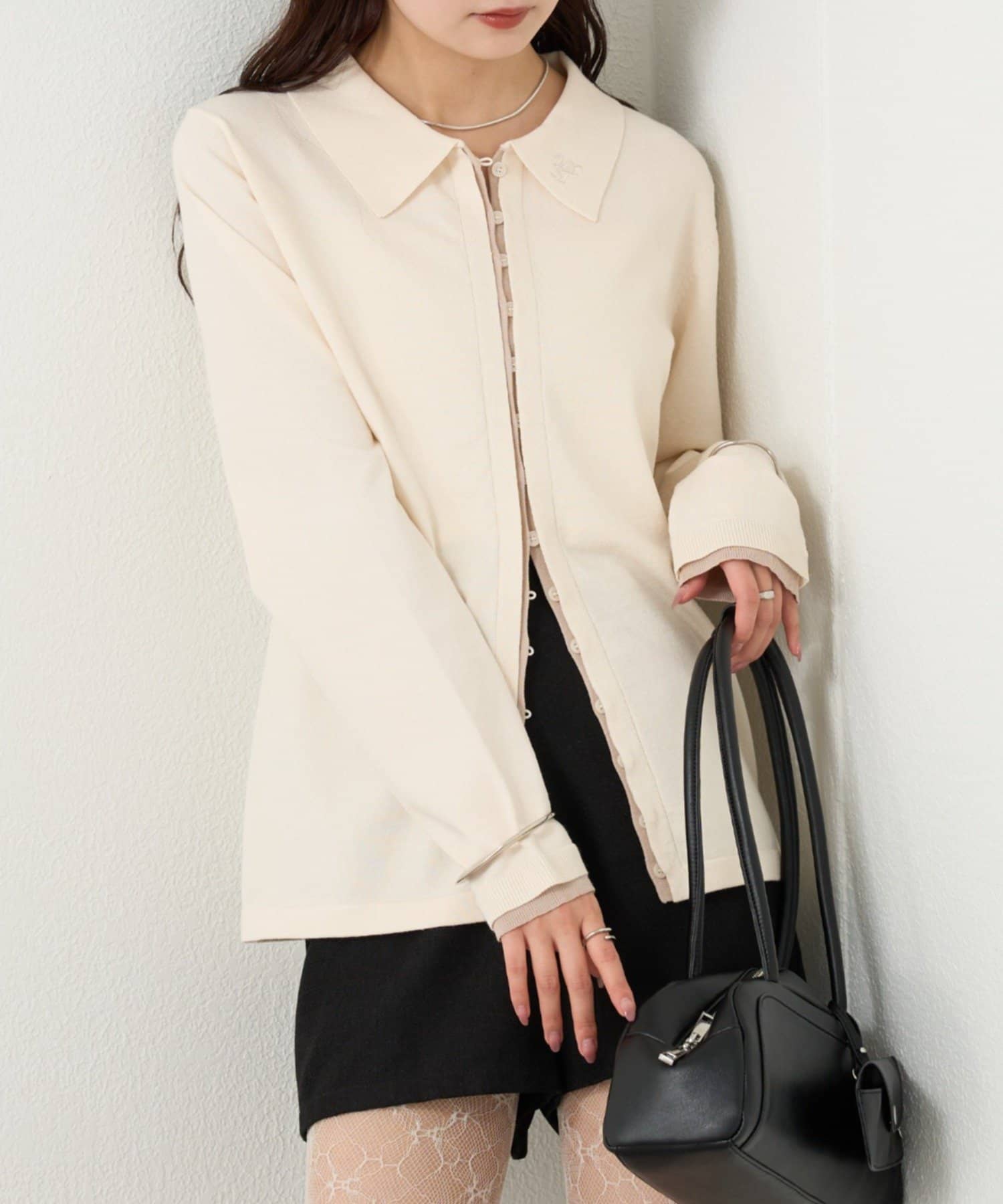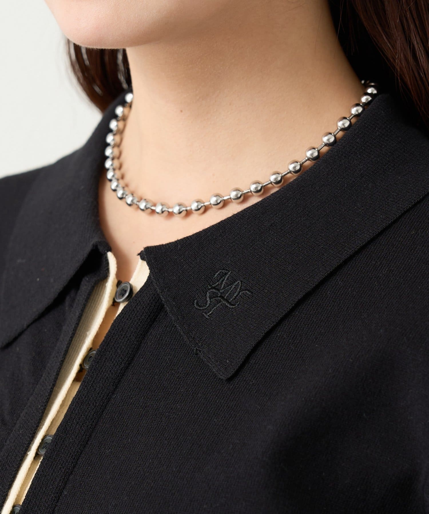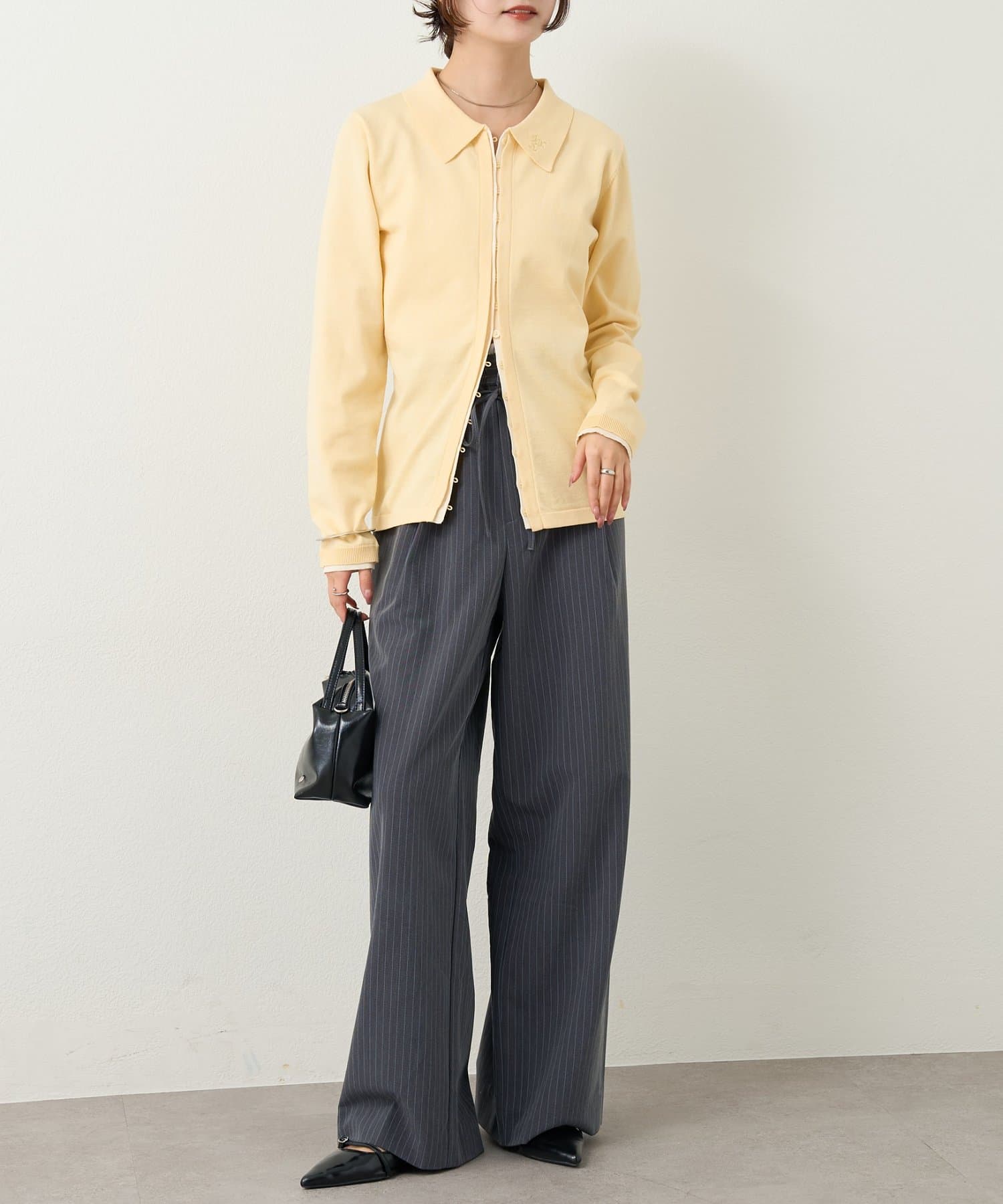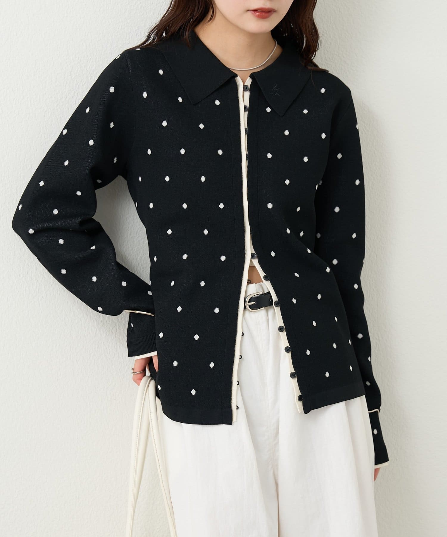 ・襟付きデザインが上品な印象を演出してくれる長袖ポロニット。