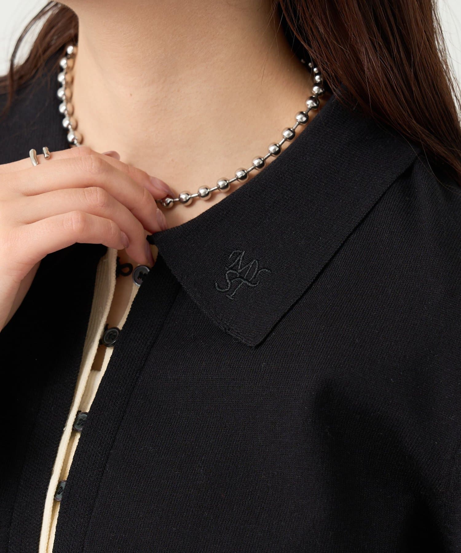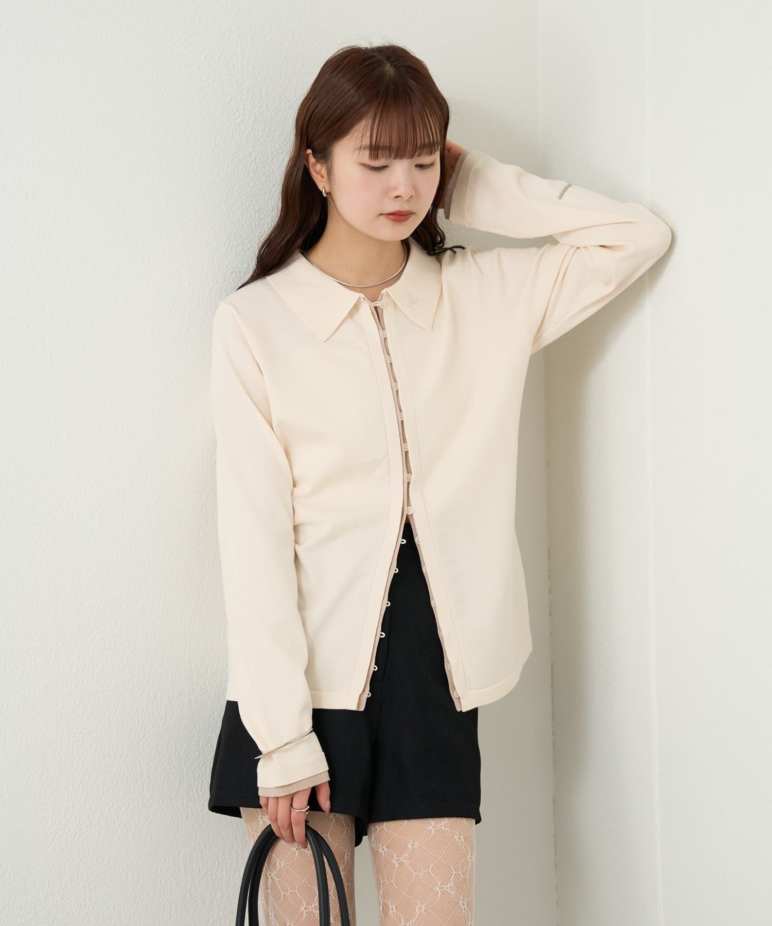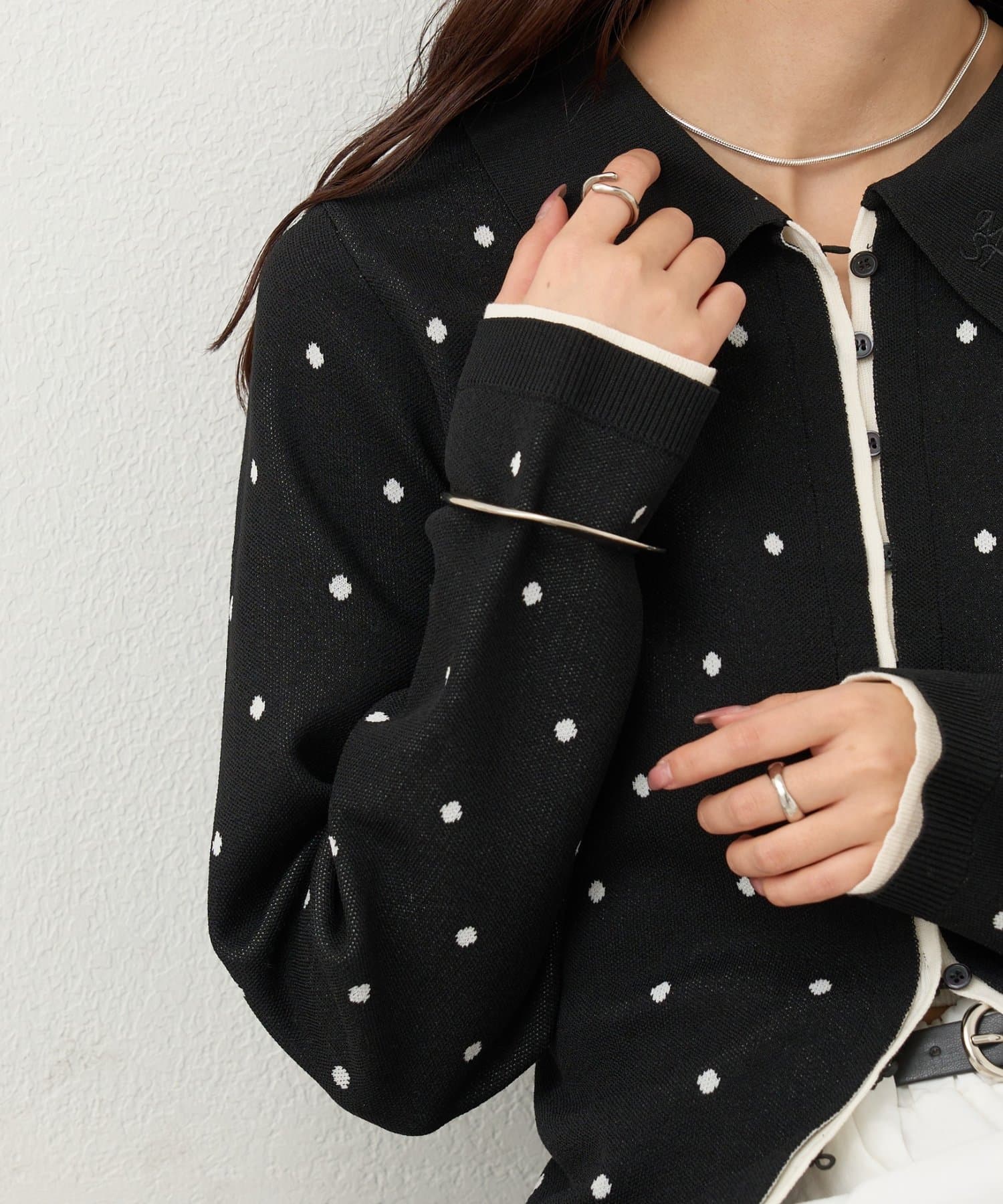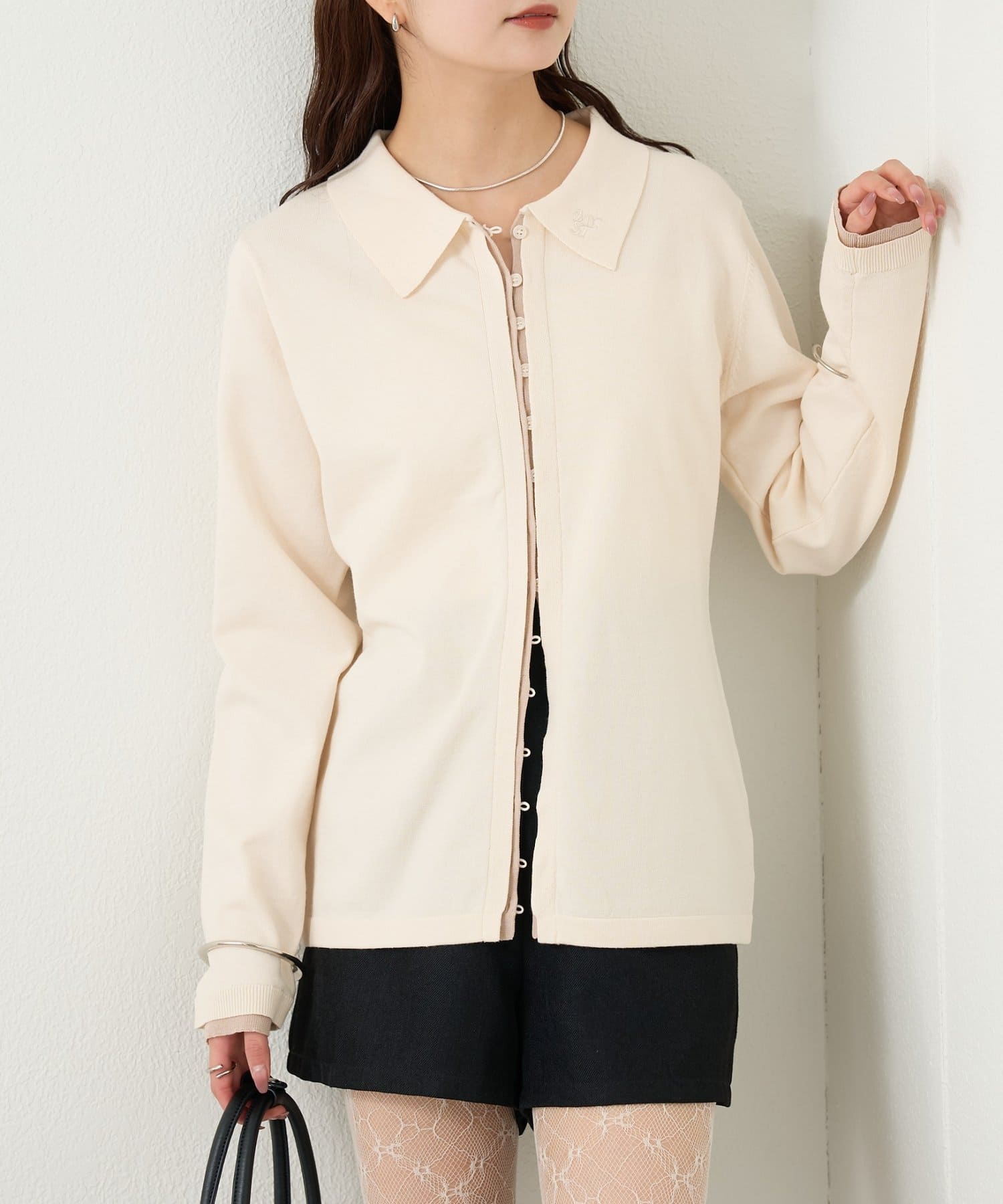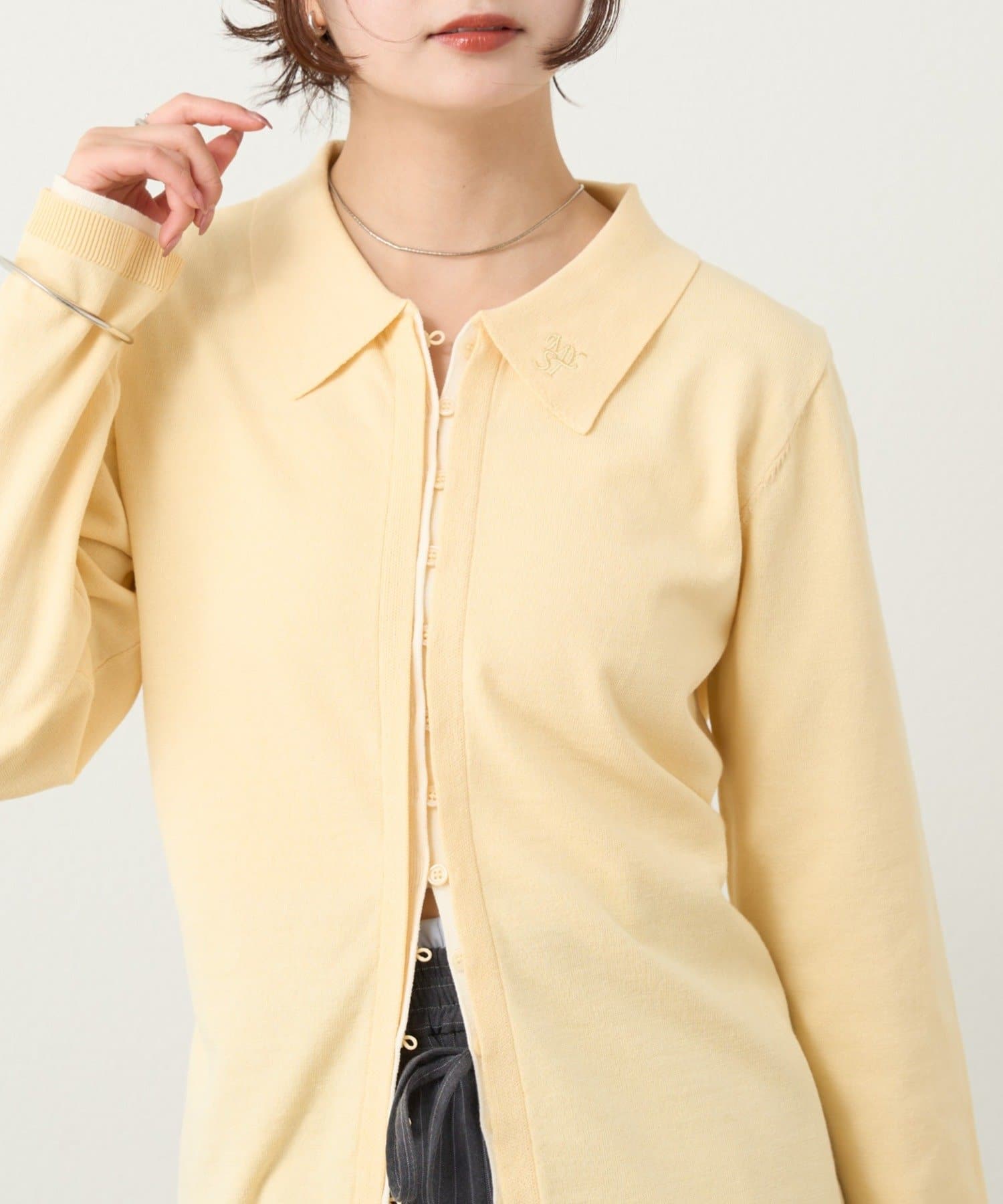 ・襟付きデザインが上品な印象を演出してくれる長袖ポロニット。