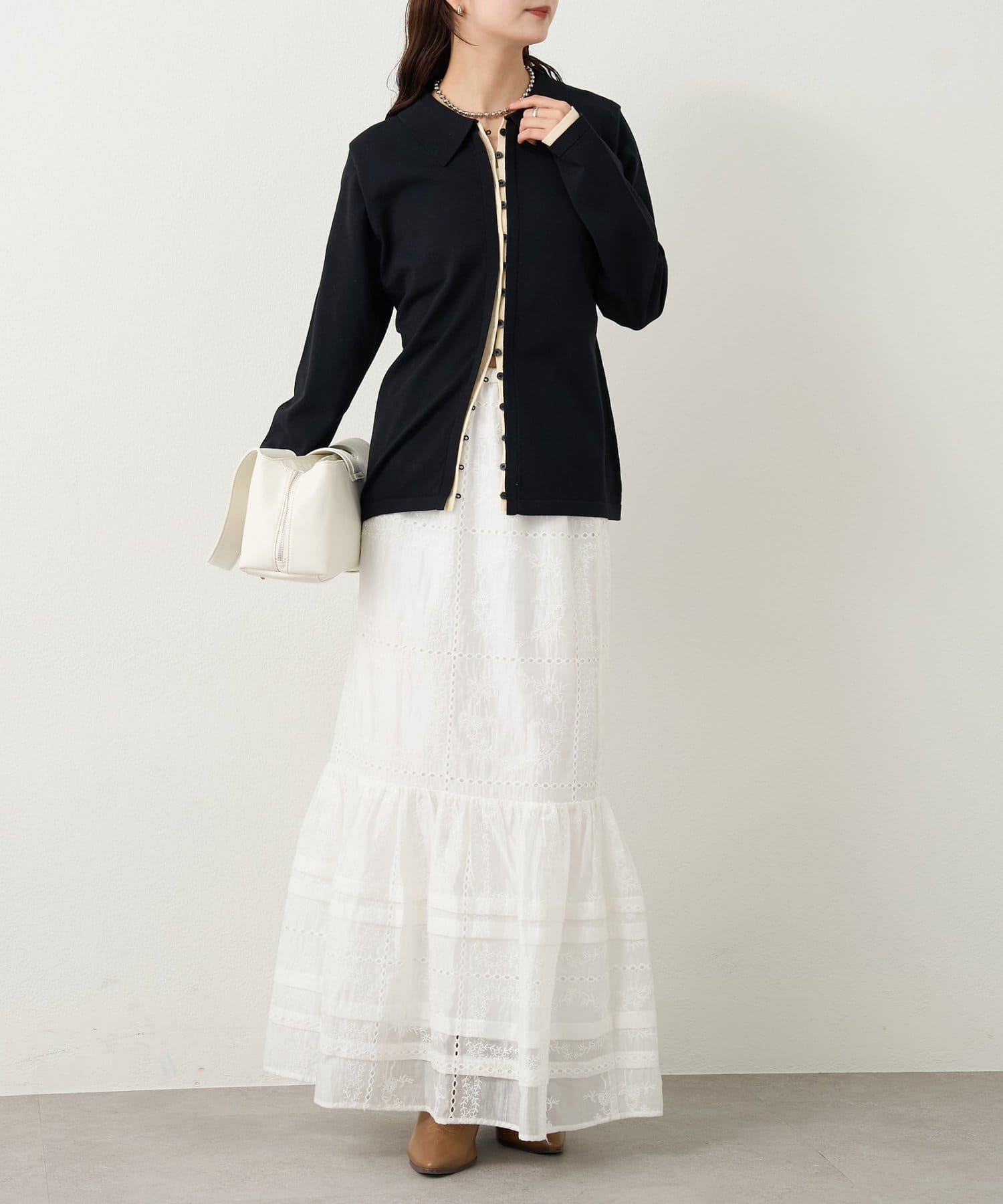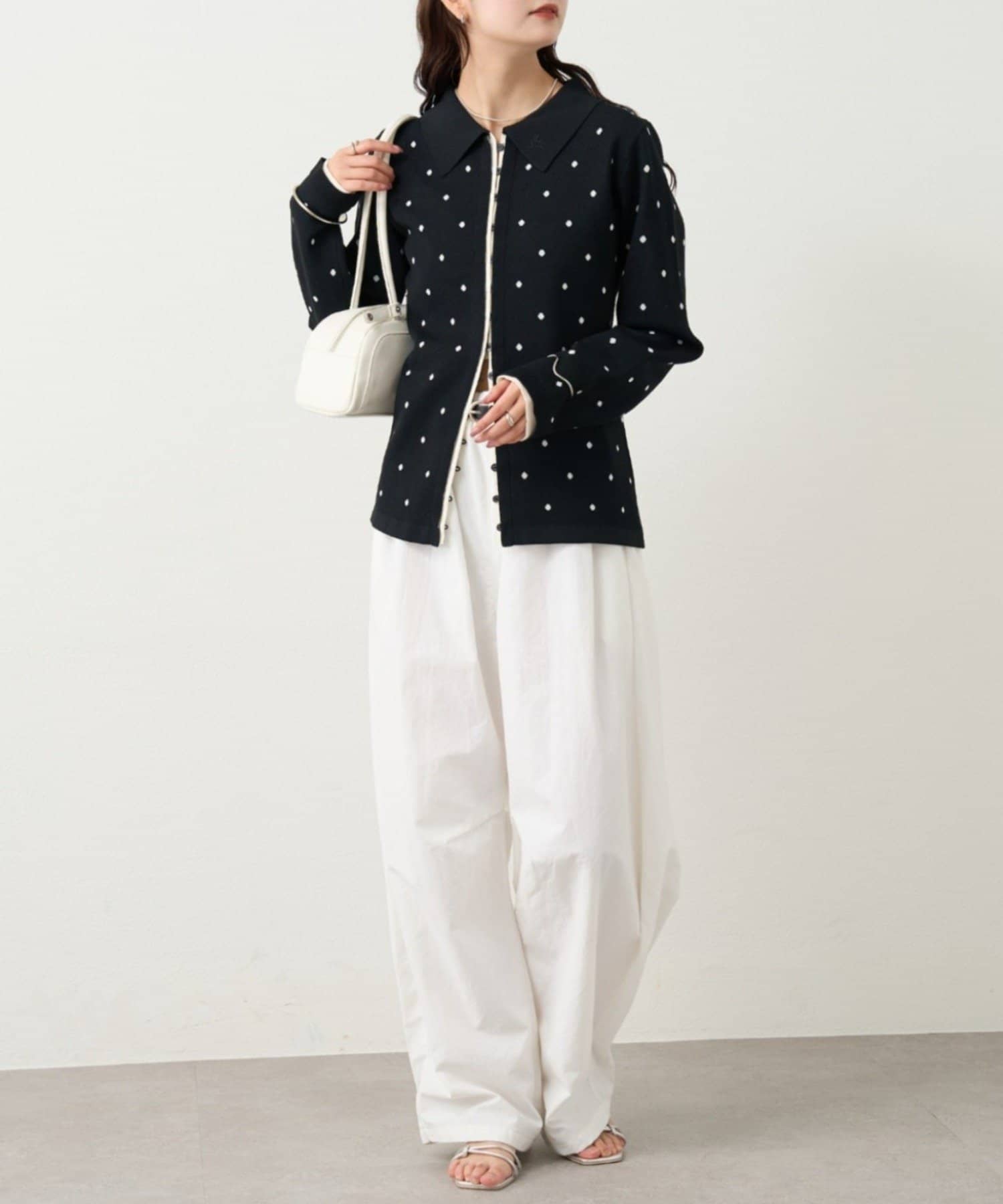 ・ボタンの開け具合で雰囲気を変えられるので、抜け感のある着こなしも楽しめます。
