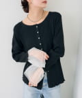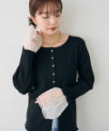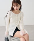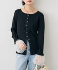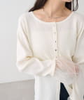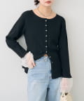 • mystic(ミスティック) 袖チュール付きリブカーディガン