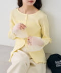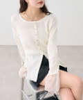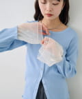袖チュール付きリブカーディガン