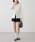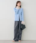 ・フロントボタンの下部分を少し開けて抜け感を出すスタイリングもおすすめです。