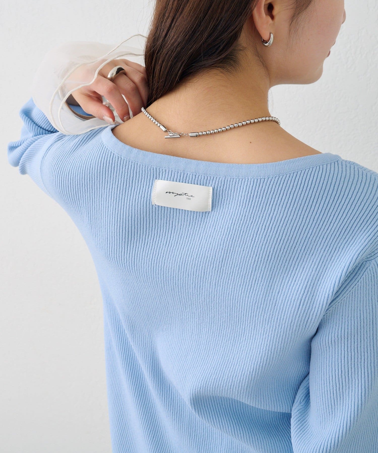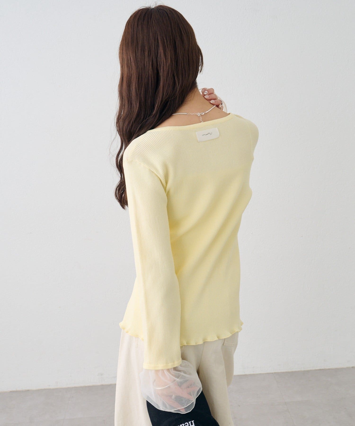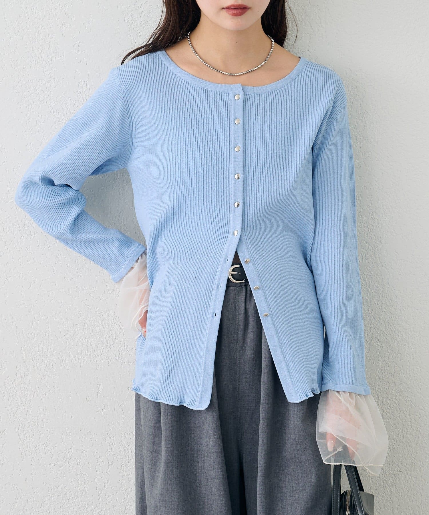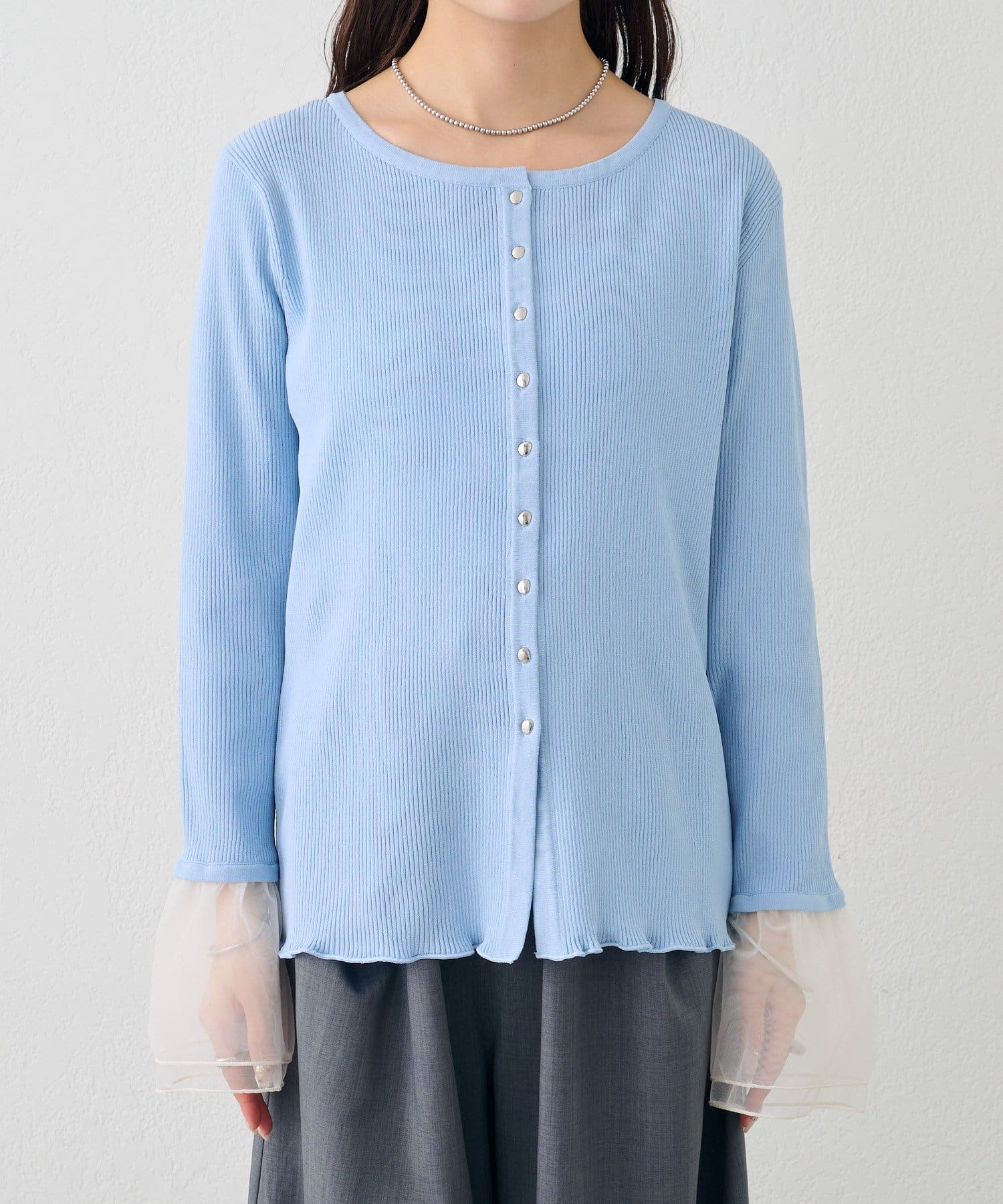 mystic(ミスティック) 袖チュール付きリブカーディガン