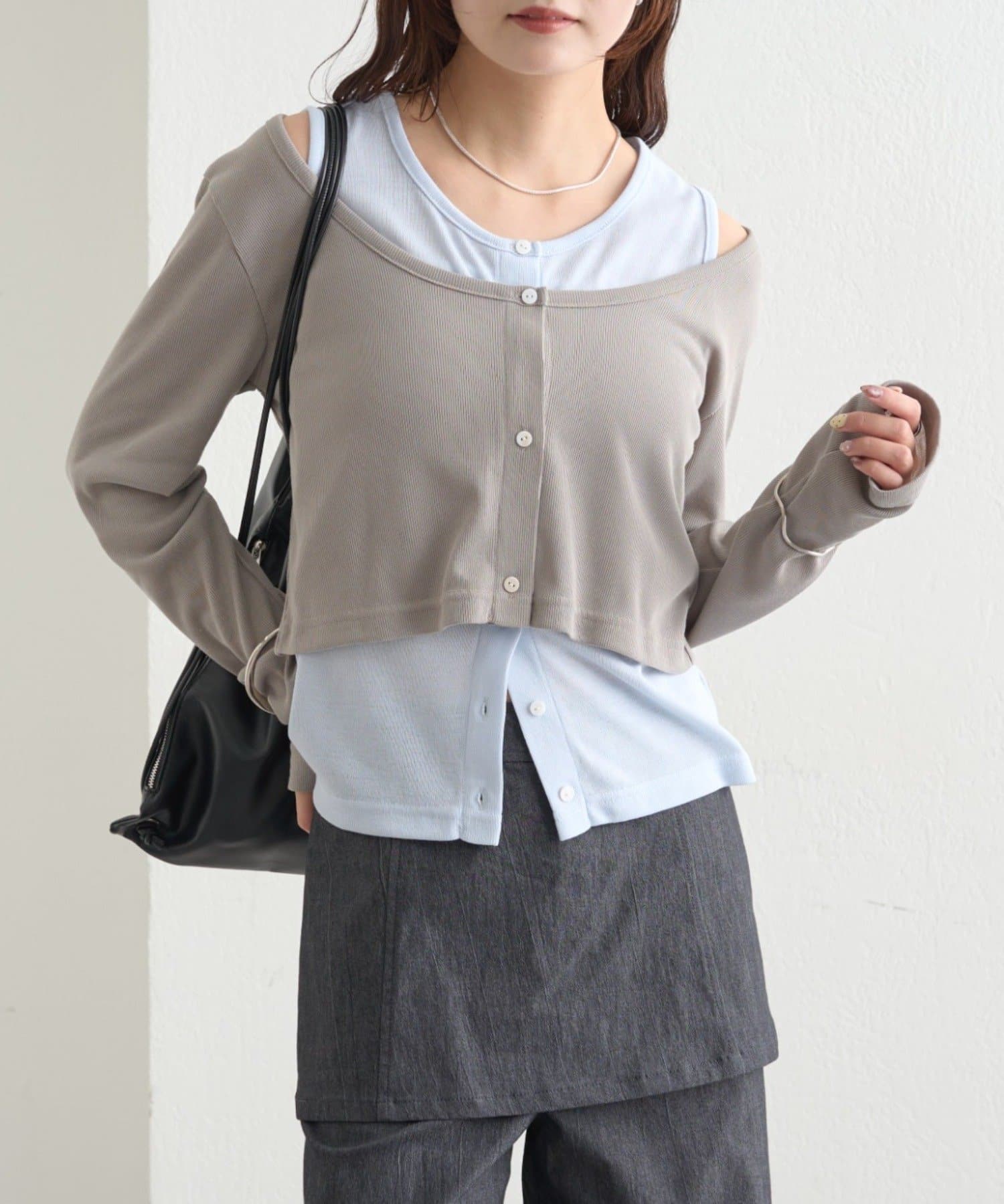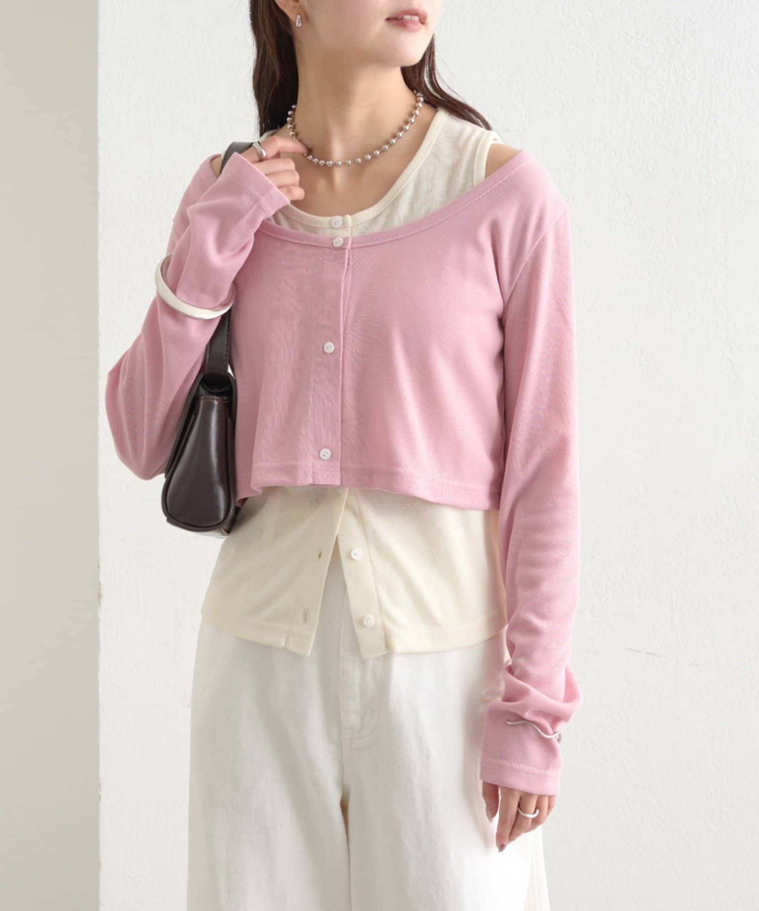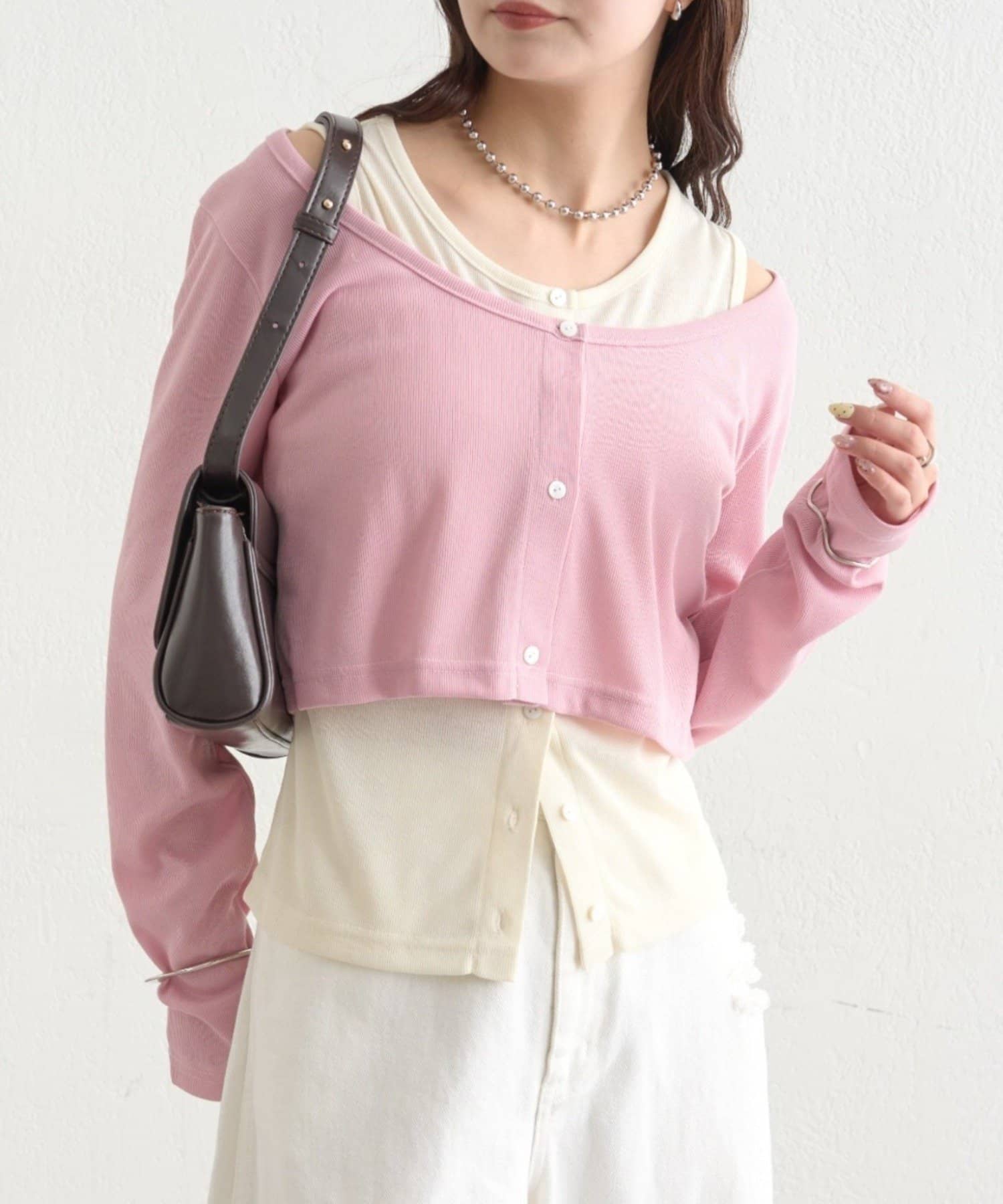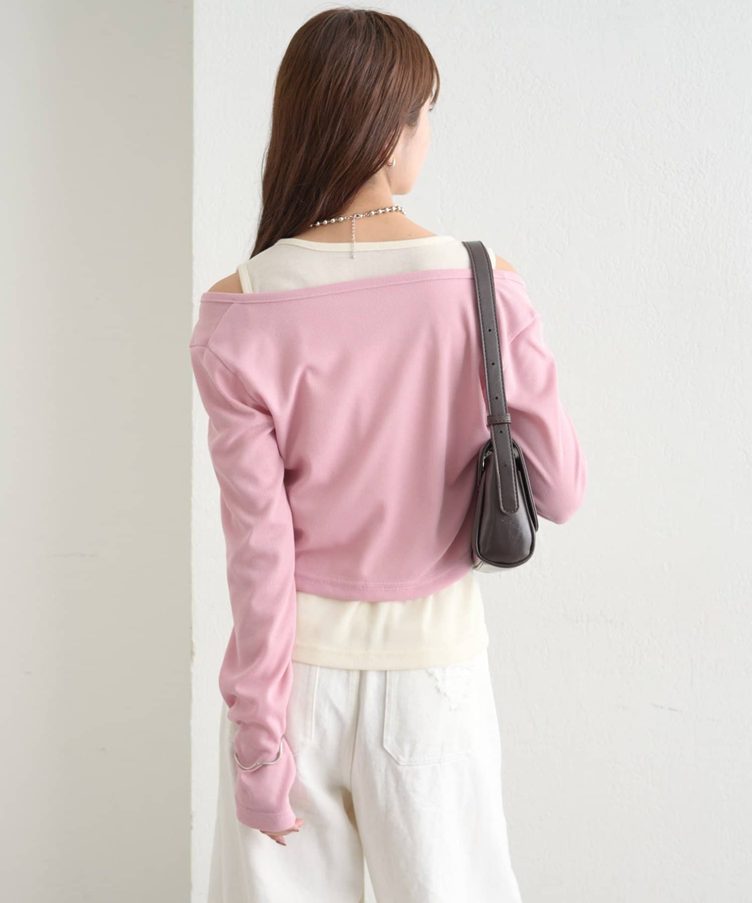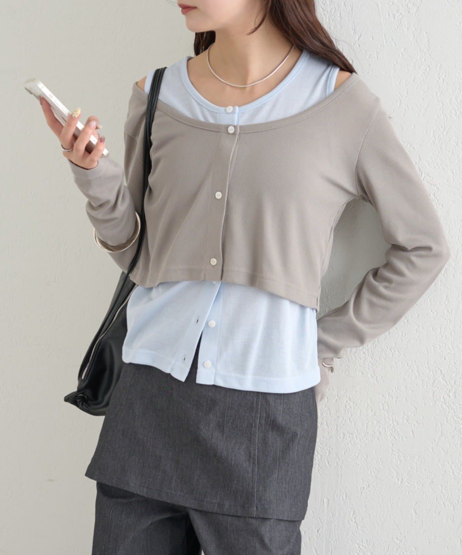 ・配色のインナーを合わせたレイヤードトップスで、簡単にこなれ感を演出してくれます。