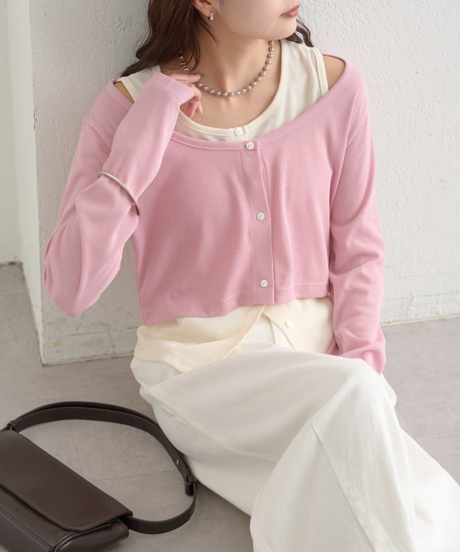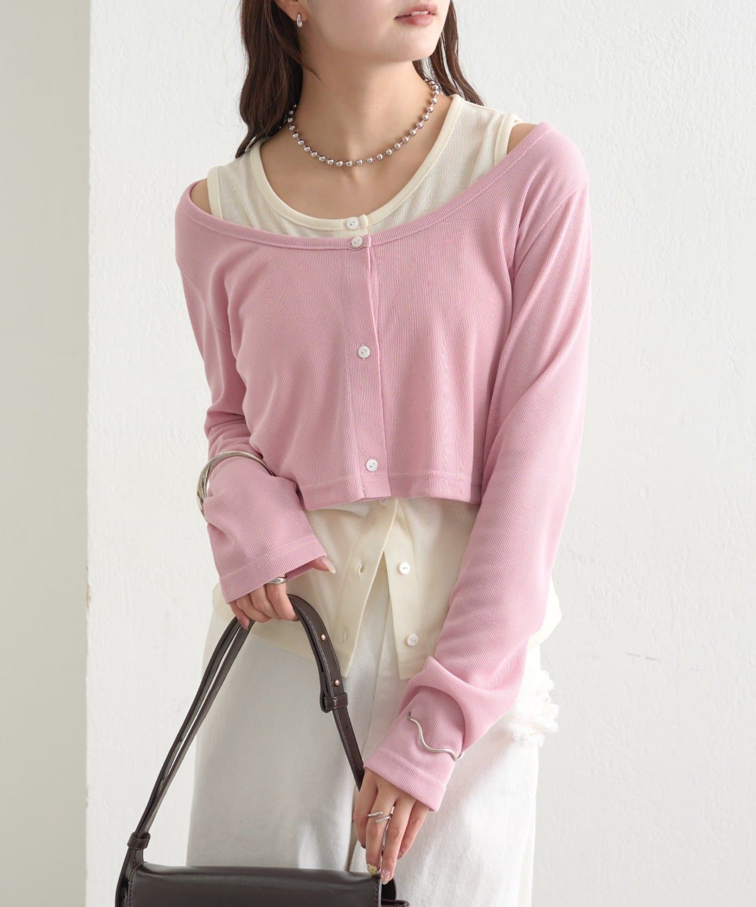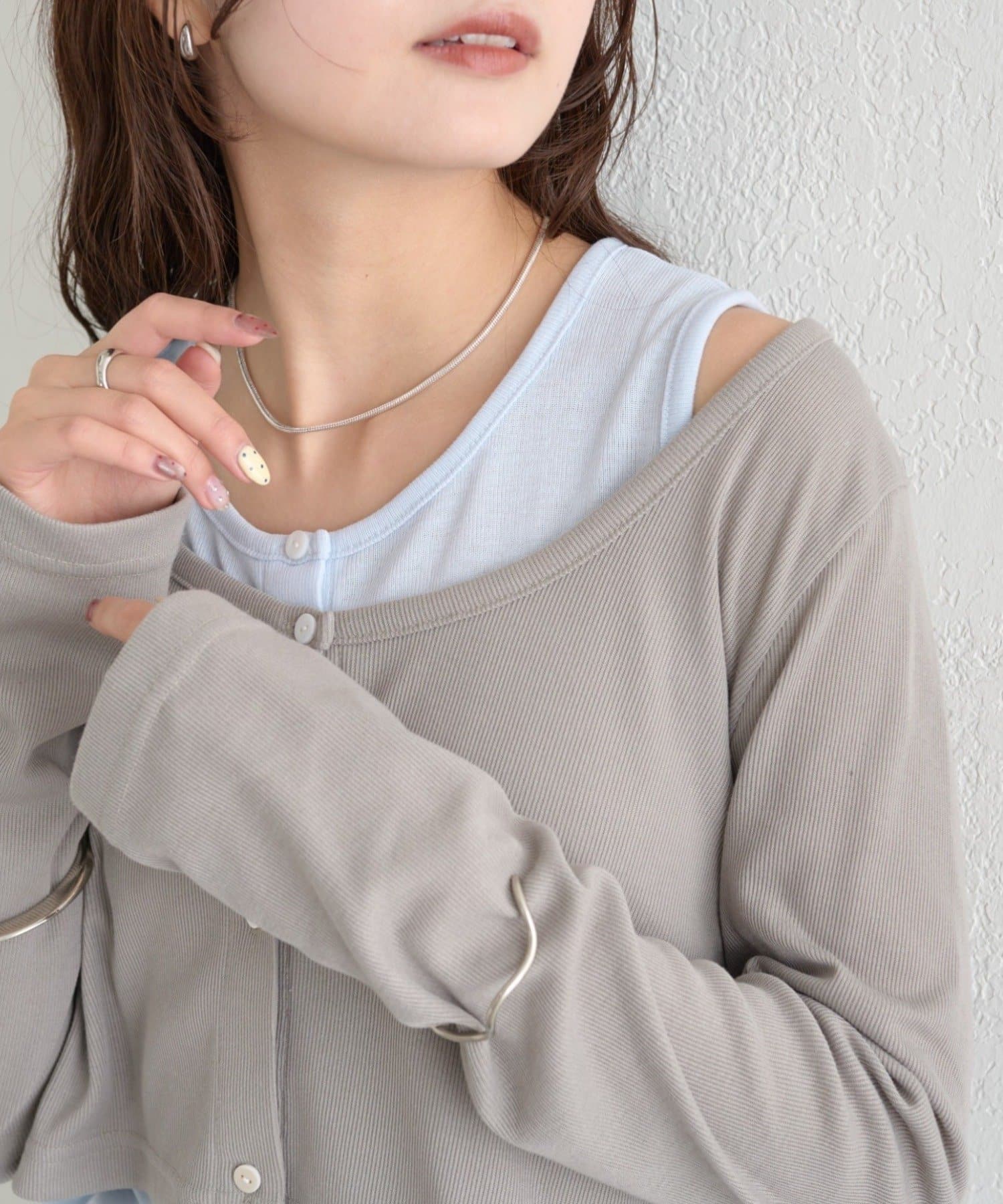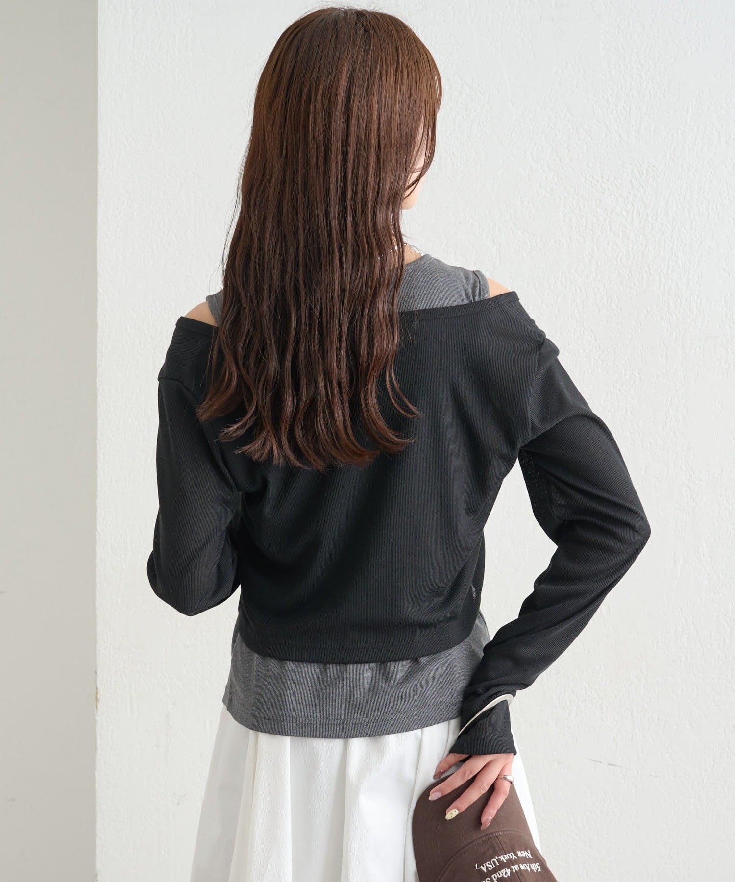 ・配色のインナーを合わせたレイヤードトップスで、簡単にこなれ感を演出してくれます。