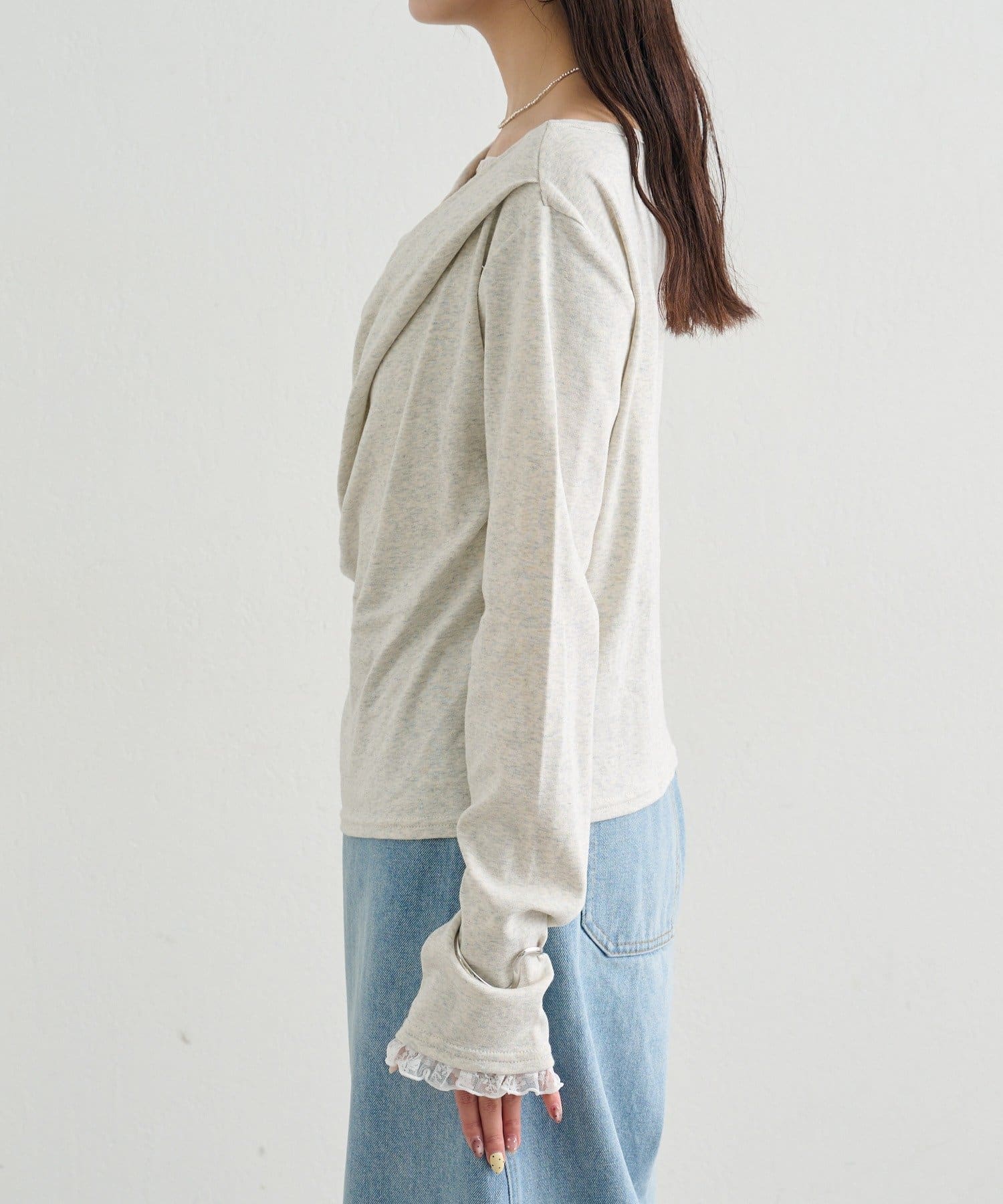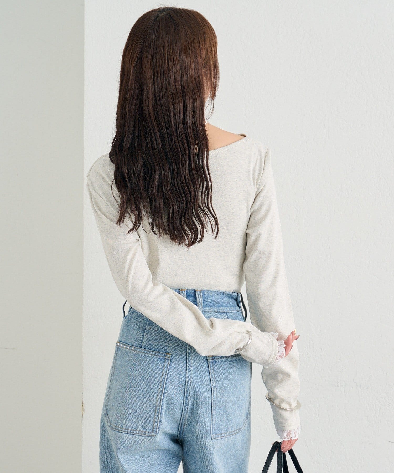 胸元と袖口にレースをドッキングしているのですが、mysticらしい上品でカジュアルなレースなので安心です。