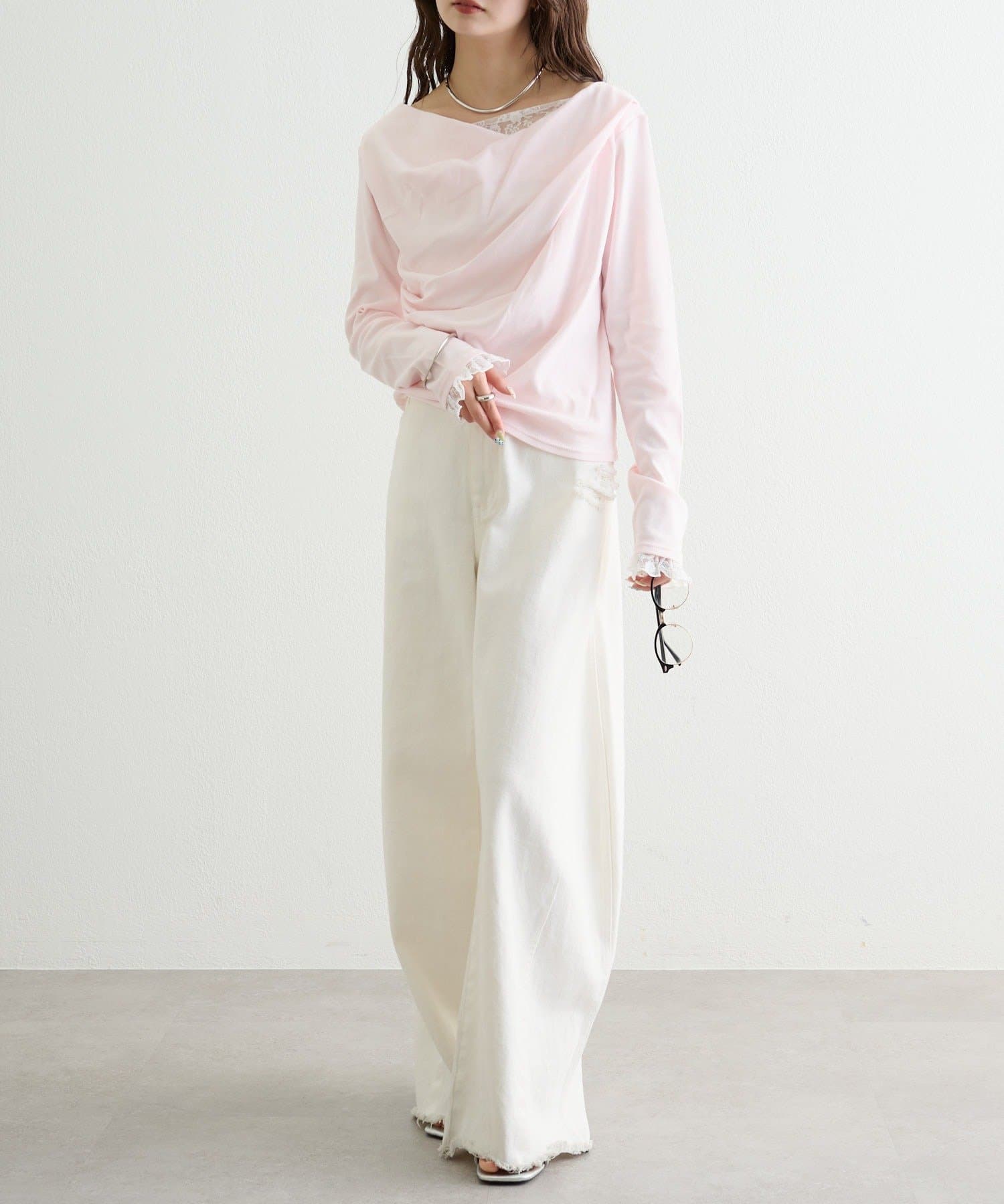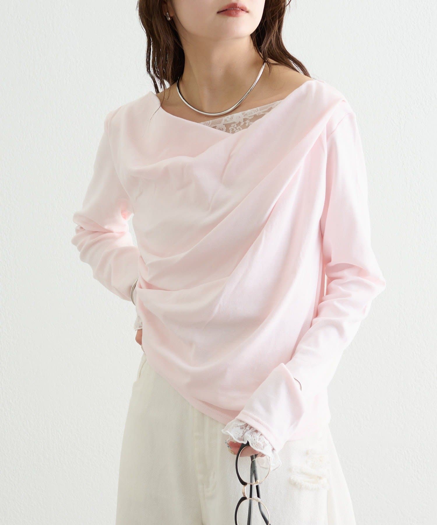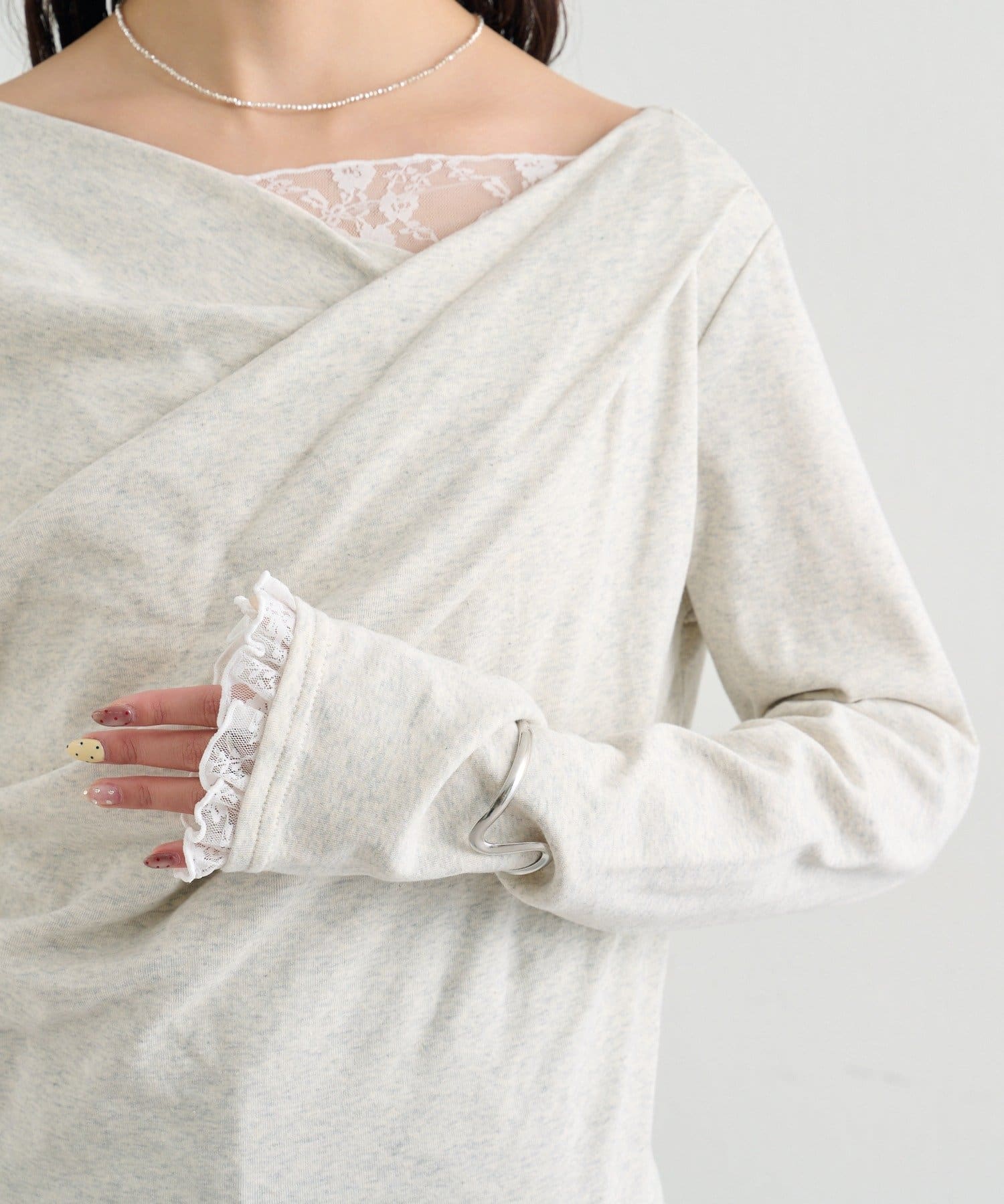 A.ロングセラーのオフショルロンTをバージョンアップして、今年はレースがドッキングされた仕様となり、より1枚で決まるデザインになりました!