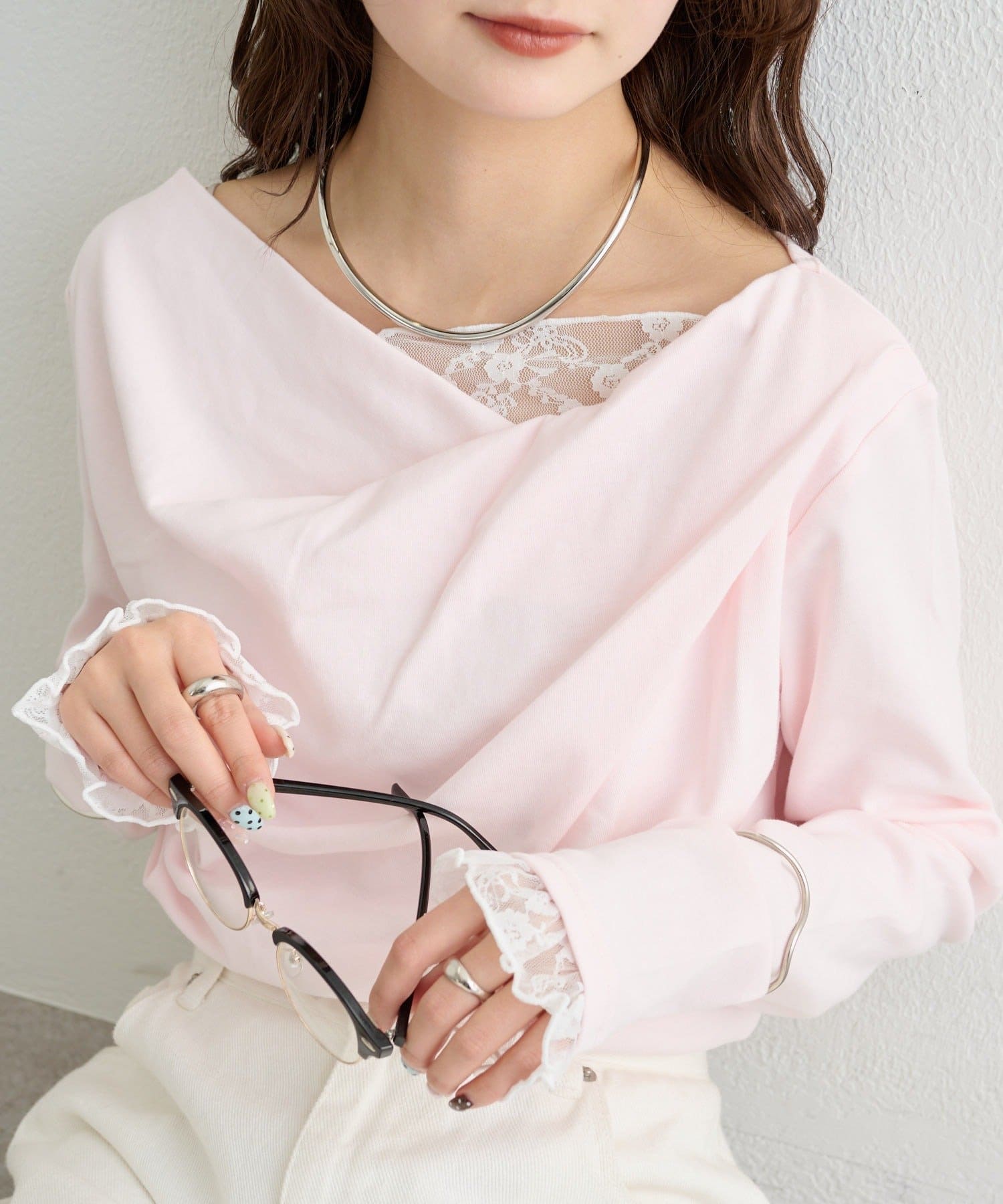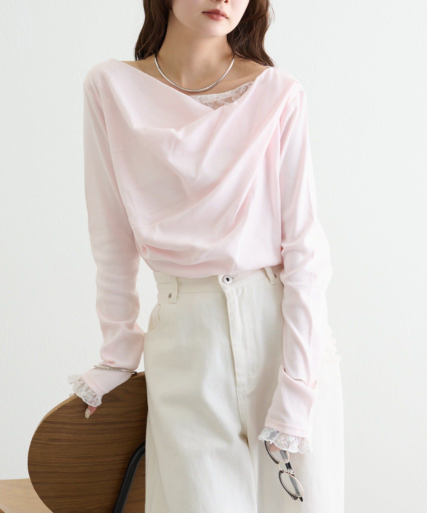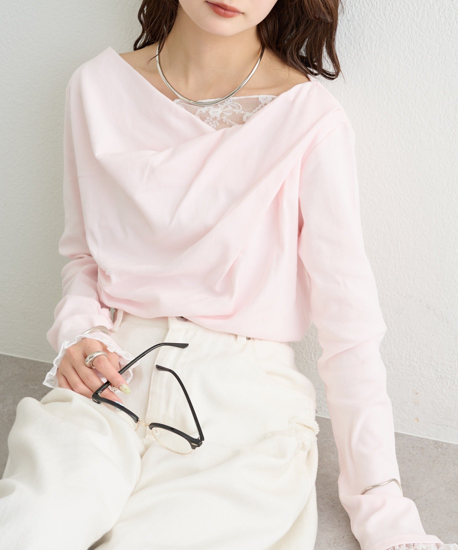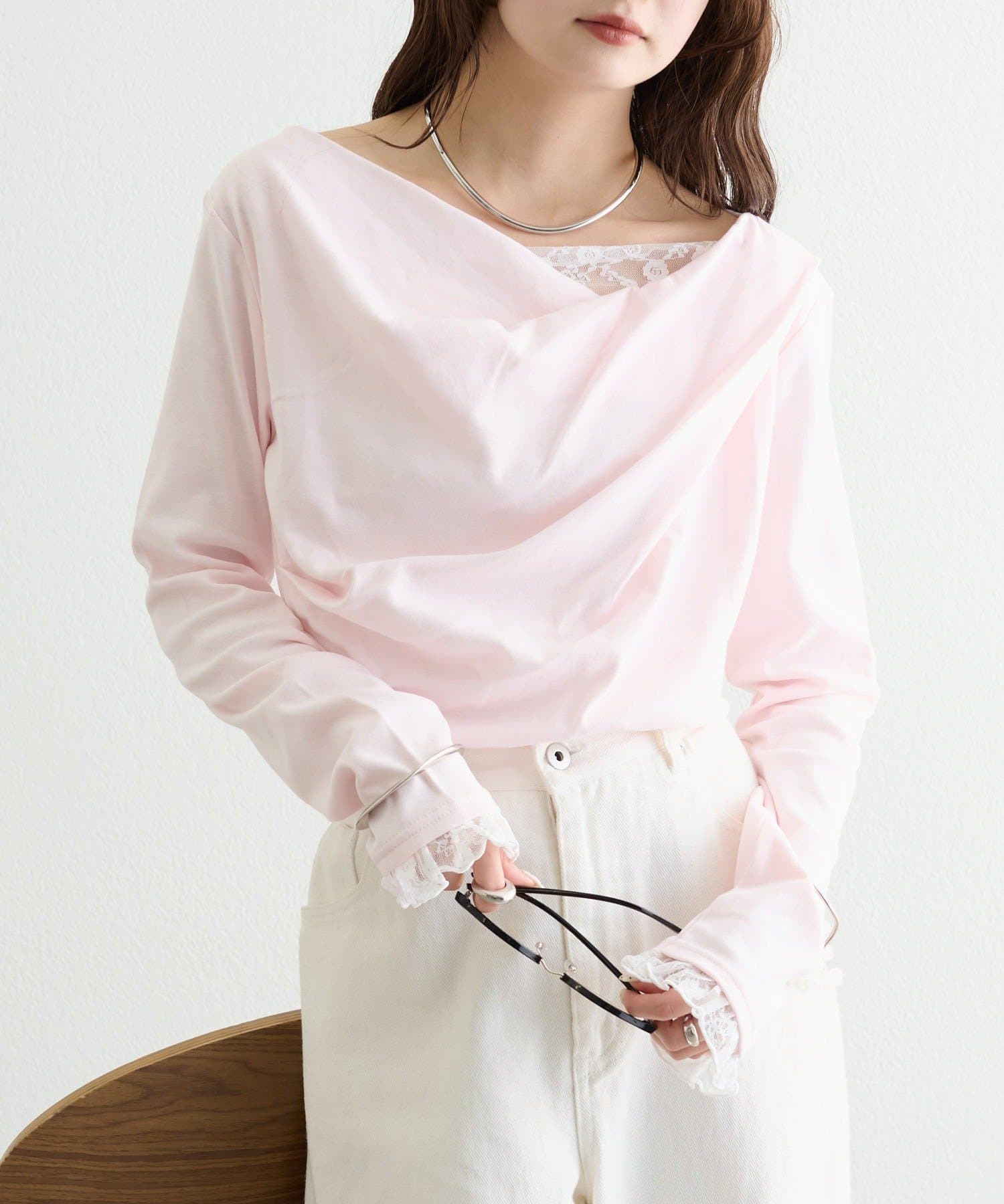 ・ジャケットやカーディガンのインナーに合わせれば、首元のレースがアクセントになります。