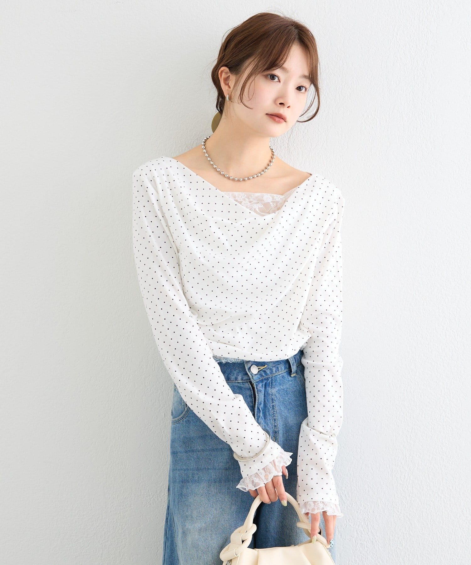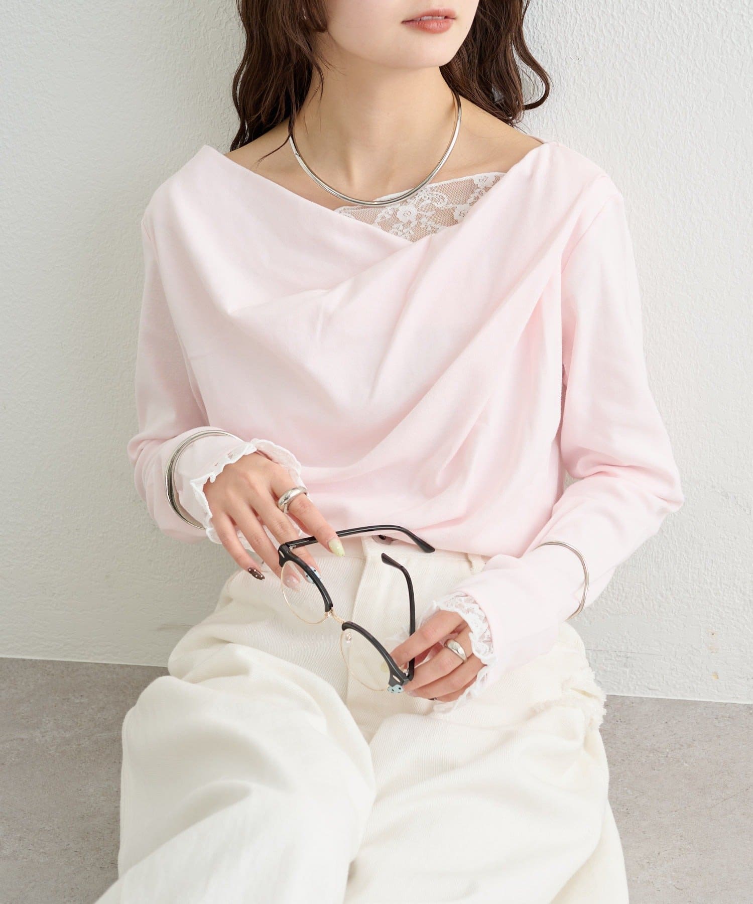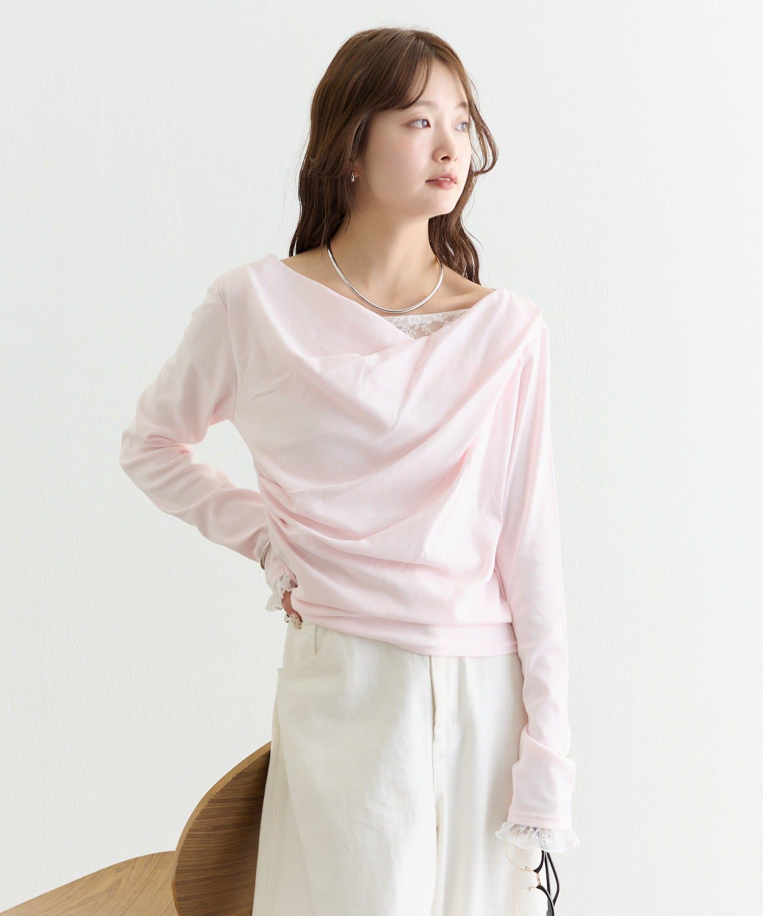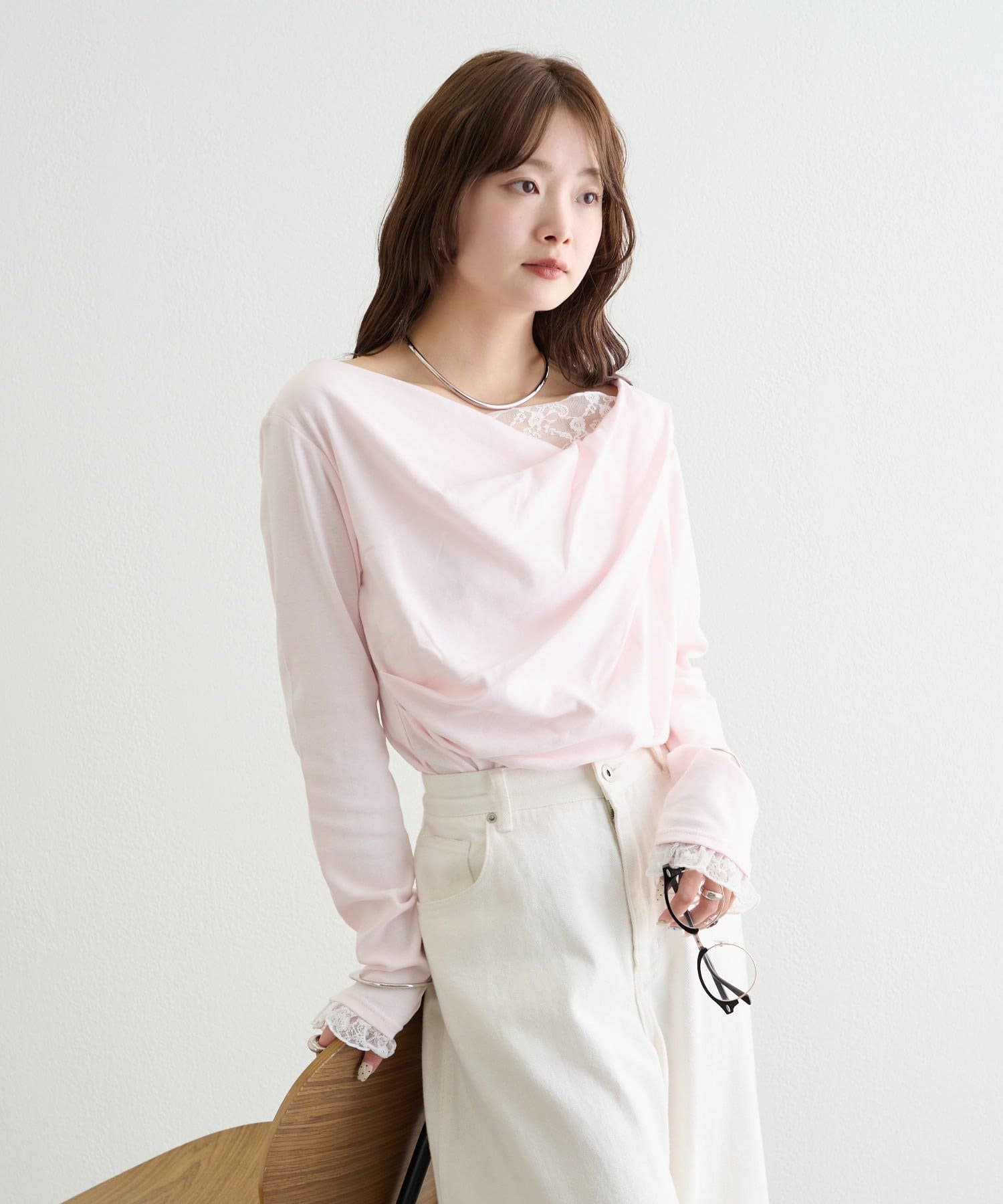 ・ジャケットやカーディガンのインナーに合わせれば、首元のレースがアクセントになります。