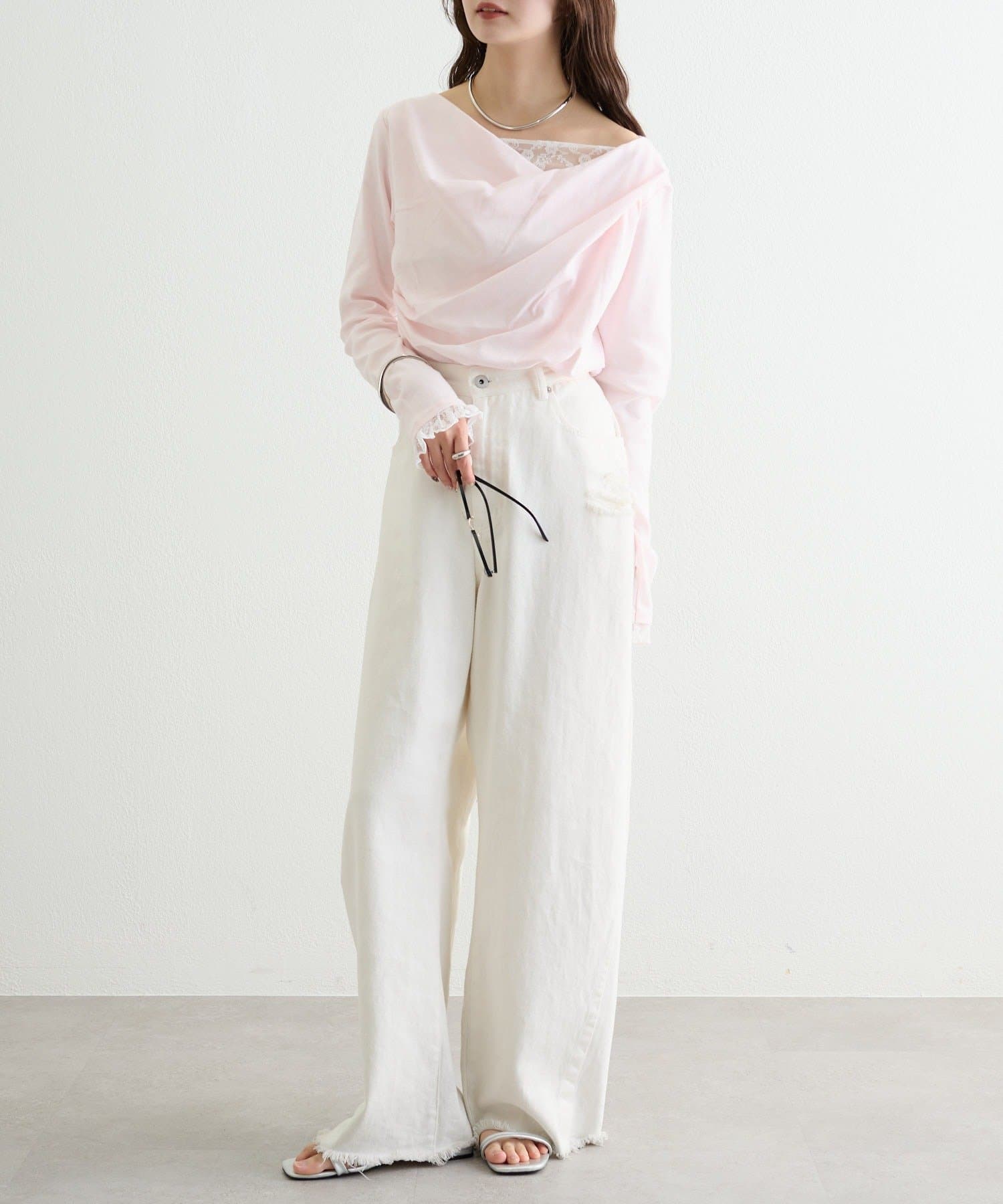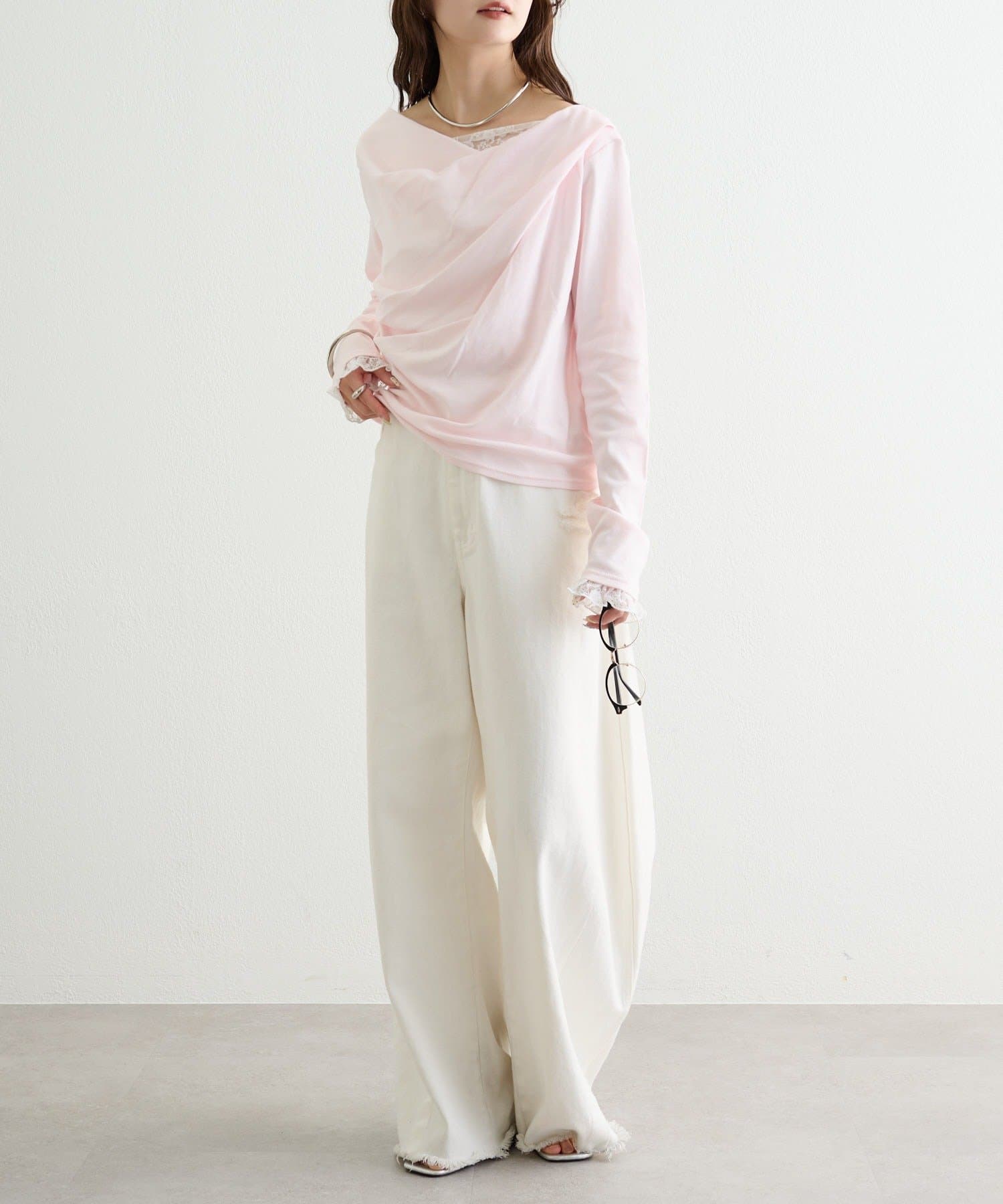 ・スラックスやスカートと合わせて、レースの甘さを引き立てた大人フェミニンなスタイルに。