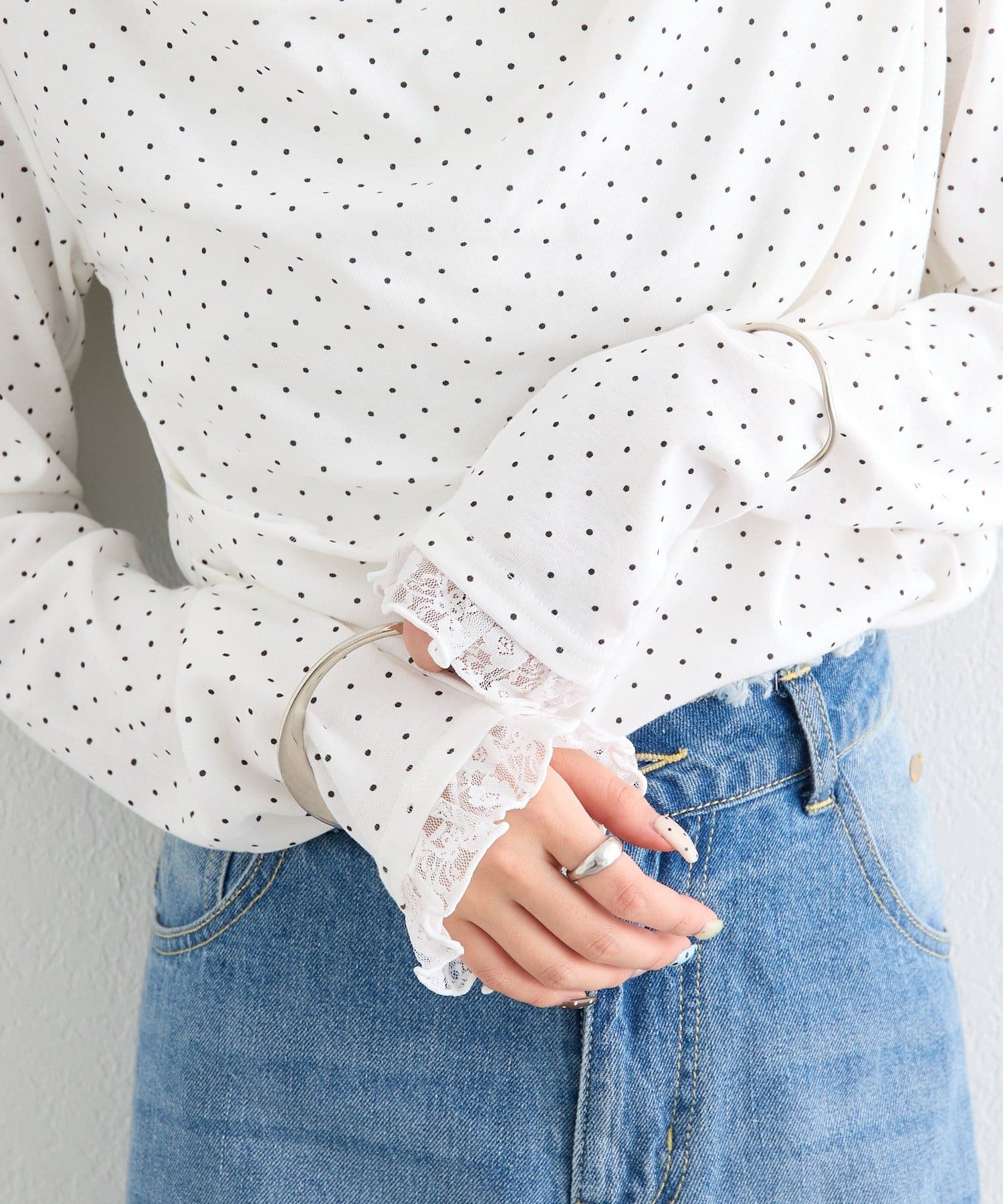 ・袖口にもレースが施されており、手元に動きと柔らかさをプラス。