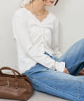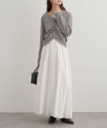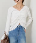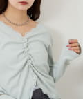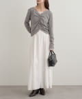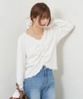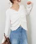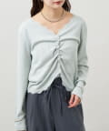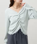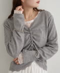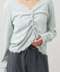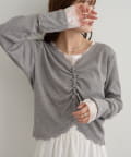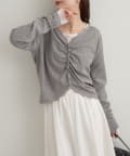 ・フロントのギャザーデザインが魅力のリブカーディガン。