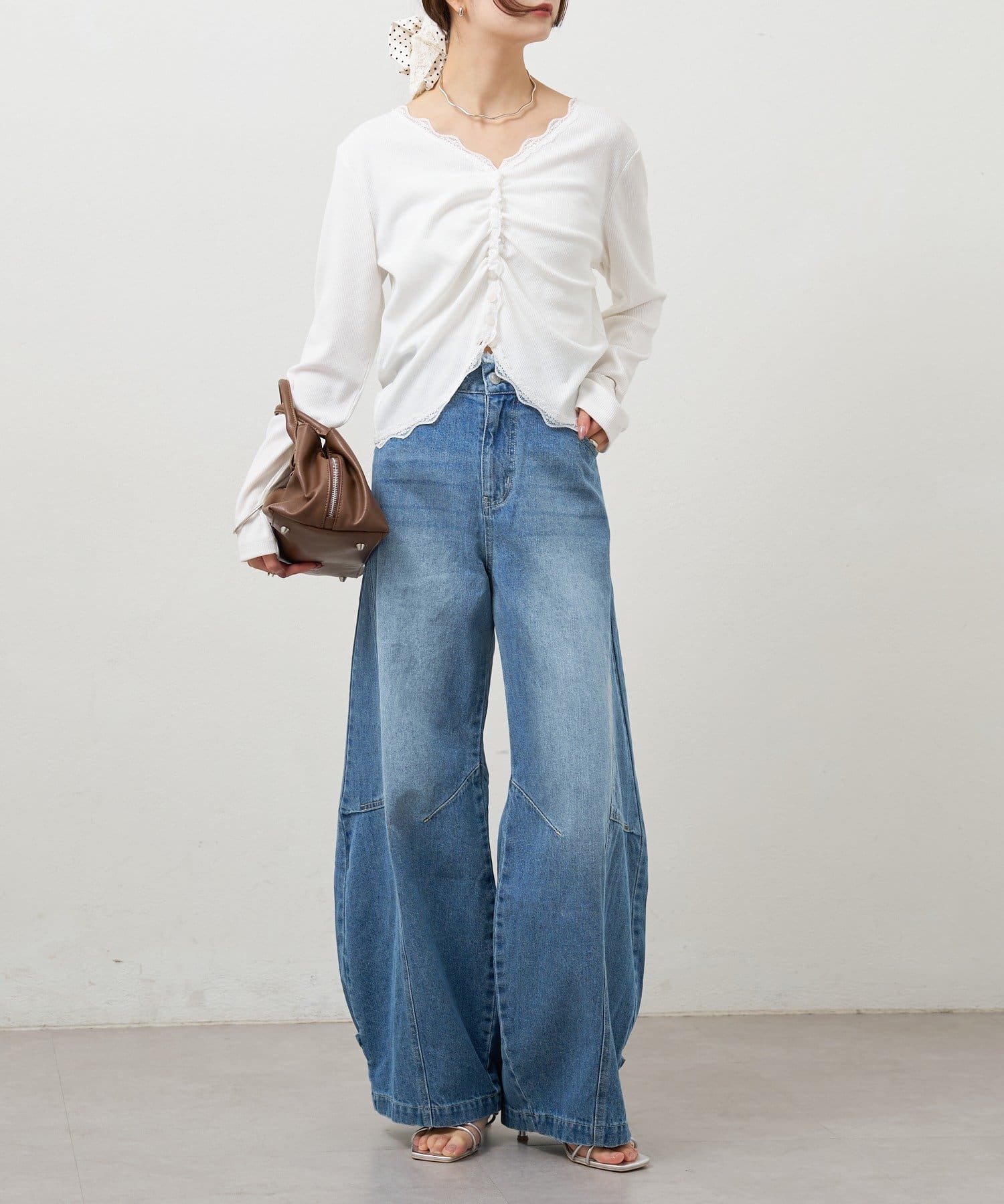 mystic(ミスティック) ギャザーレースリブカーディガン