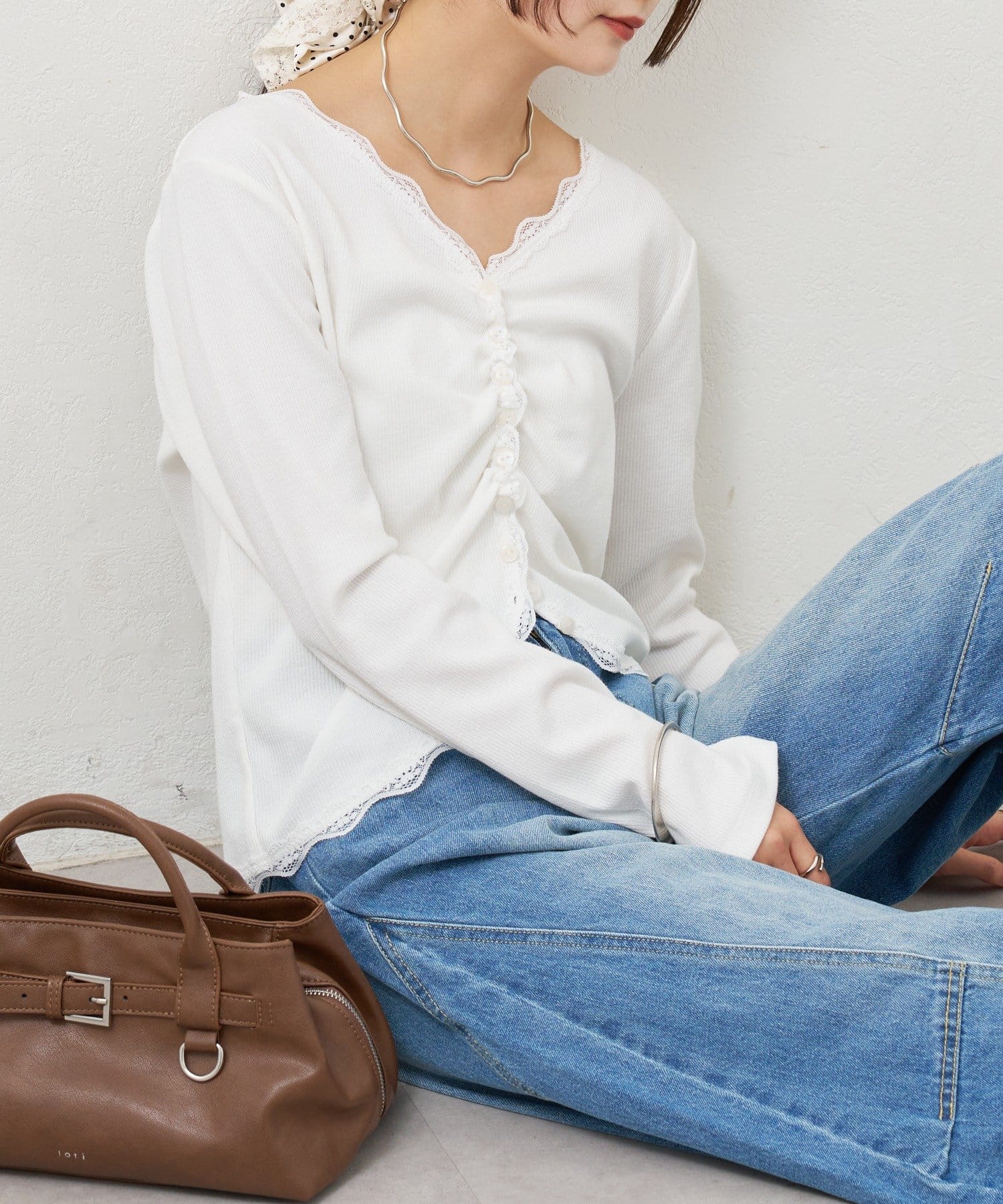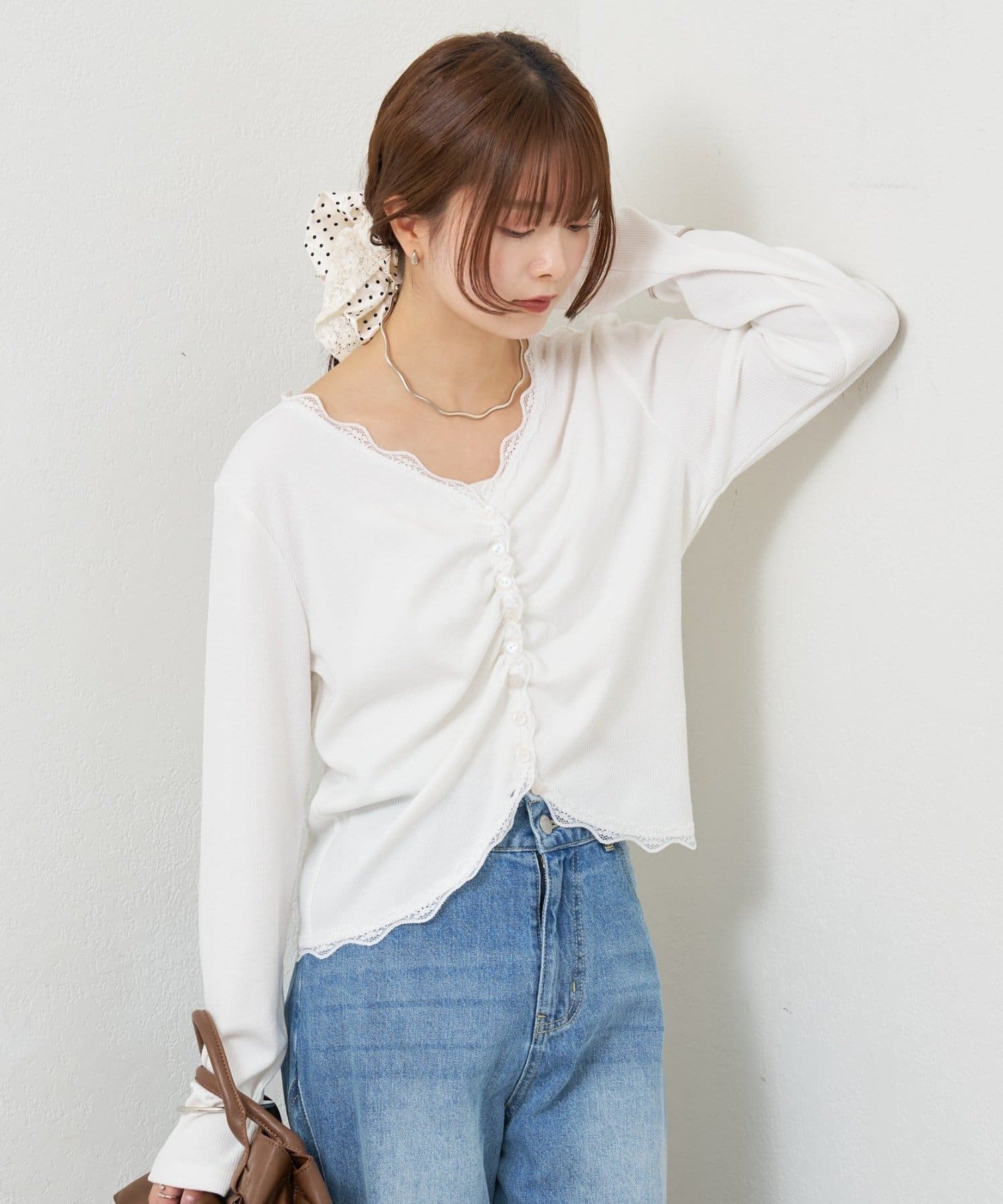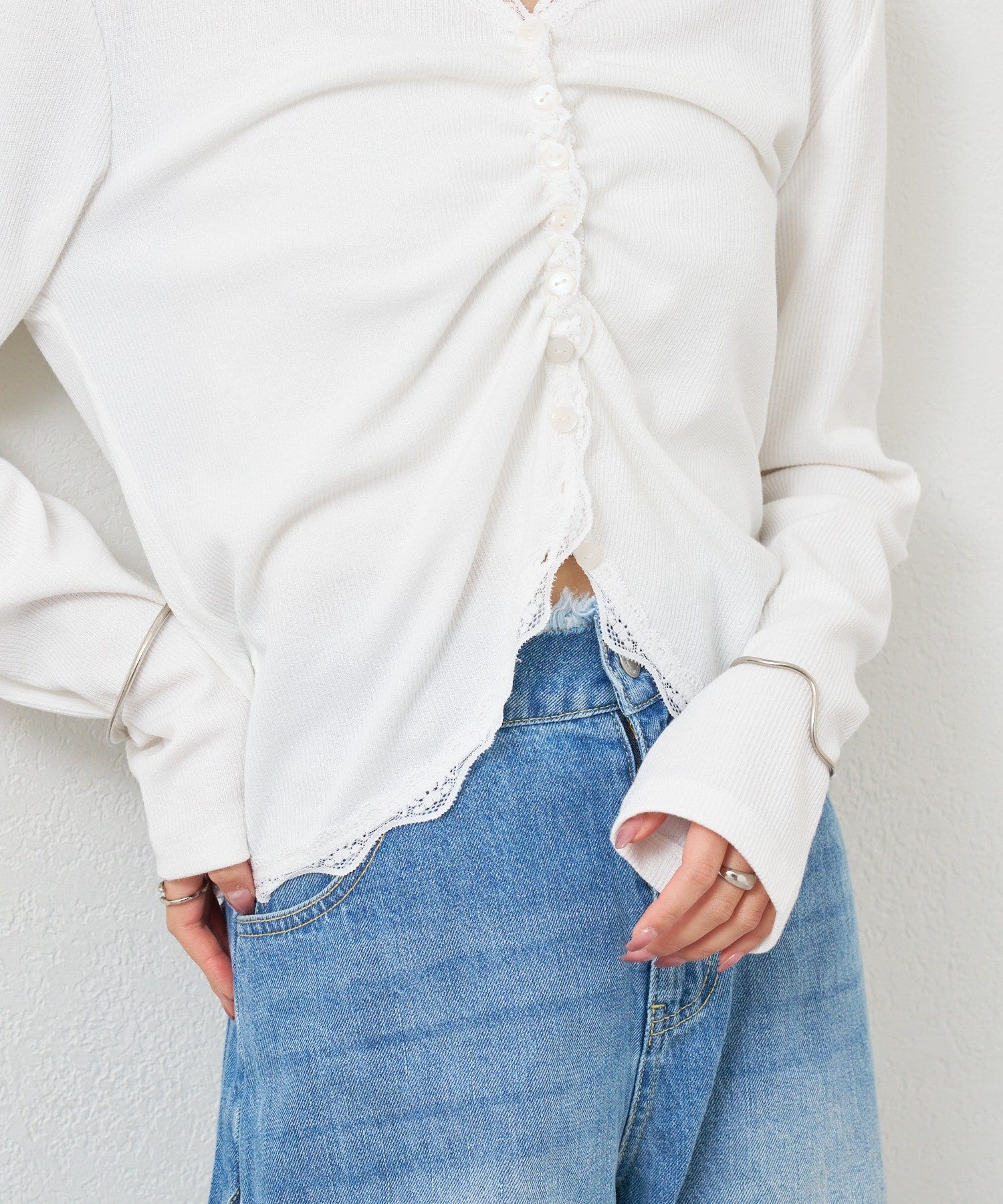 TOP > mystic > レディース > トップス > Tシャツ/カットソー > ギャザーレースリブカーディガン