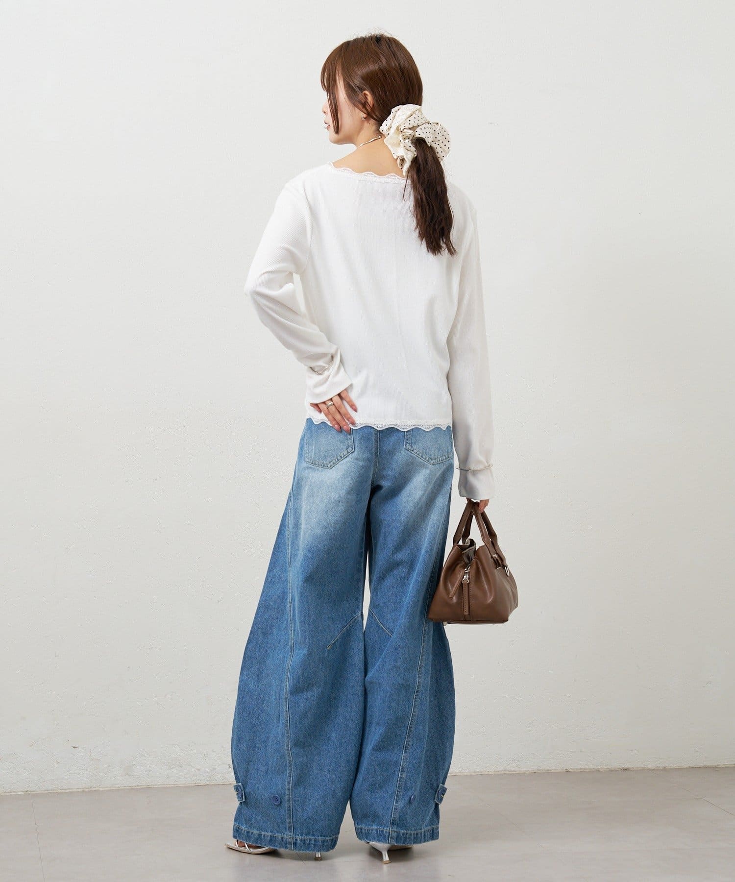 ・デニムと合わせて、甘さを抑えた大人カジュアルスタイルに。