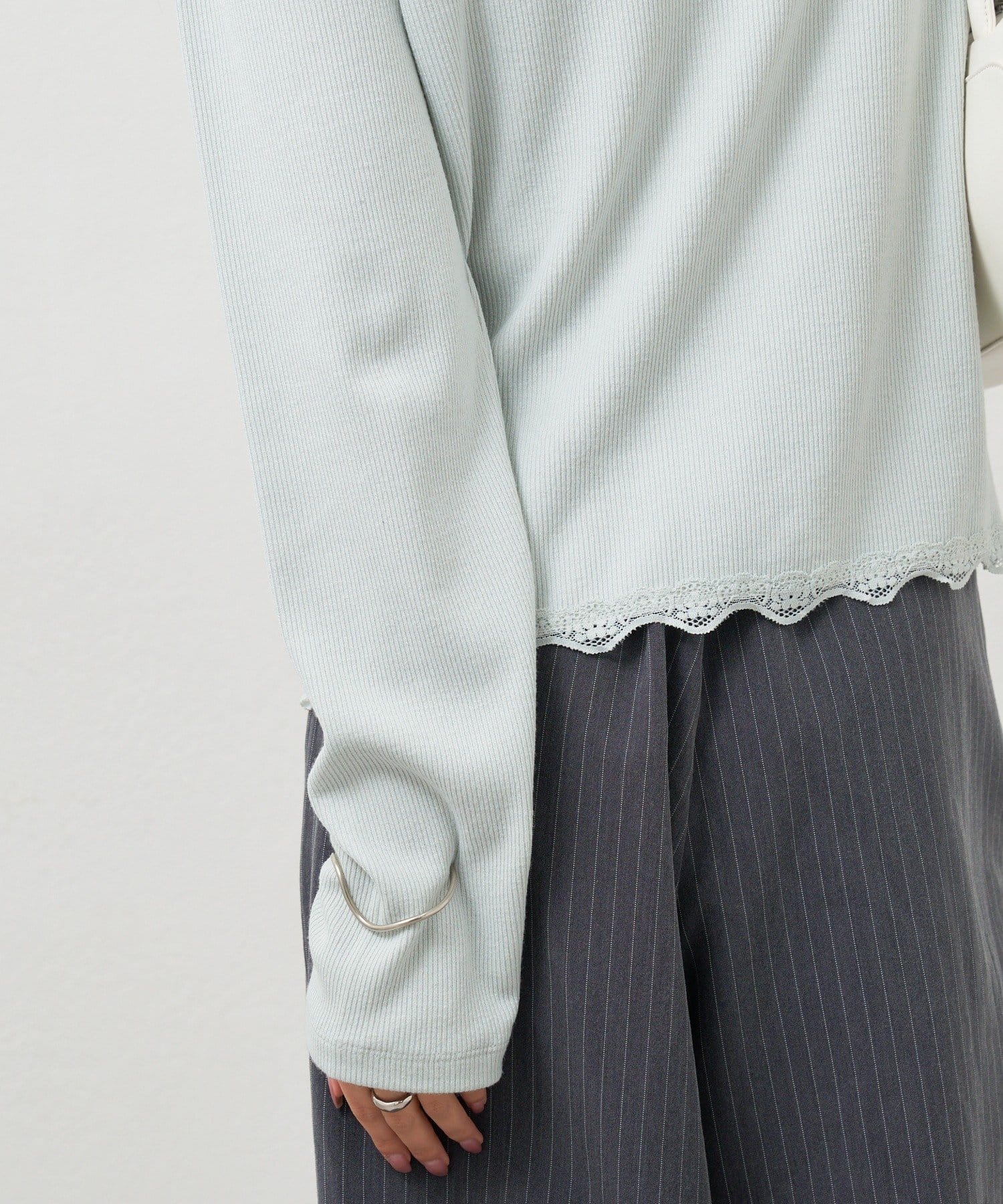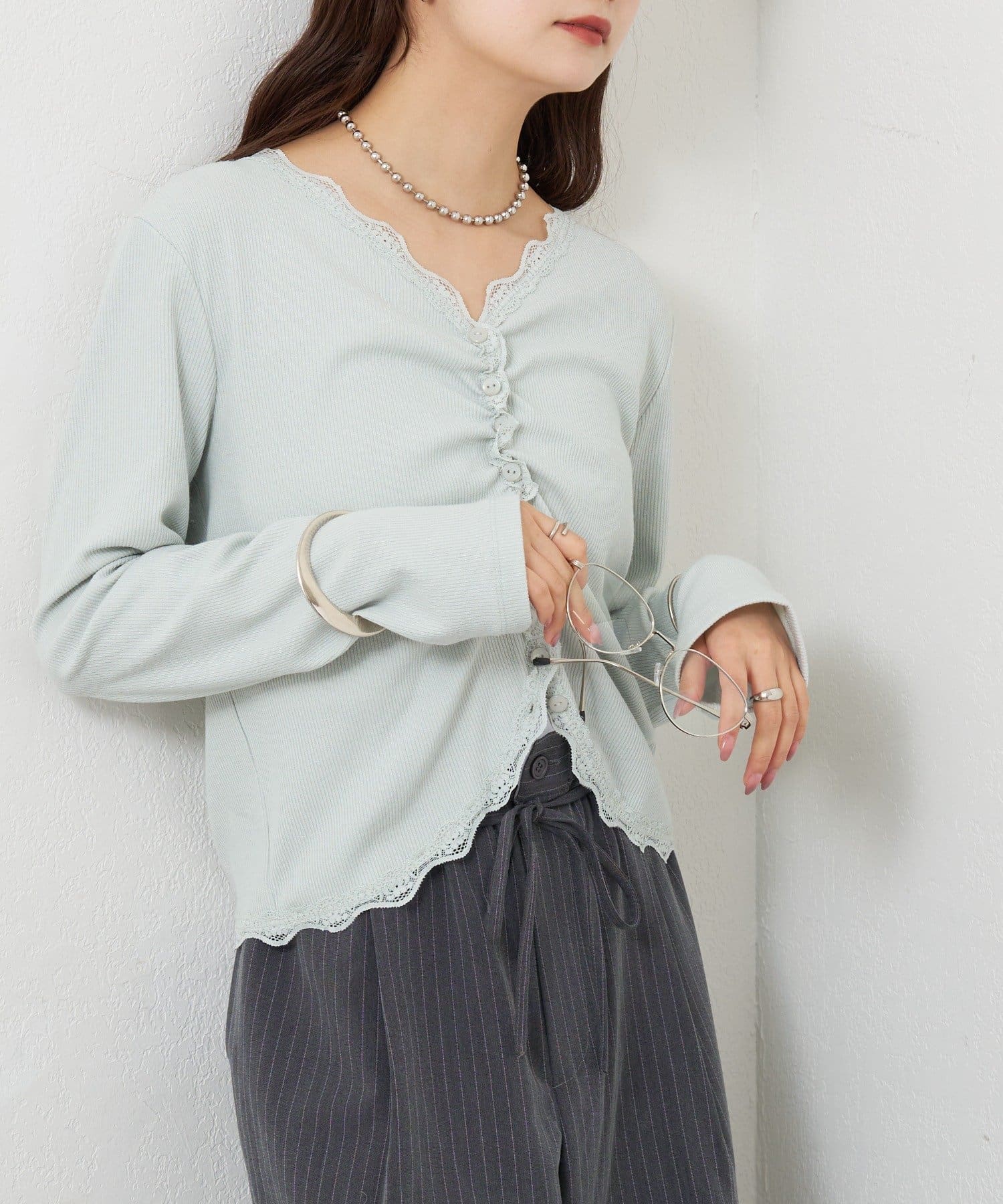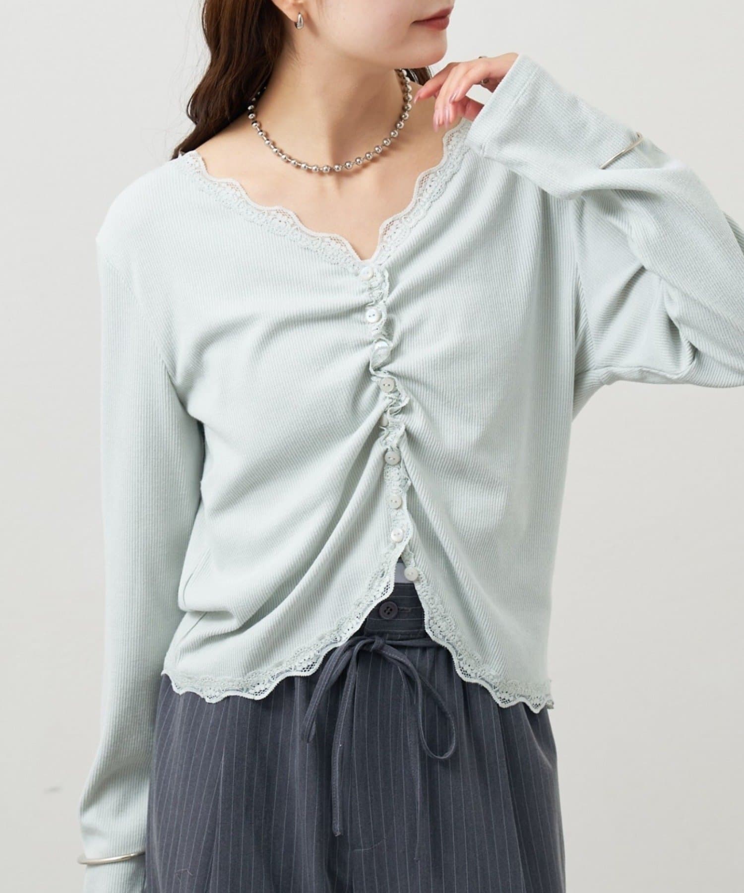• mystic(ミスティック) ギャザーレースリブカーディガン