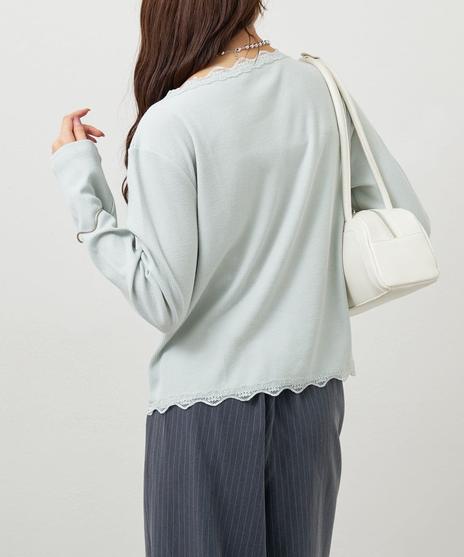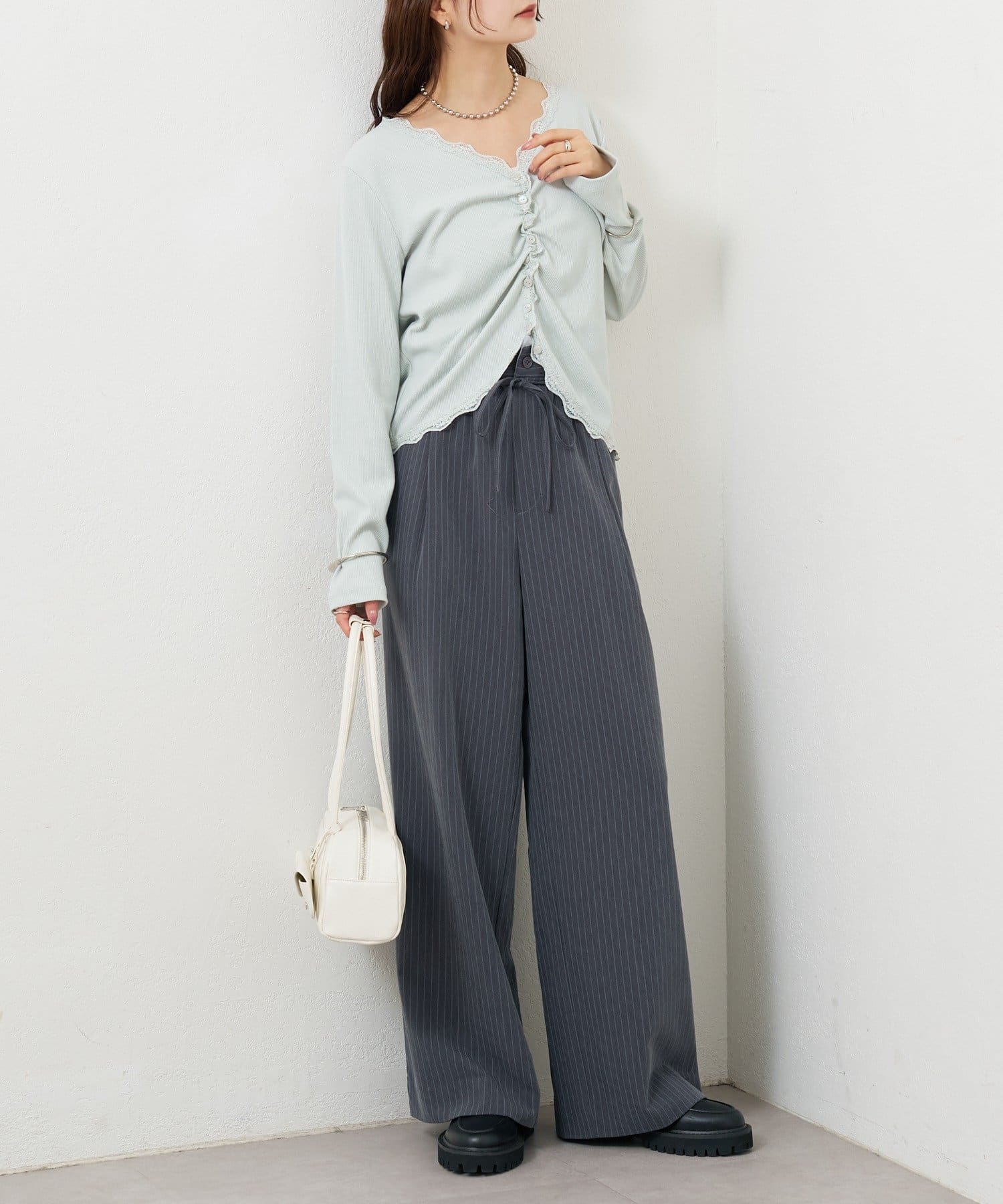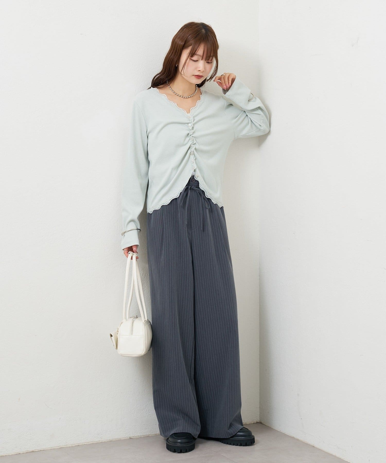 • mystic(ミスティック) ギャザーレースリブカーディガン