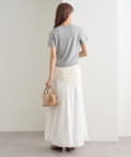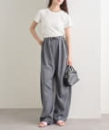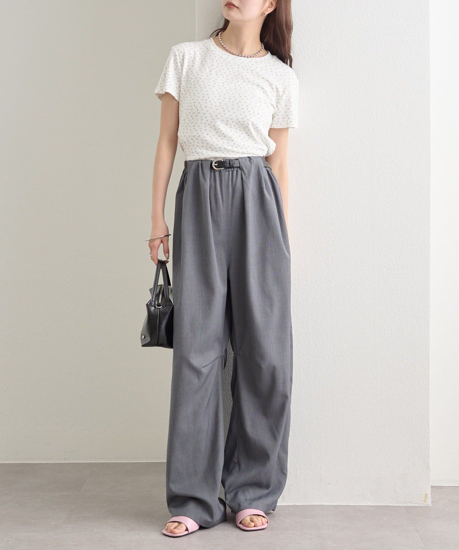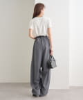 ・スラックスを合わせて、甘さを抑えた大人スタイルに。
