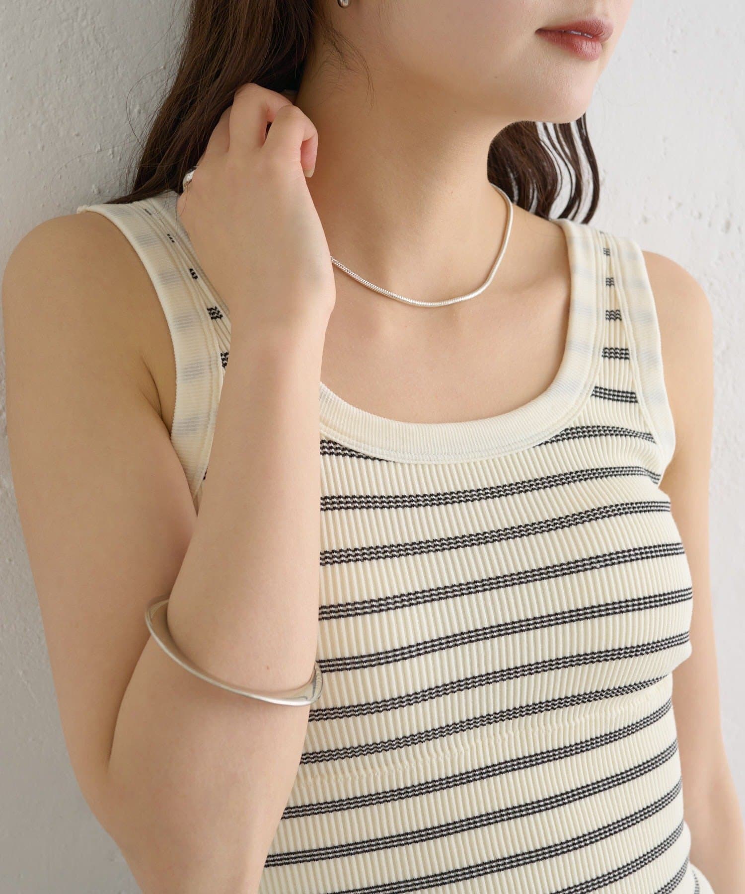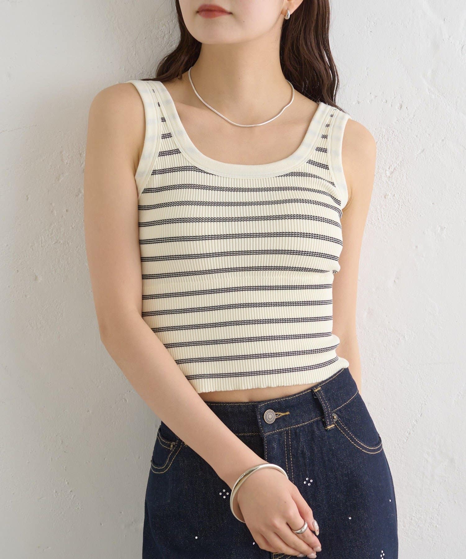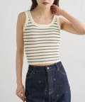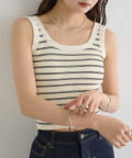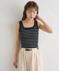 細めのボーダーですっきりとした印象を与えてくれる、パット付きタンクトップ。