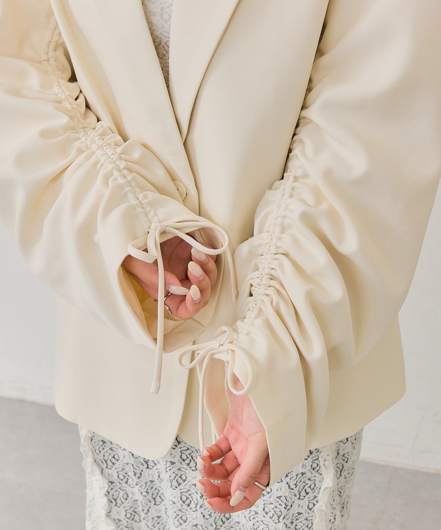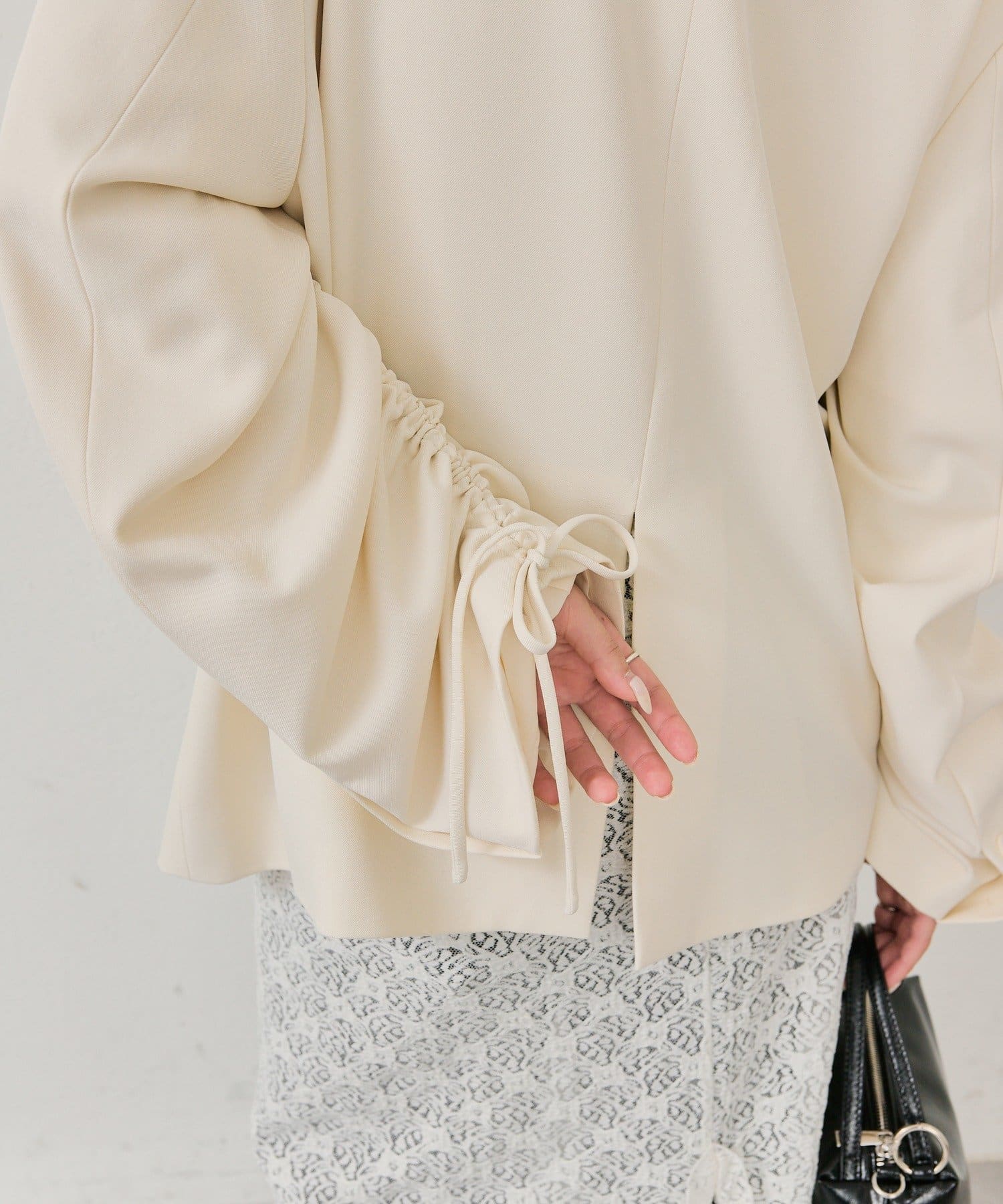 ・袖をクシュっと絞ってこなれ感と抜け感のあるスタイリングに。